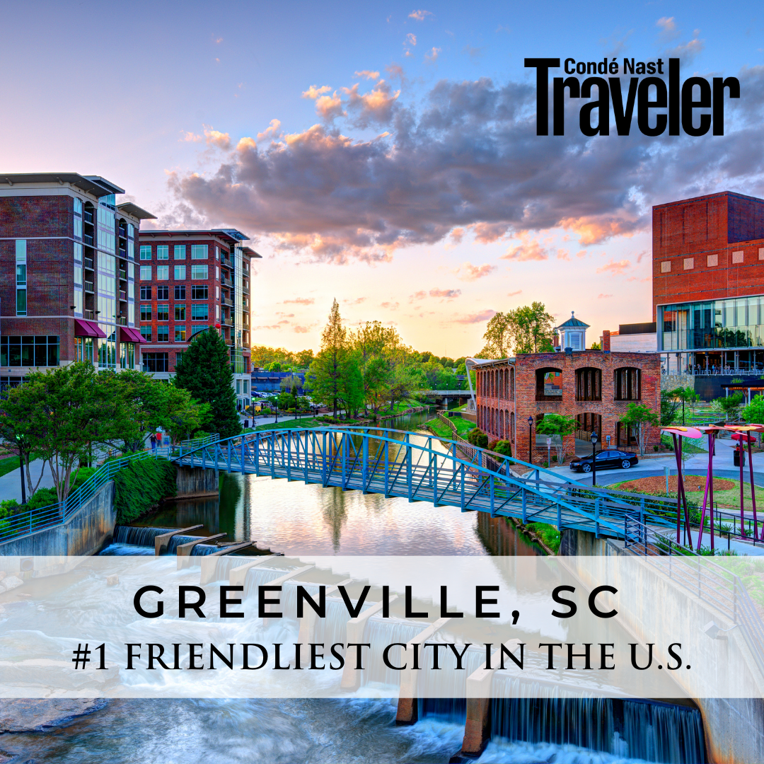 Greenville, South Carolina was named the friendliest city in the U.S. by Conde Nast Traveler for the second year in a row. Greenville is also among Conde Nast’s list of America’s Best Cities. Actually ranking among the top 5 cities listed in 2022.