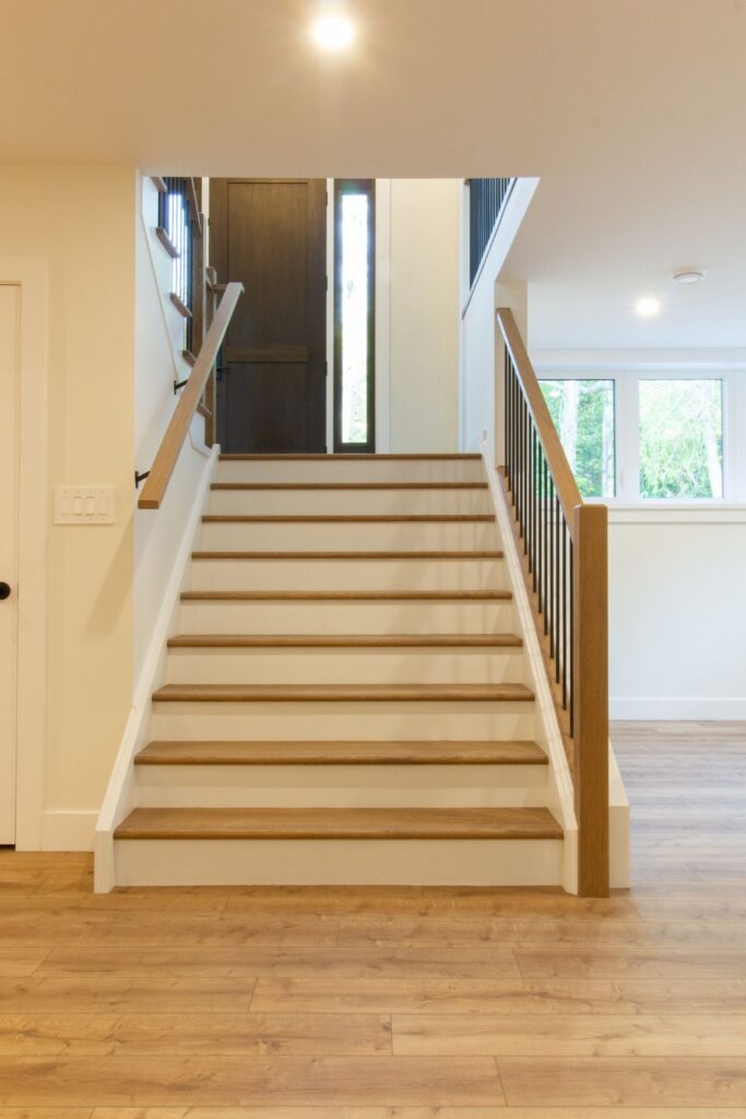 • Sculptural Staircase in a Clean-Lined Entry
