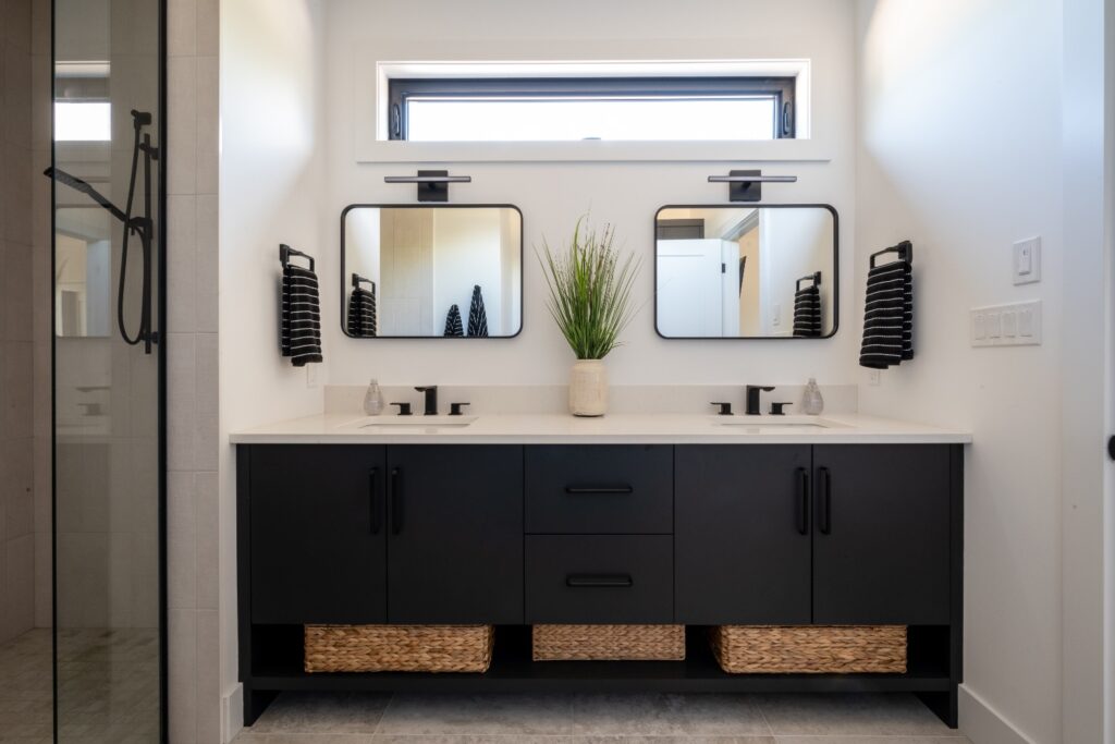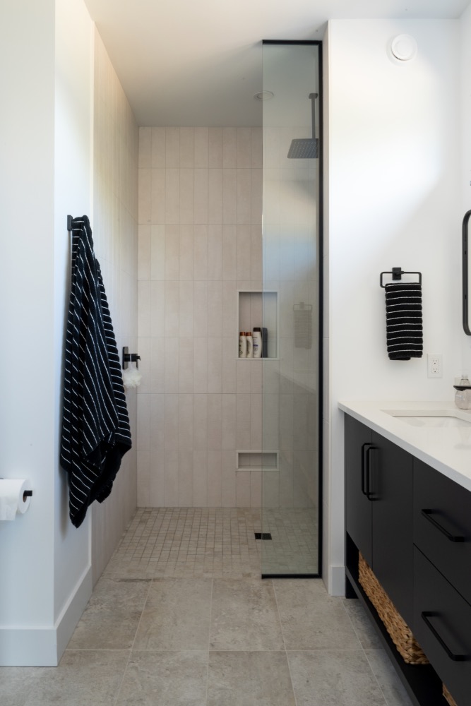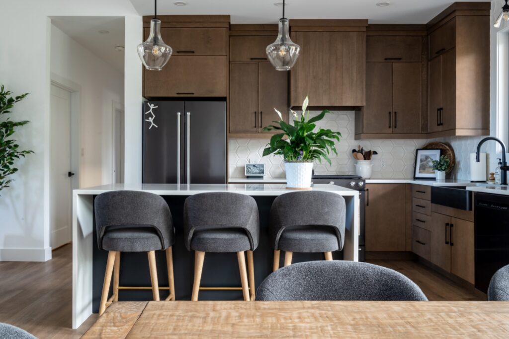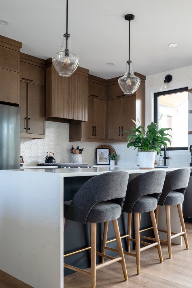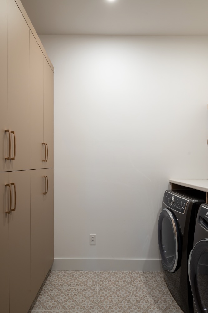 This family-forward custom home blends warmth and sophistication through a palette of white oak, creamy tones, and grounded stone textures. Trending now in design: fluted cabinetry, arched mirrors, layered lighting, and organic-inspired materials—all featured throughout the kitchen, bathrooms, and gathering spaces. With vaulted ceilings, large-format tile, and matte black fixtures, this home is an elevated take on casual modern living. A perfect example of design meeting comfort in a fresh, intentional way. contemporary family home, fluted cabinetry trend, arched mirror bathroom, white oak kitchen design, organic modern interiors, vaulted ceiling design, creamy neutral palette, textural tile inspiration, large format tile, matte black fixtures, layered lighting ideas, light-filled home, trending home design 2025, custom home Ontario, modern comfort style, kitchen with built-in pantry, earthy luxury aesthetic, interior design inspiration, Pinterest-worthy house, elegant family home.