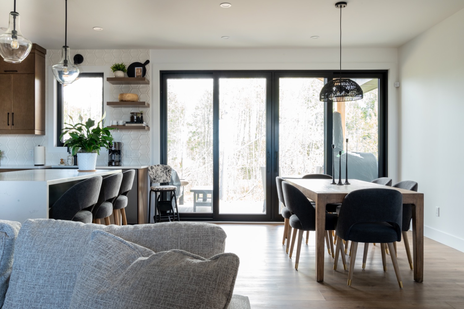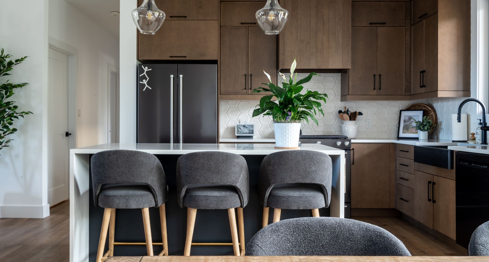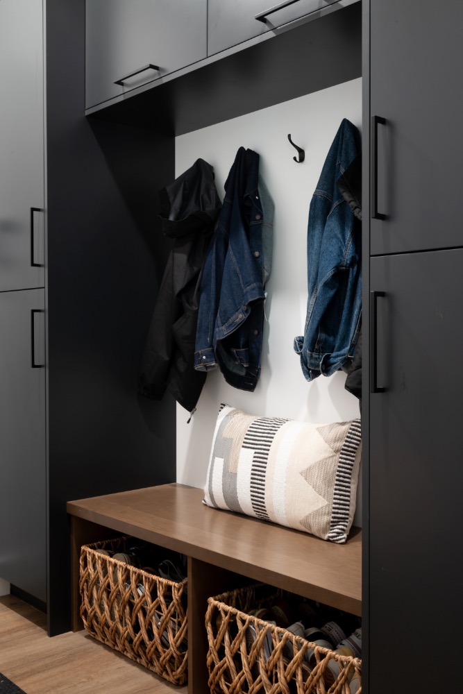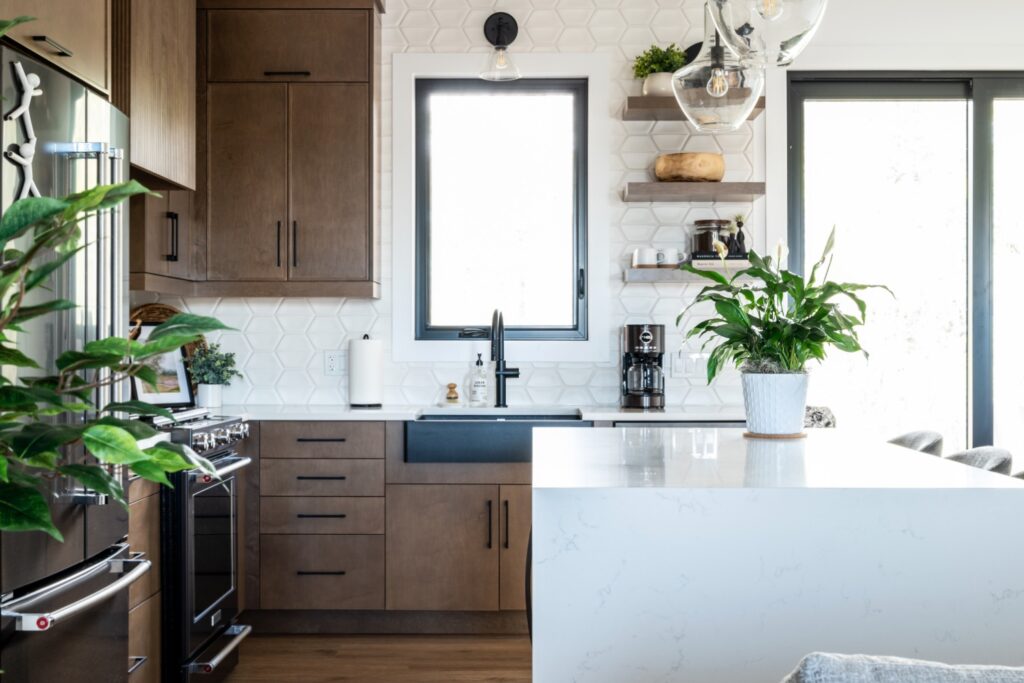 This family-forward custom home blends warmth and sophistication through a palette of white oak, creamy tones, and grounded stone textures. Trending now in design: fluted cabinetry, arched mirrors, layered lighting, and organic-inspired materials—all featured throughout the kitchen, bathrooms, and gathering spaces. With vaulted ceilings, large-format tile, and matte black fixtures, this home is an elevated take on casual modern living. A perfect example of design meeting comfort in a fresh, intentional way. contemporary family home, fluted cabinetry trend, arched mirror bathroom, white oak kitchen design, organic modern interiors, vaulted ceiling design, creamy neutral palette, textural tile inspiration, large format tile, matte black fixtures, layered lighting ideas, light-filled home, trending home design 2025, custom home Ontario, modern comfort style, kitchen with built-in pantry, earthy luxury aesthetic, interior design inspiration, Pinterest-worthy house, elegant family home.