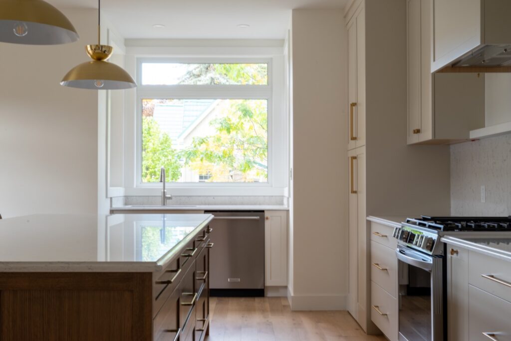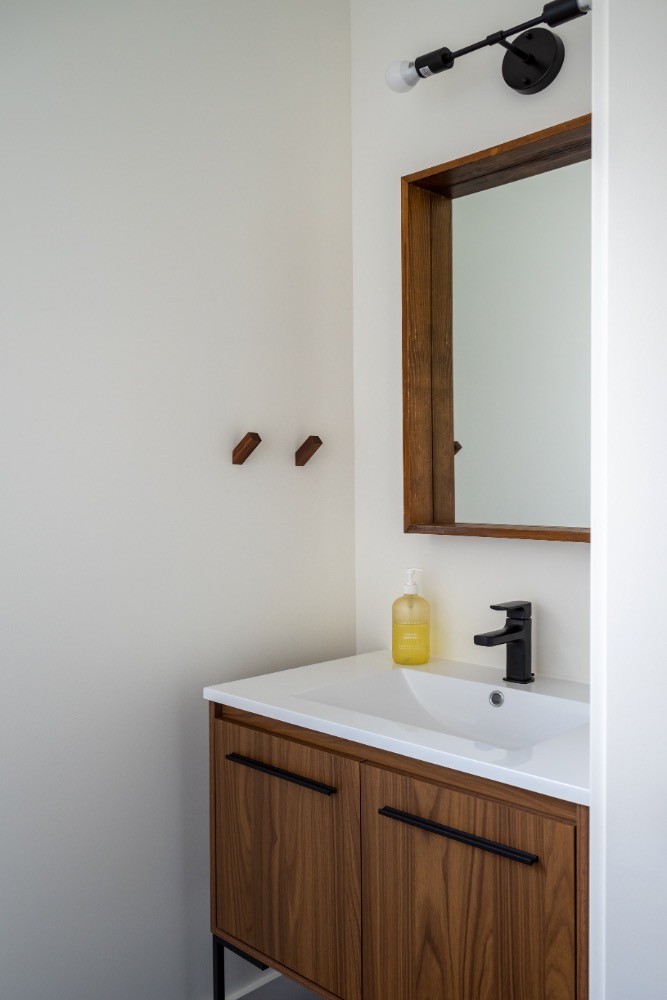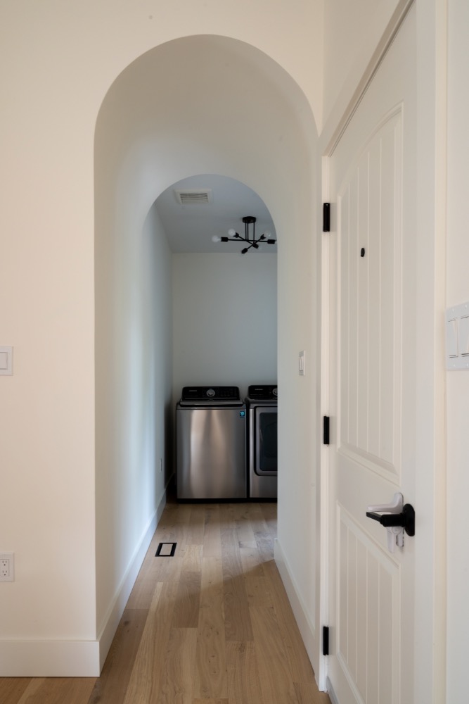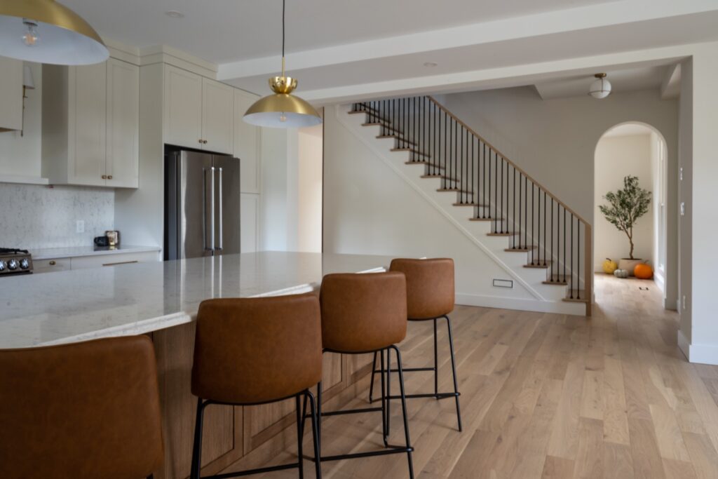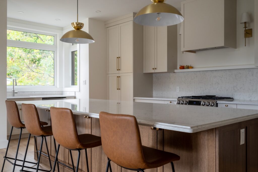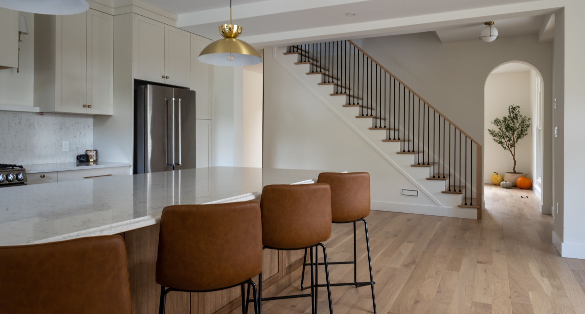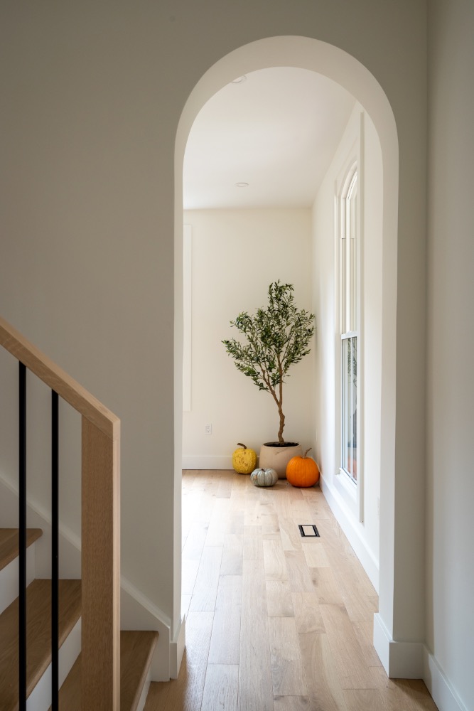 This designer cottage showcases thoughtful custom elements like a potted olive tree, curved ceiling lines, and earthy, textured interiors. A modern retreat blending natural finishes with elegant architectural curves—perfect inspiration for anyone building or refreshing their dream home. custom cottage, natural wood finishes, transitional design, neutral home palette, modern rustic style, Ontario cottage, cozy interior ideas, custom home builder, elevated simplicity, designer cottage style, home build inspiration, warm modern interiors, luxury cabin aesthetic.
