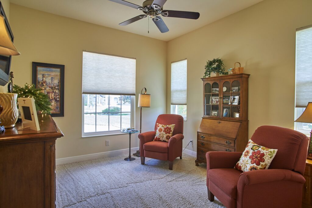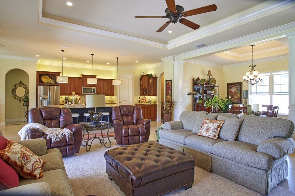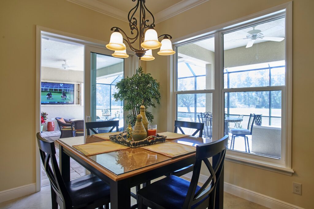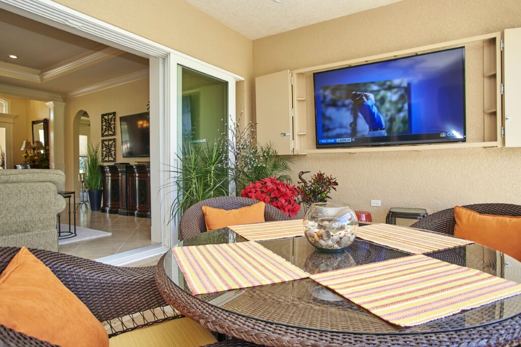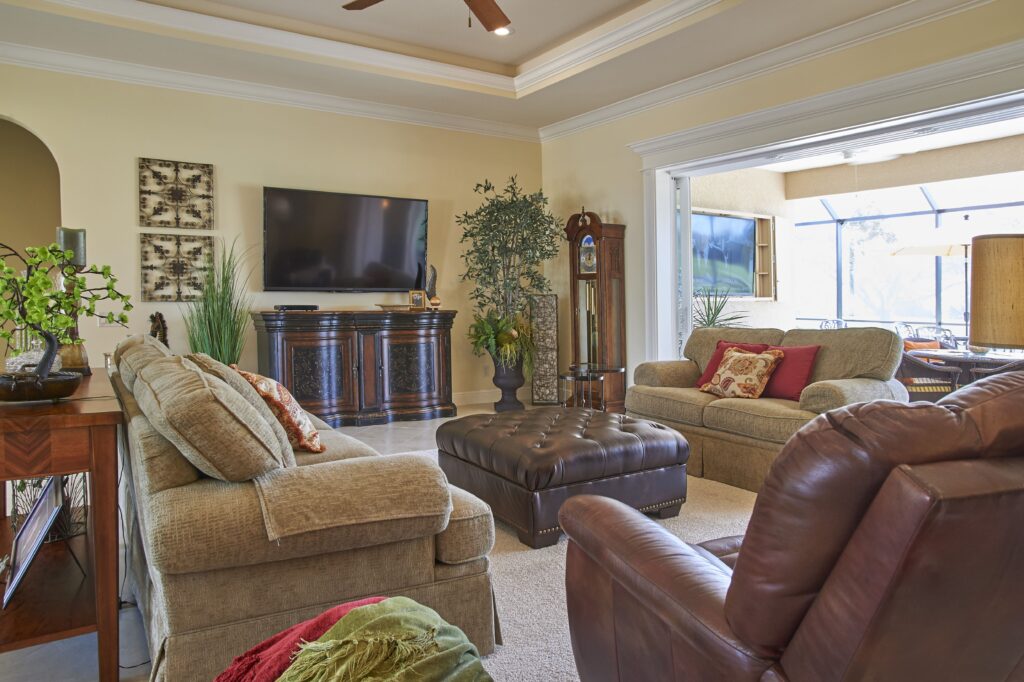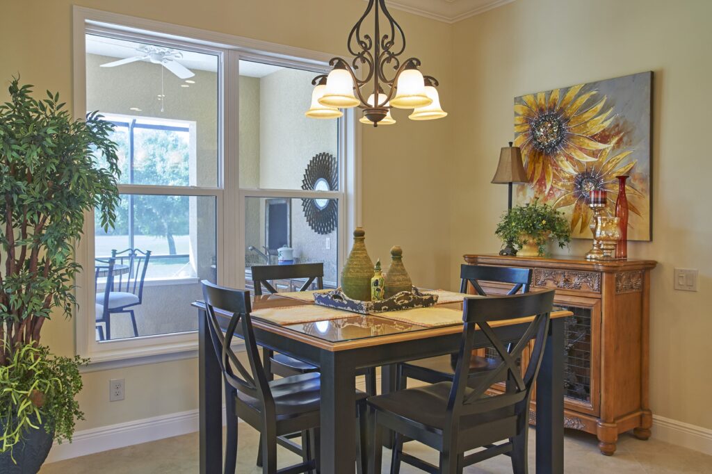 The vision behind Fairway View centered on capturing the heart of Florida golf-course living—sunshine, scenery, and community. The home was designed to maximize outdoor connection, with pocketing sliding glass doors that fully retract to reveal expansive views of Fairway 9. This openness encourages fresh air, natural light, and effortless movement between indoor and outdoor spaces, creating a setting ideal for gatherings, relaxation, and taking in the rhythm of daily life on the course.