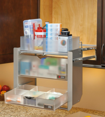 Example of pulldown storage for upper cabinets- Rev-a-Shelf