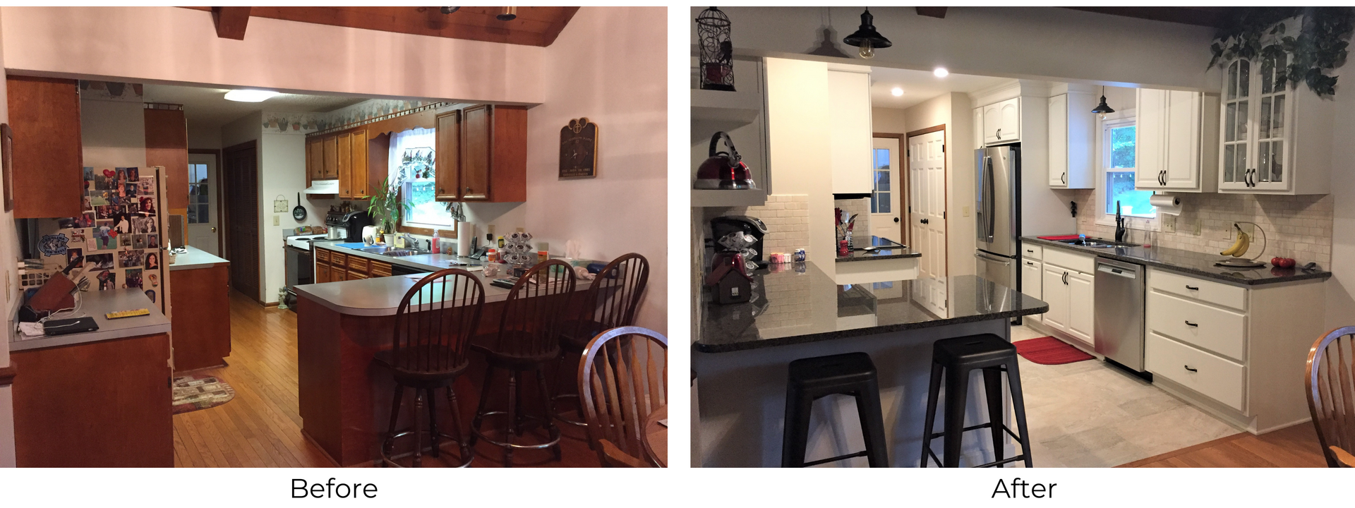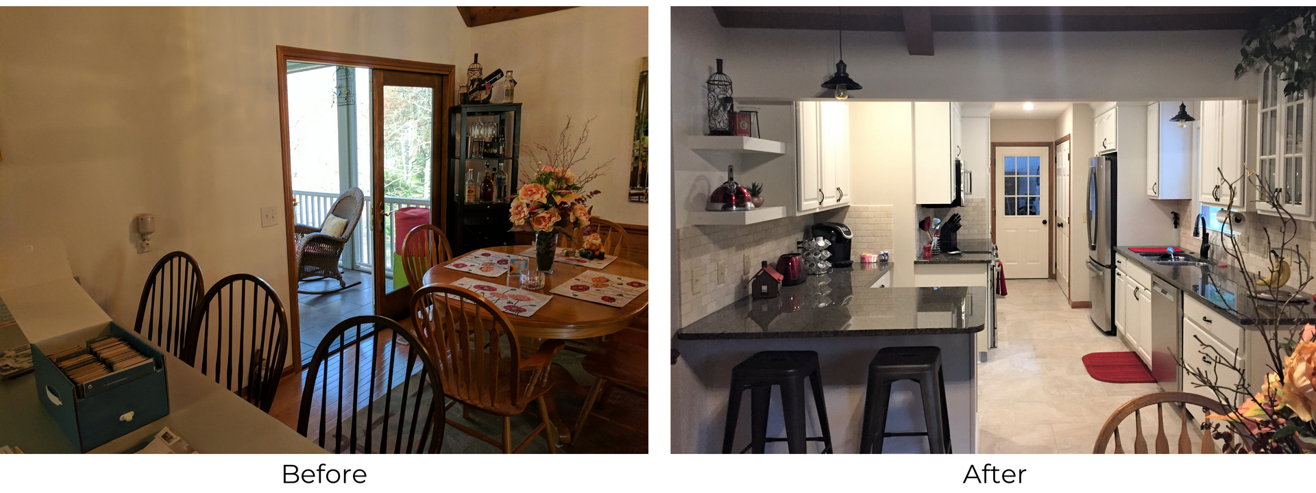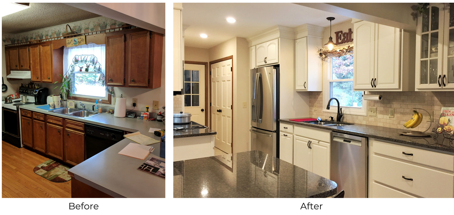 A few years ago, the homeowners decided to build a new porch and deck on the back of their house in Hickory, NC. The couple wanted to be able to relax and enjoy their beautiful backyard. After building the porch, they quickly discovered an obstacle. When entering from the back porch the breakfast bar created a difficult path to the inside of the kitchen and garage door.