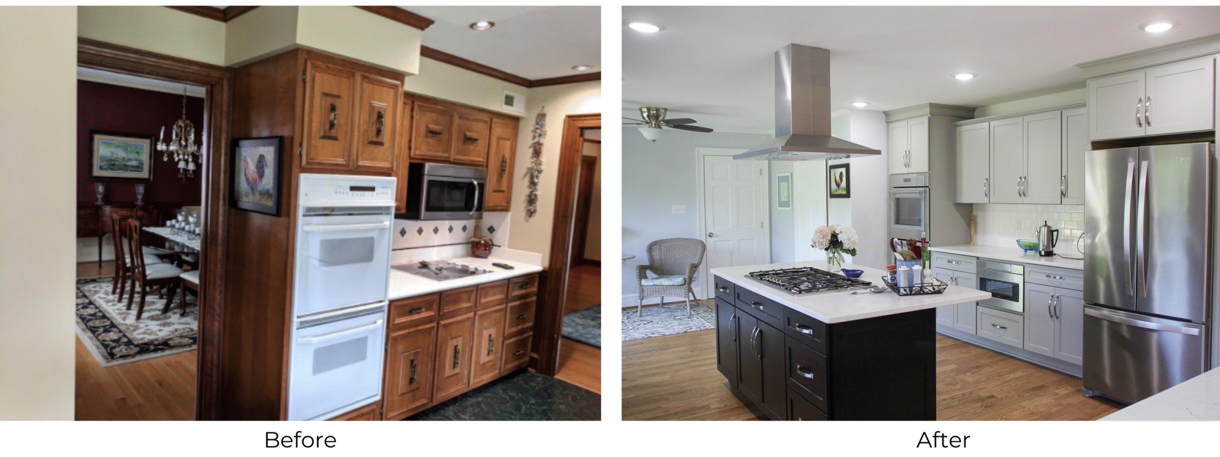 A married couple searching for a home to enjoy their retirement, found their forever home in Lenoir, NC back in 2017. After living in their home for almost a year, they decided to look into remodeling sections of their home to make them more functional for their lifestyle. As avid chefs, a space to get creative and spend time refining their cooking skills was essential. The home originally built back in the 1970’s was starting to show signs of age since no major renovations had ever been completed. The entire renovation consisted of opening up the kitchen, the living room, and the sunroom.