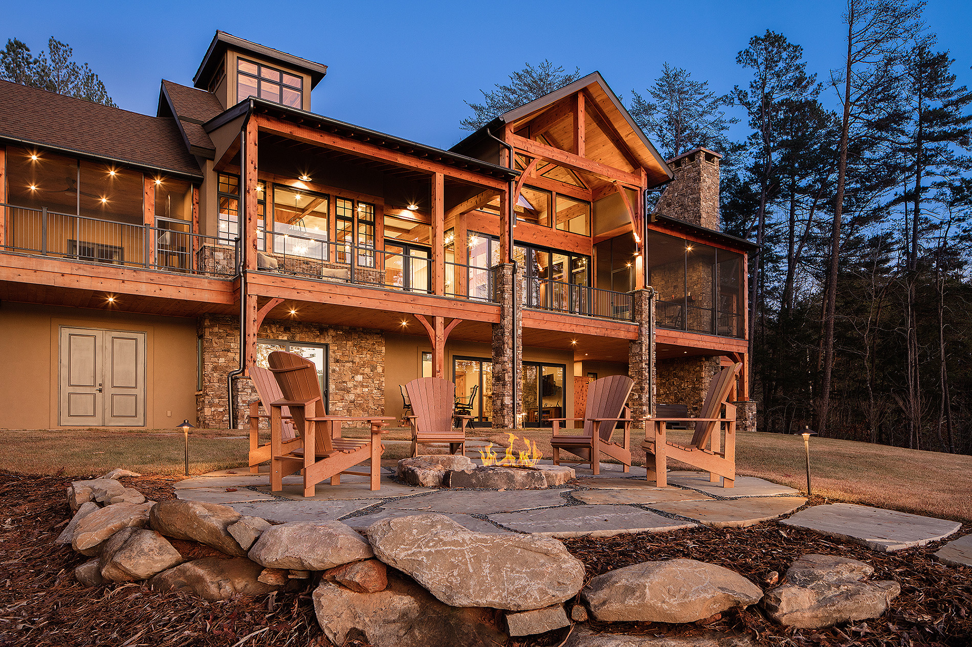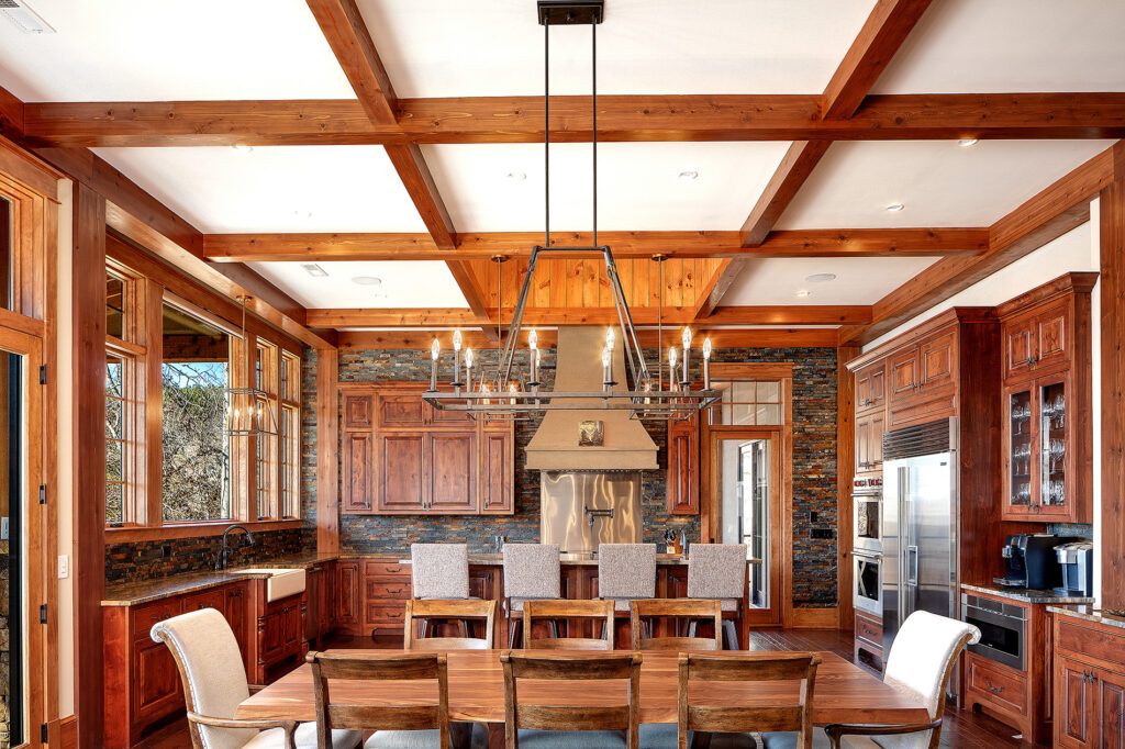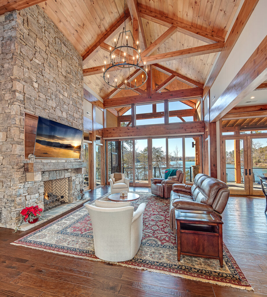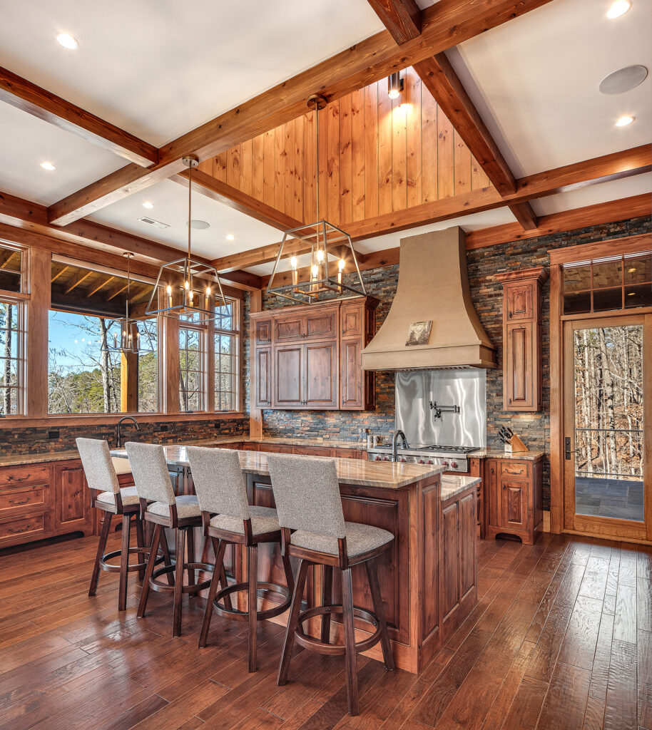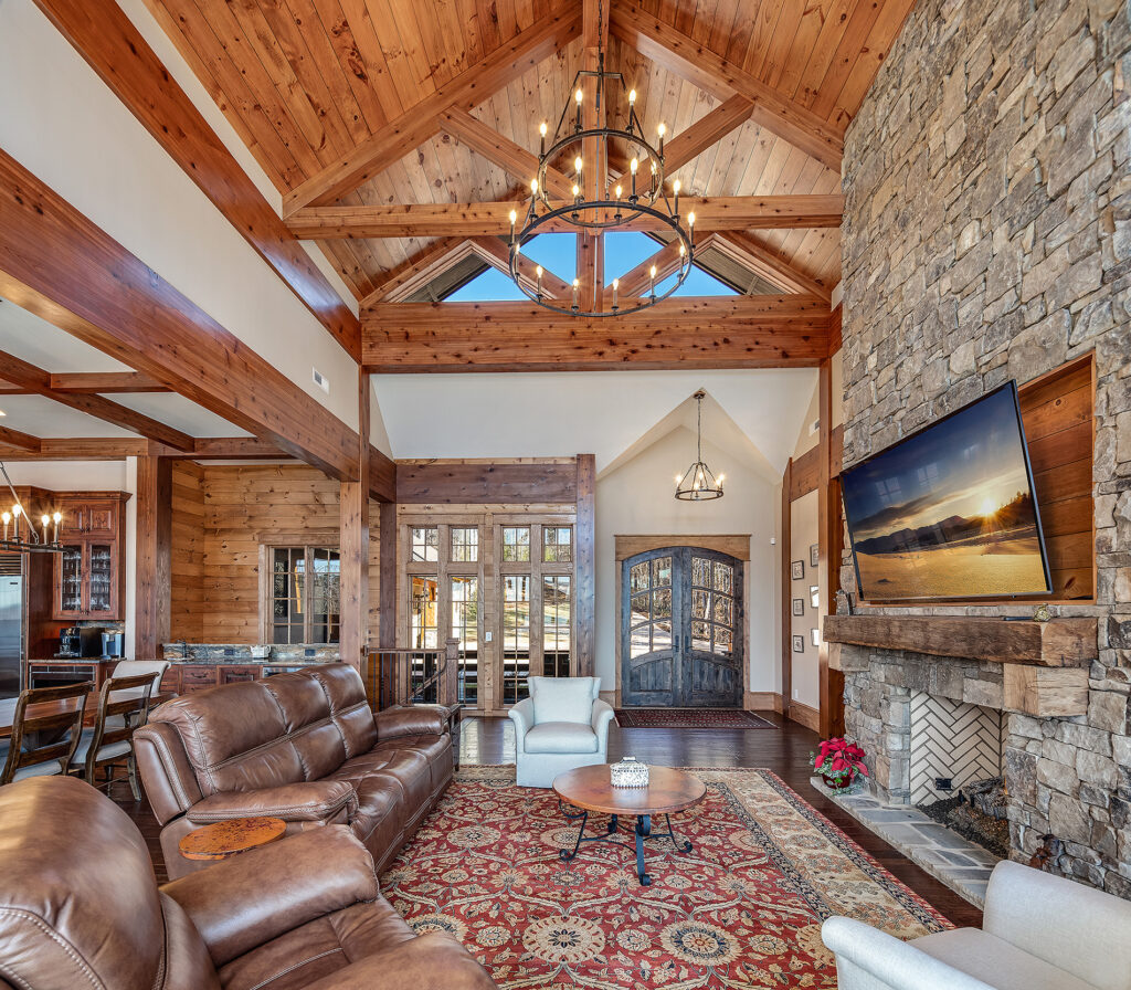 Modern functionality meets rustic charm in this expansive custom home. Featuring a spacious open-concept great room with dark hardwood floors, stone fireplace, and wood finishes throughout.