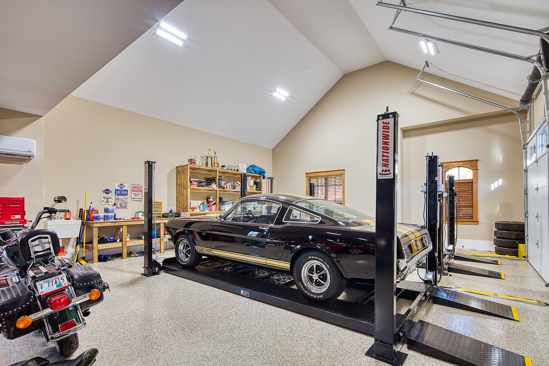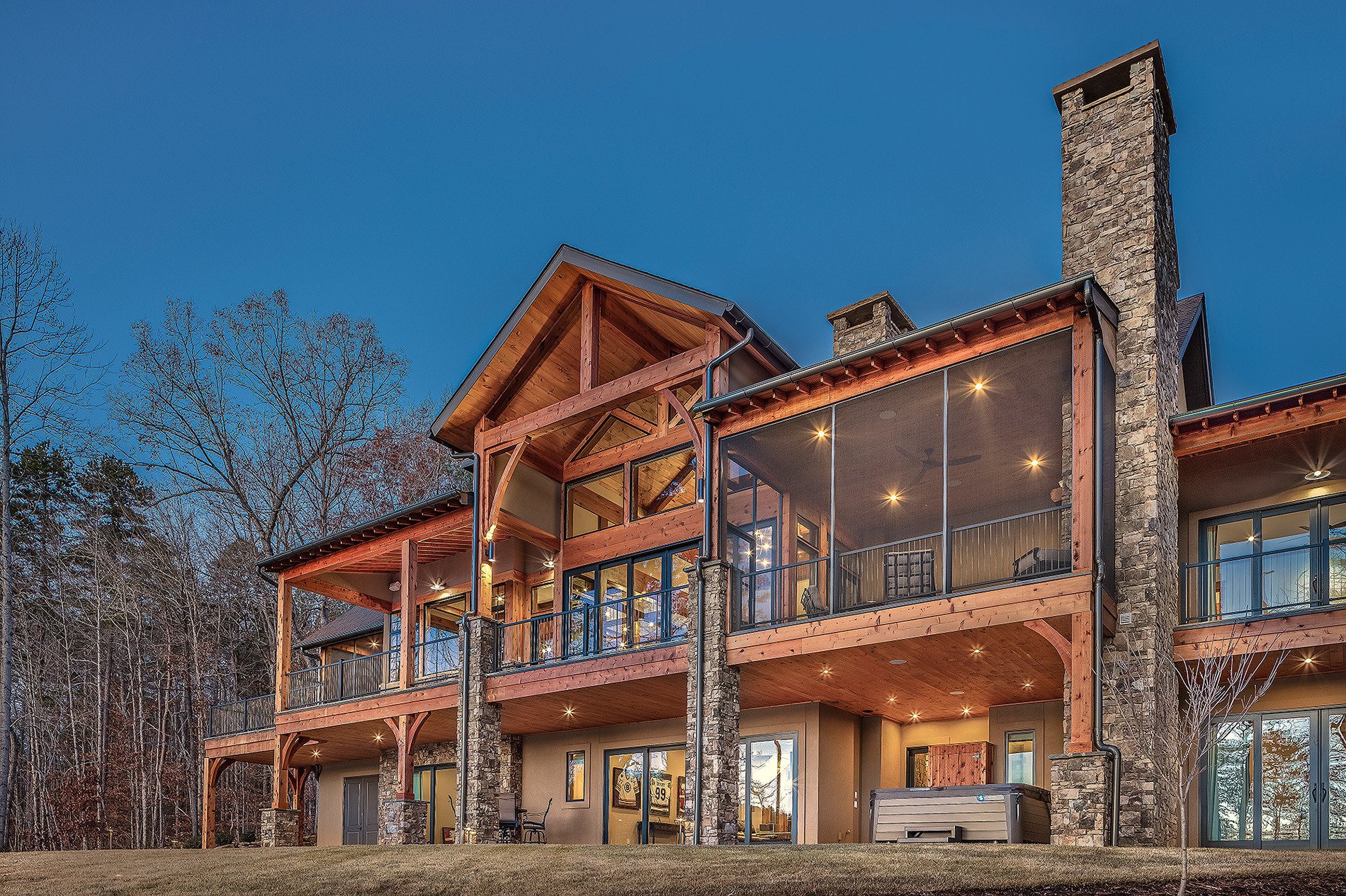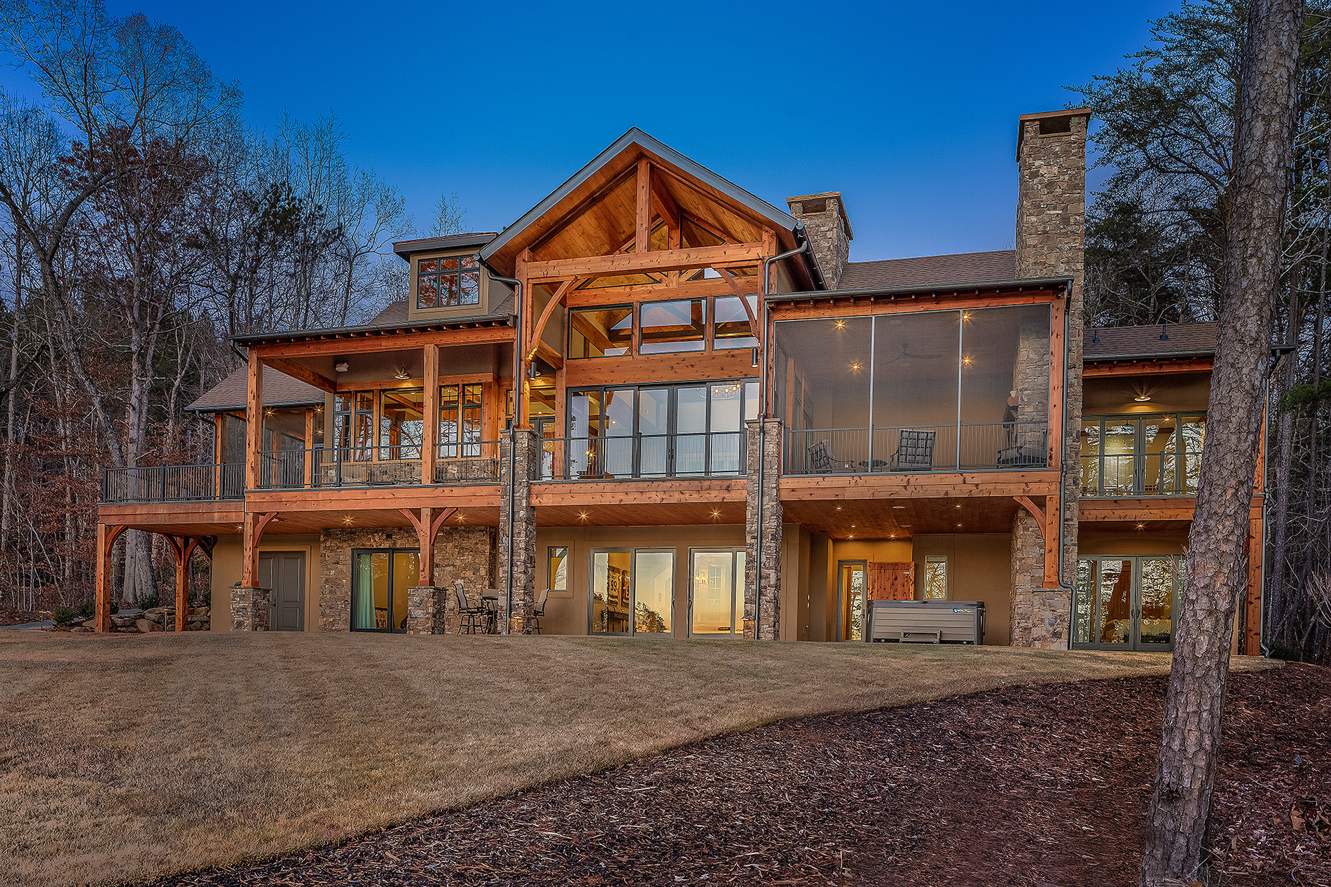 Modern functionality meets rustic charm in this expansive custom home. Featuring a spacious open-concept great room with dark hardwood floors, stone fireplace, and wood finishes throughout.
