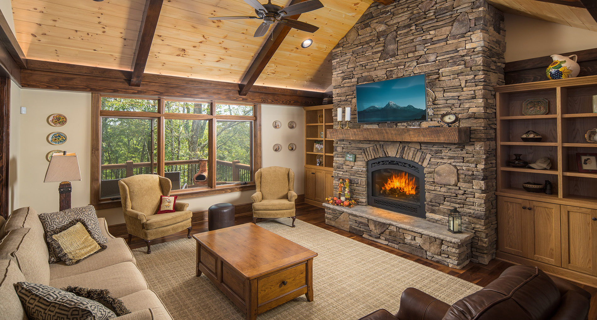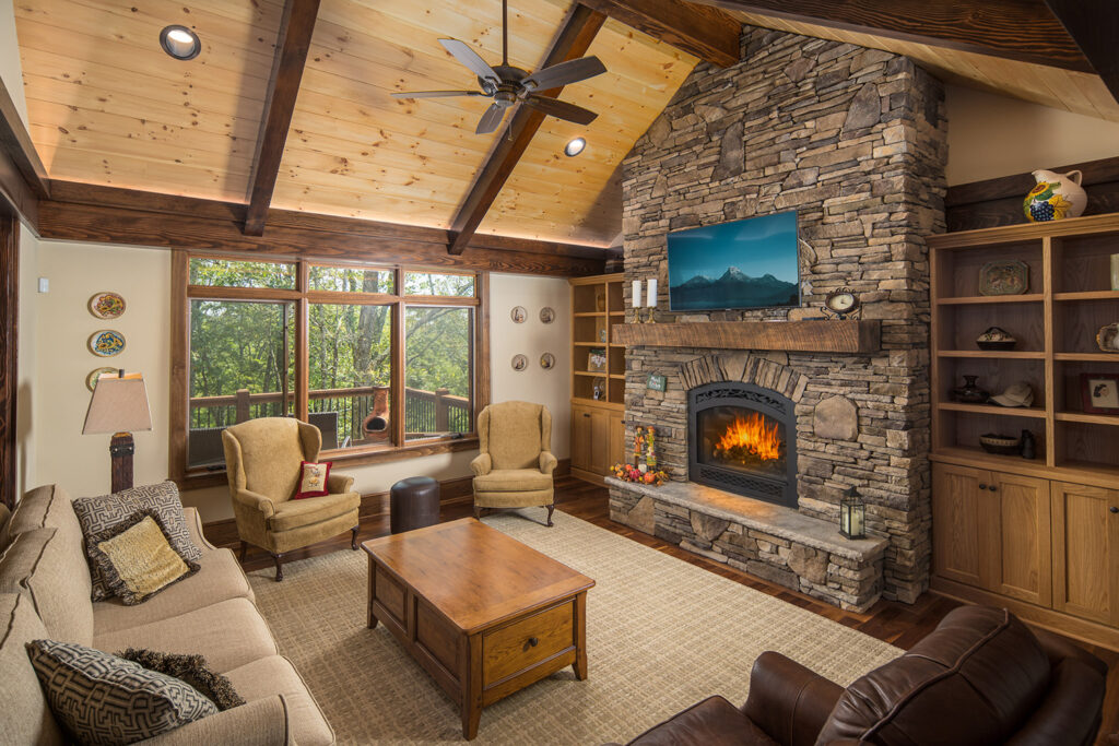 This project was constructed from the ground up with a stick frame with timber accents. Located in Blowing Rock, this 3,500 square foot custom home includes plenty of outdoor living space with a 924 sqft deck and a 520 sqft stone entry porch. The interior features a vaulted wood ceiling with exposed wood beams, hardwood floors, and a stone fireplace.
