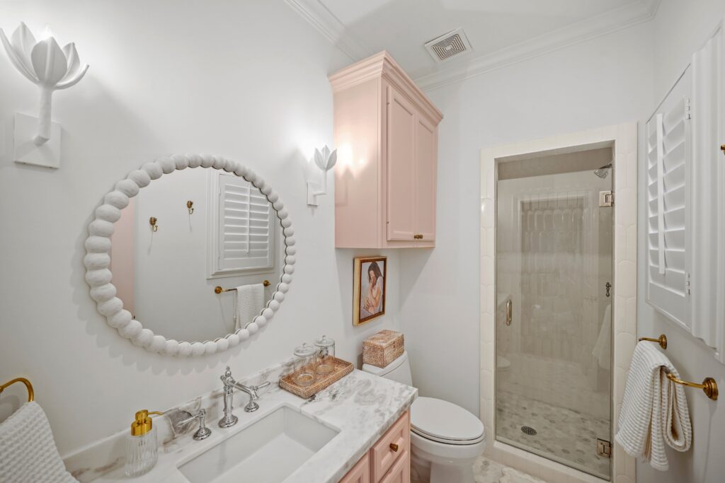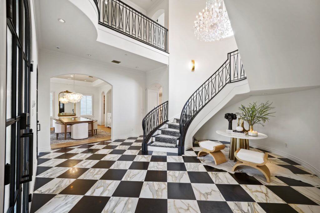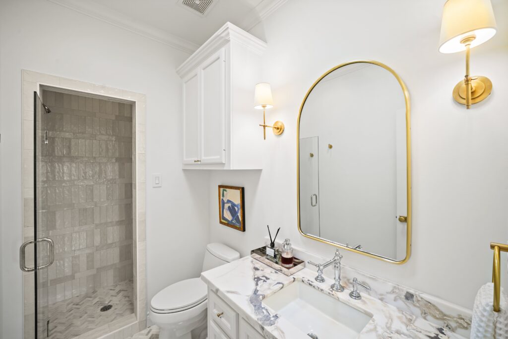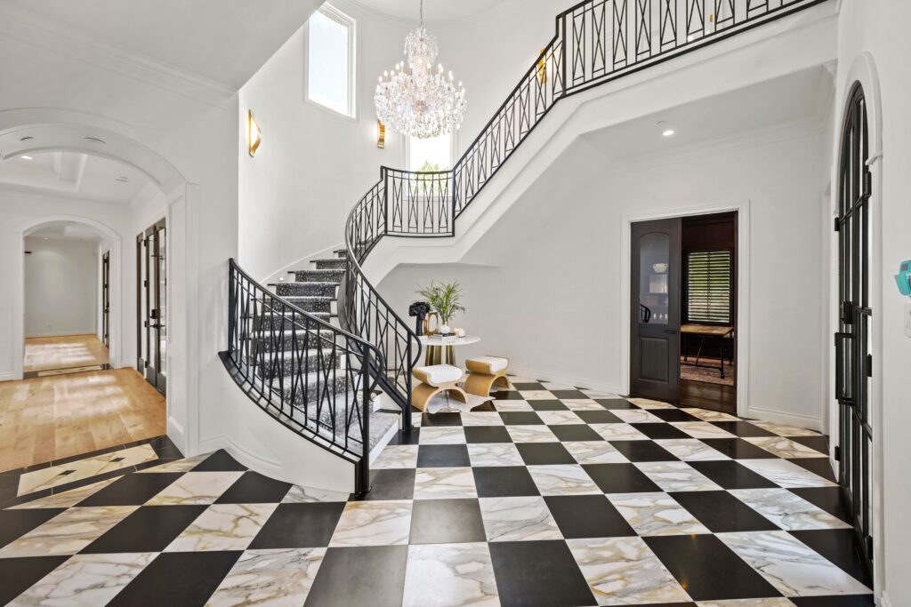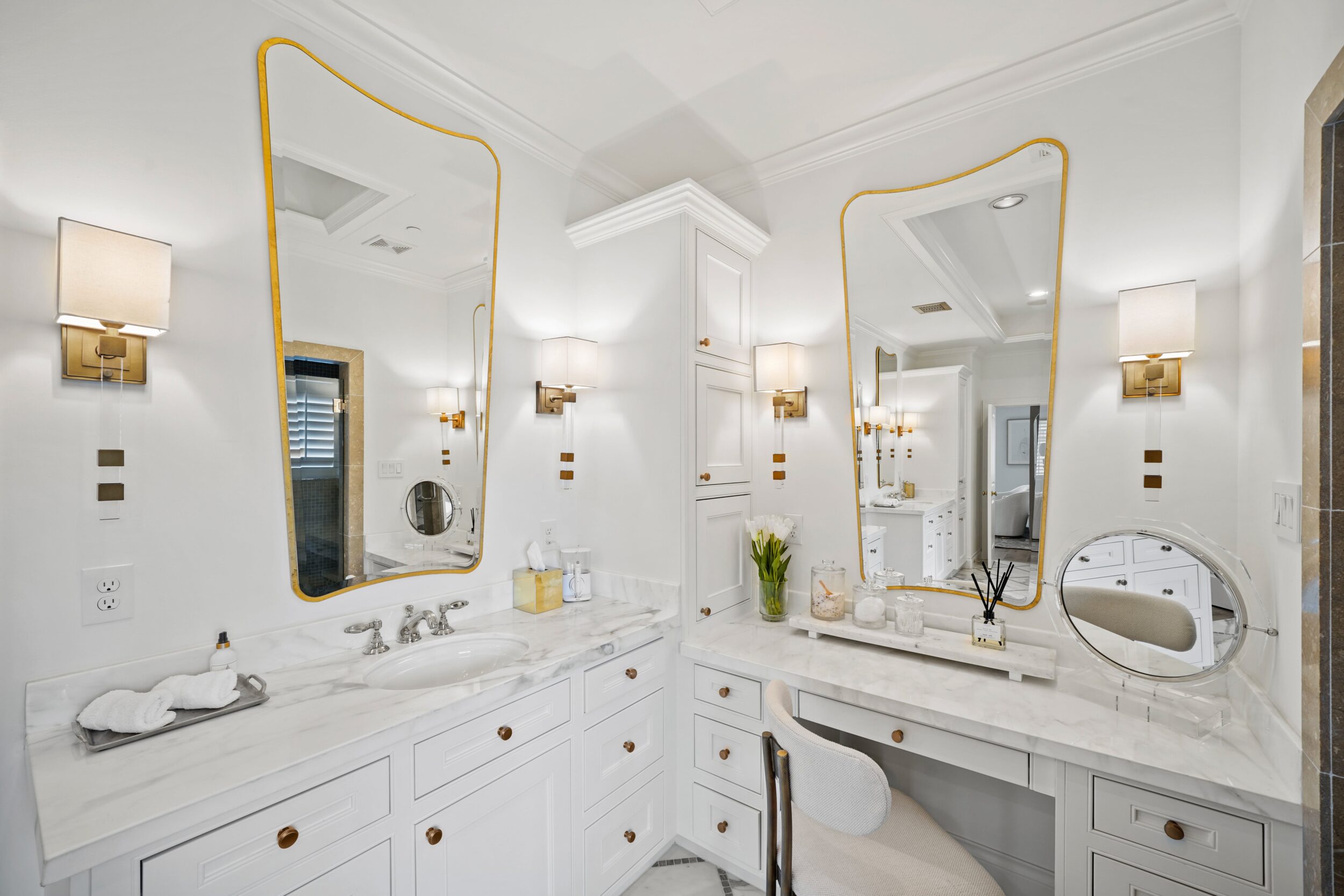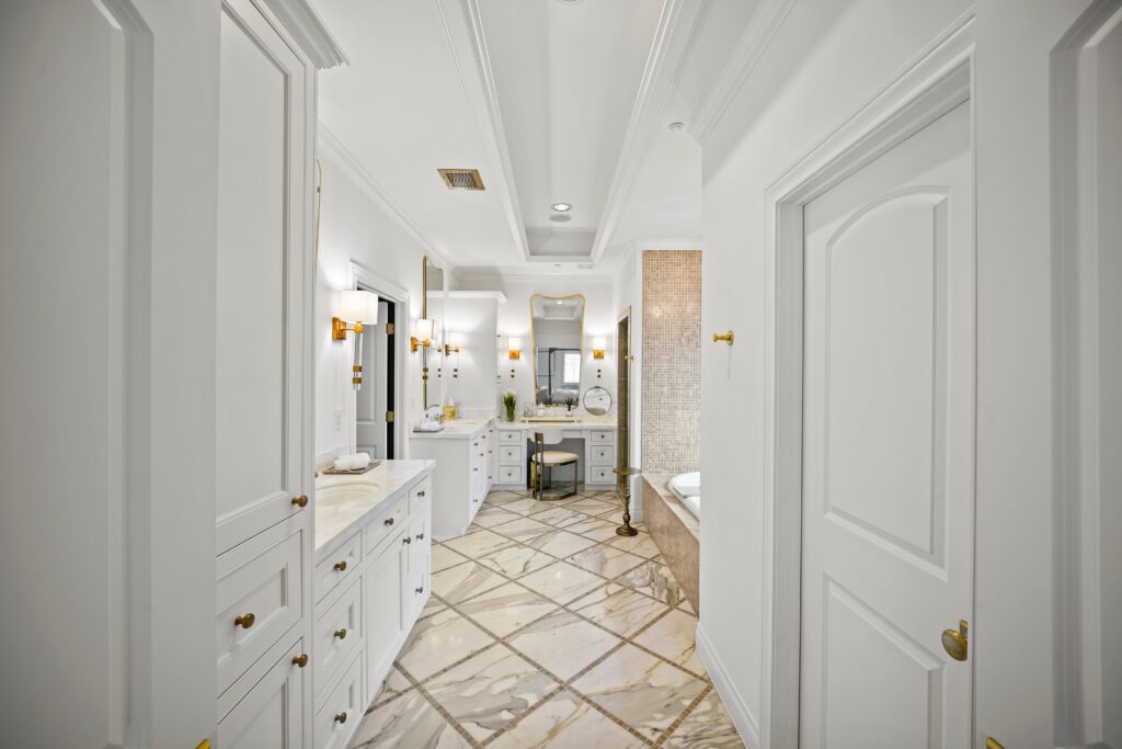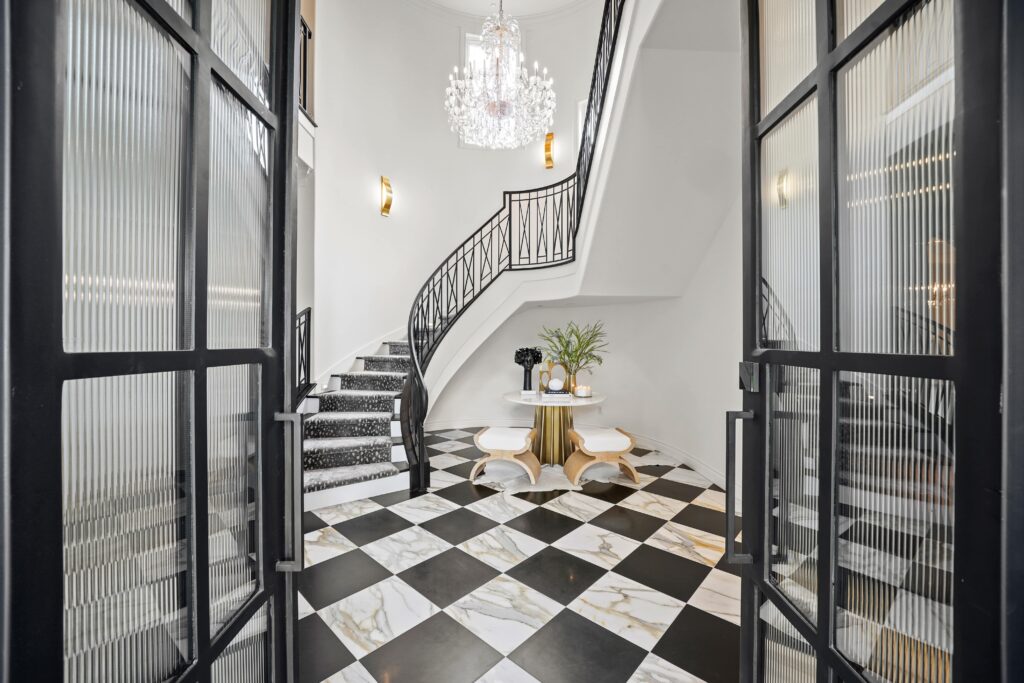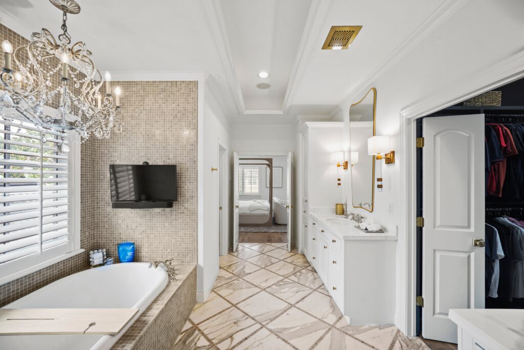 Classic traditional design with a touch of glam, perfectly suited for this château-inspired home.