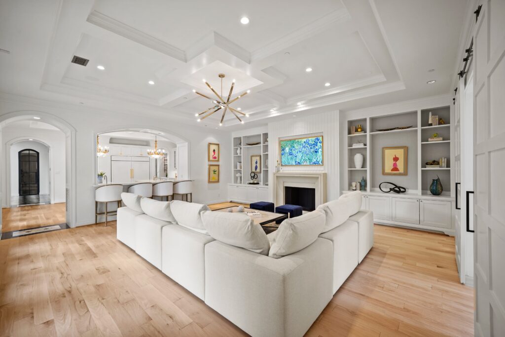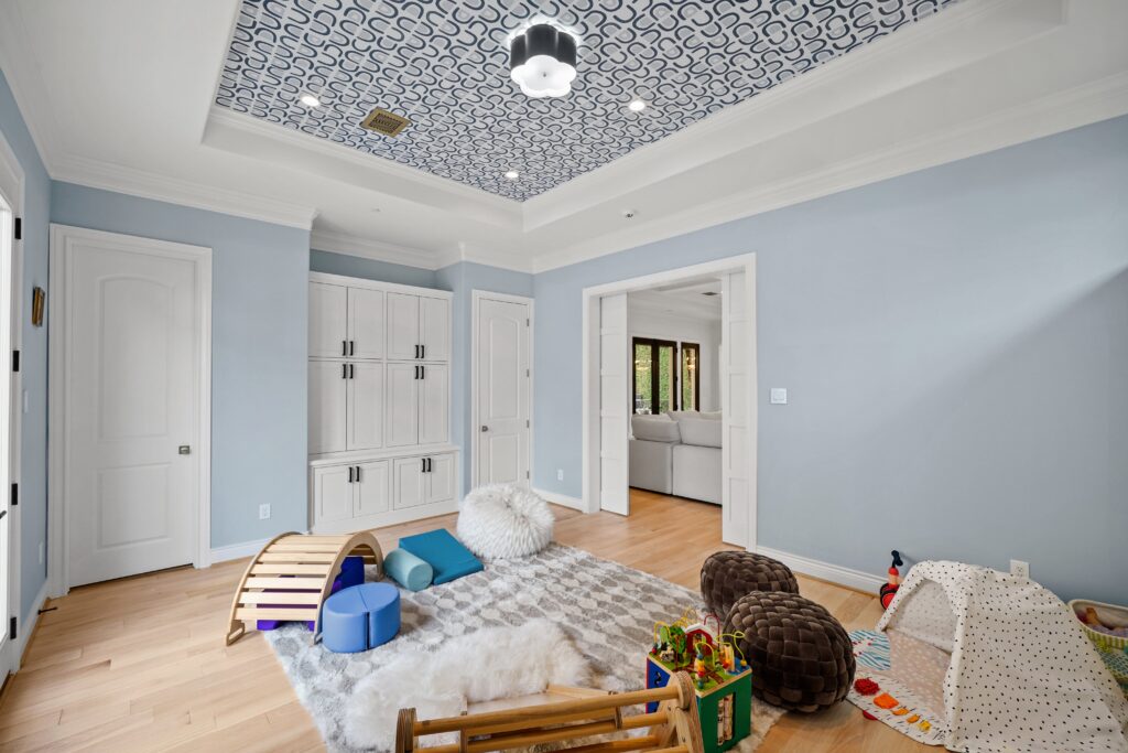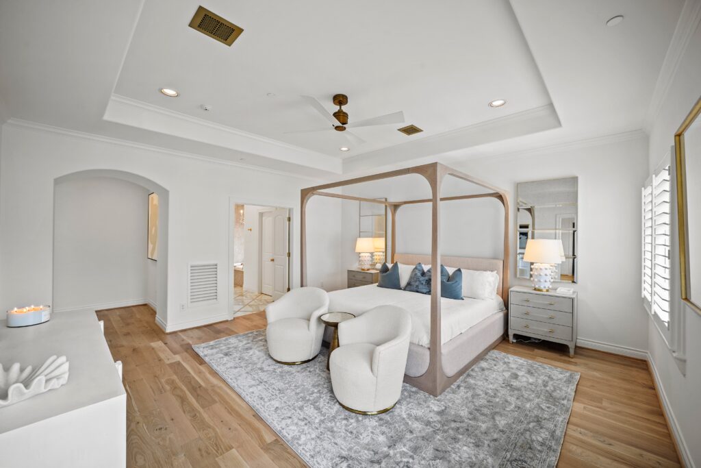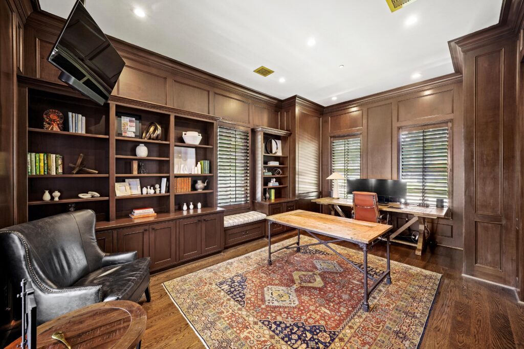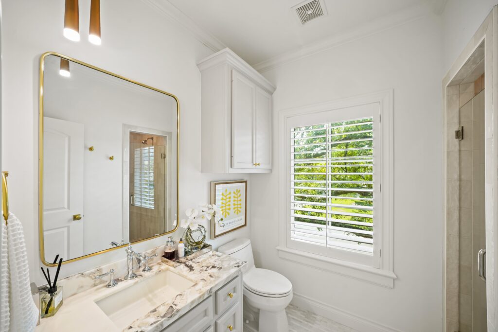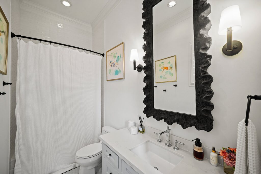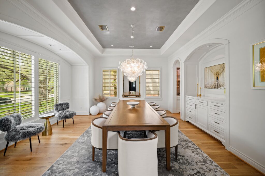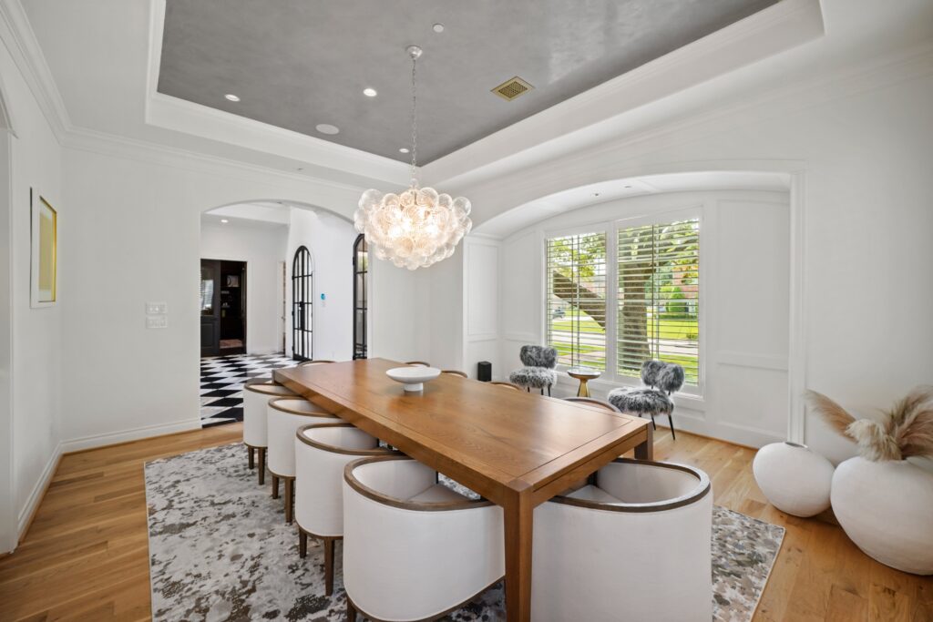 Classic traditional design with a touch of glam, perfectly suited for this château-inspired home.