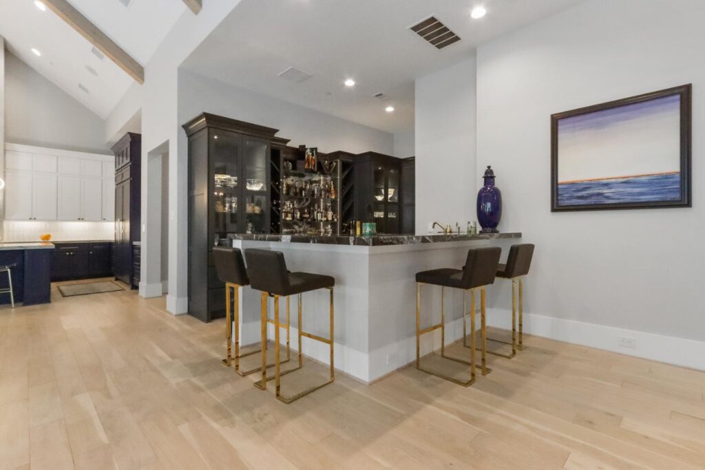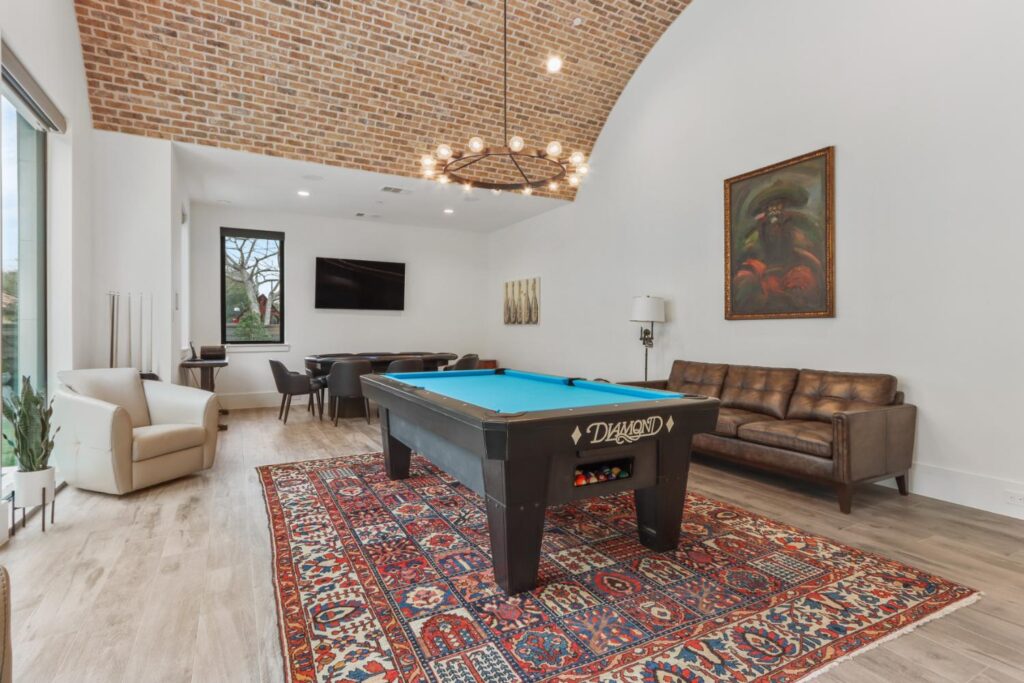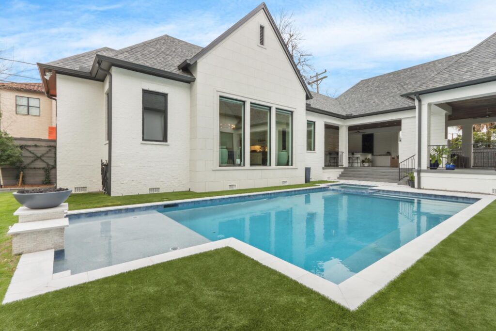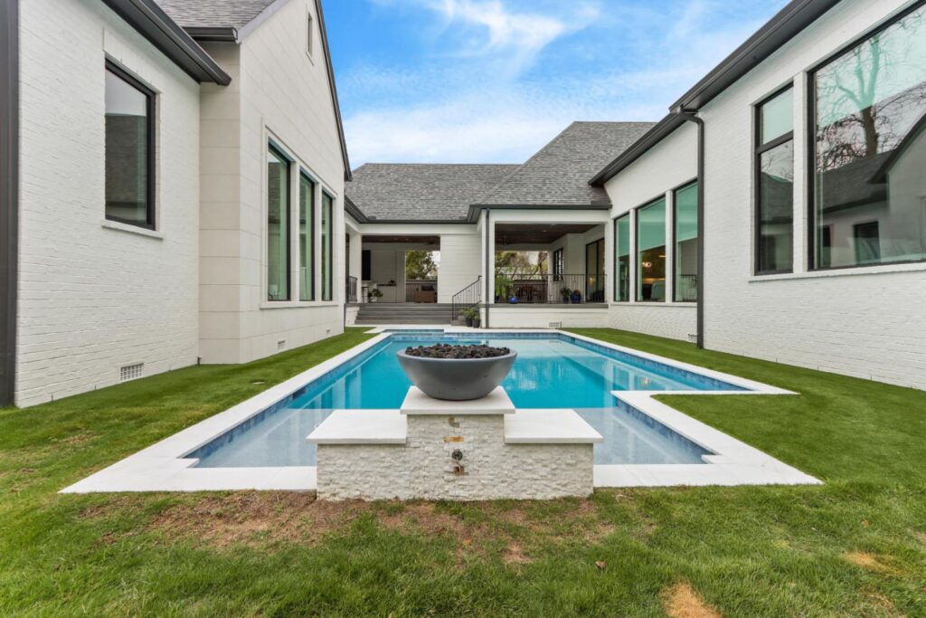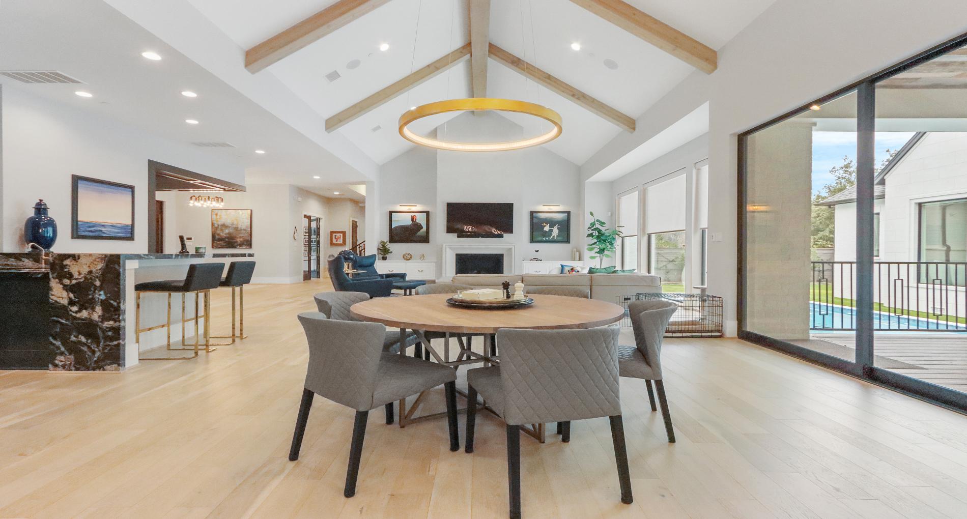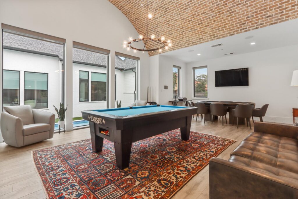 As you enter this five-bedroom estate home, you are drawn into the open plan concept, which includes the foyer, dining, great room, breakfast and kitchen. Yet more impressive is the expanse of glass with a folding glass door system opening this living space onto an impressive veranda and summer kitchen that looks five steps down to a central pool. Attached to the veranda directly across from the house is a pool house that includes a billiards/poker lounge, also overlooking the central pool area. In the case of inclement weather, you can find a game room.