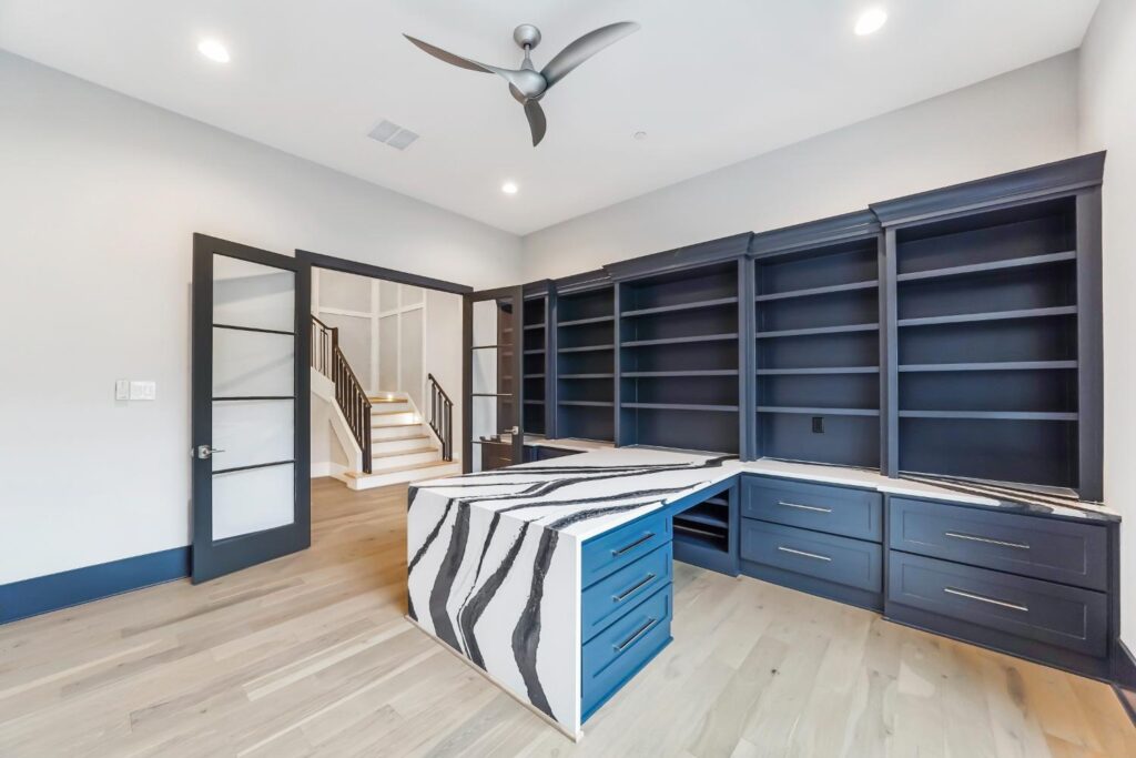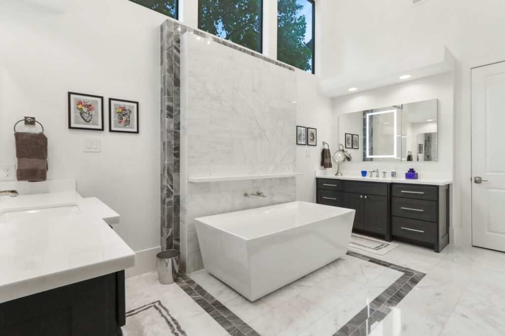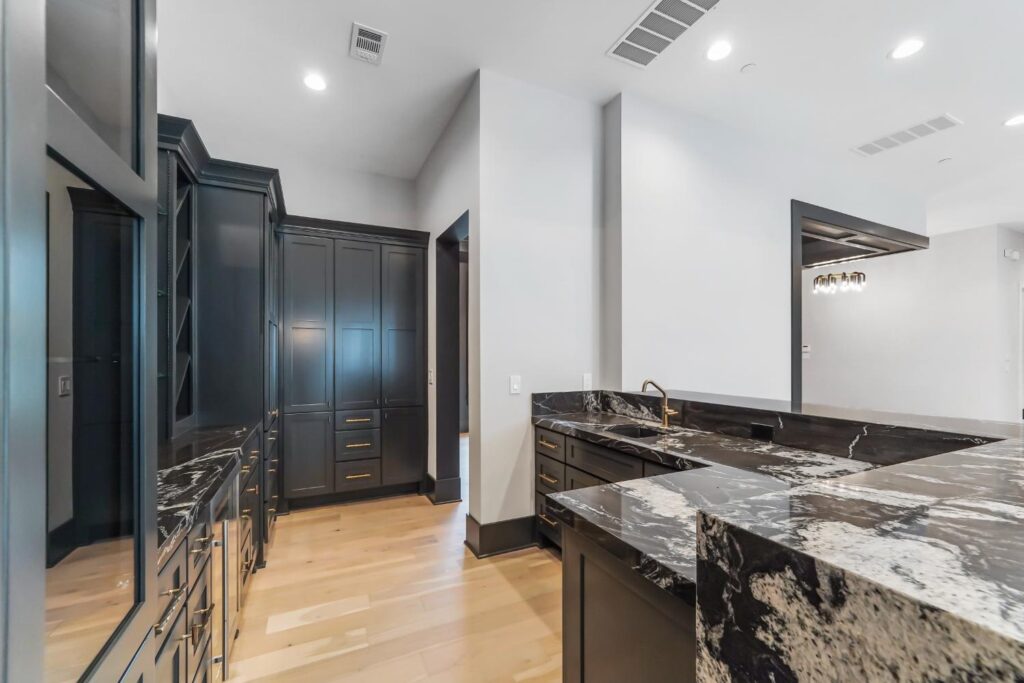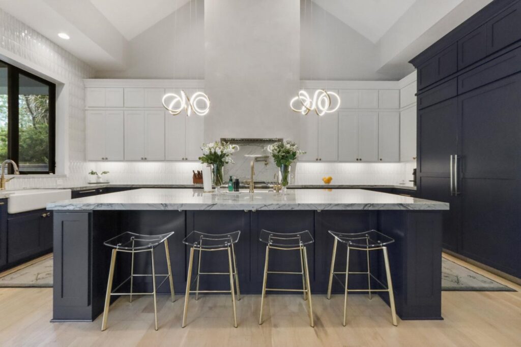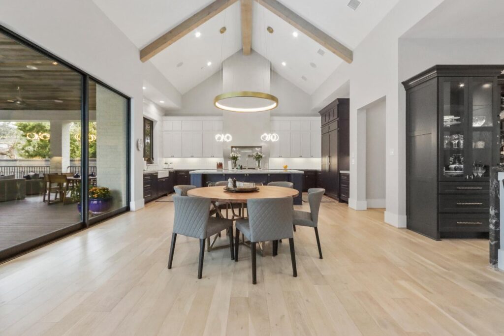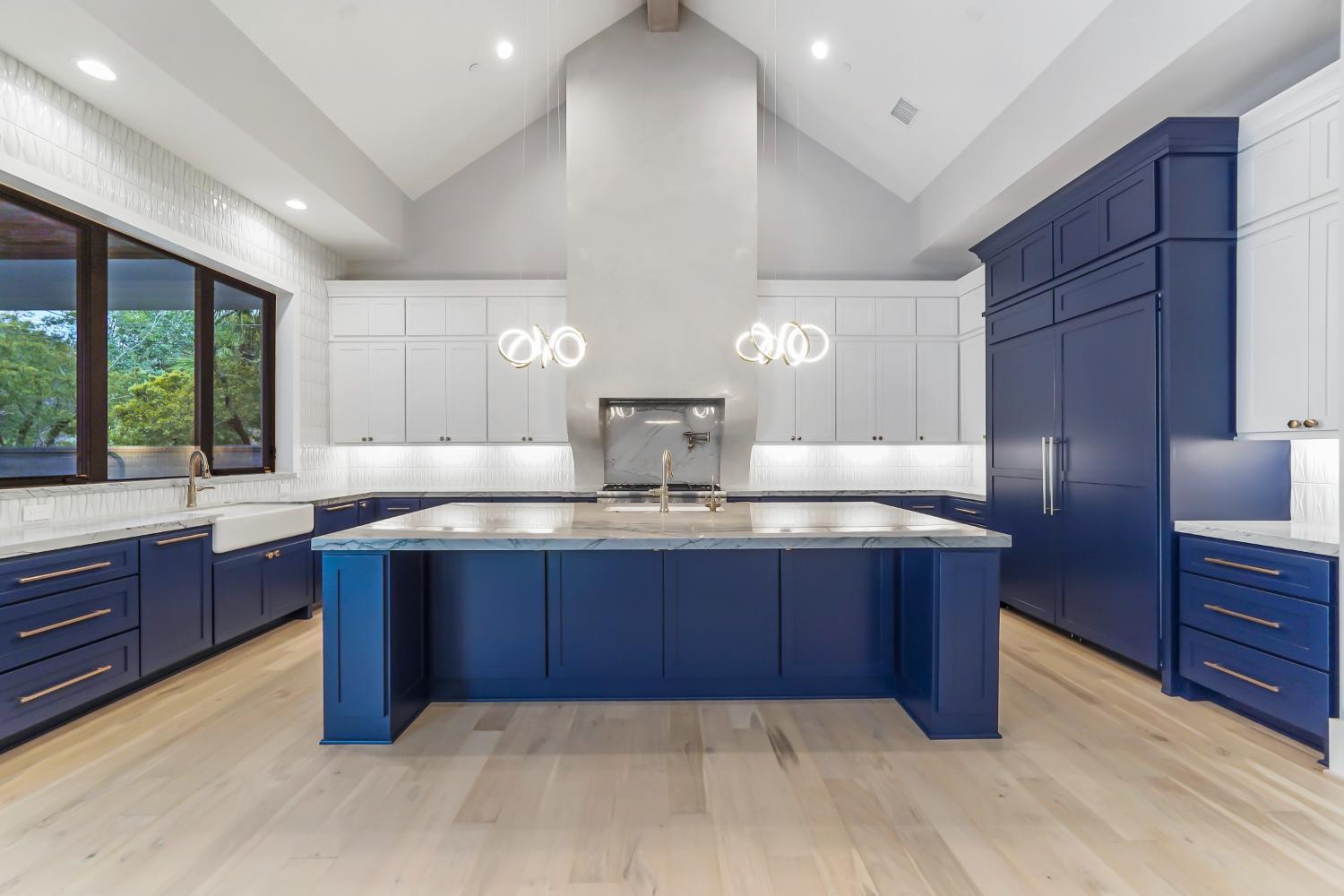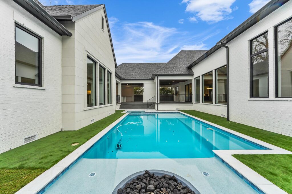 As you enter this five-bedroom estate home, you are drawn into the open plan concept, which includes the foyer, dining, great room, breakfast and kitchen. Yet more impressive is the expanse of glass with a folding glass door system opening this living space onto an impressive veranda and summer kitchen that looks five steps down to a central pool. Attached to the veranda directly across from the house is a pool house that includes a billiards/poker lounge, also overlooking the central pool area. In the case of inclement weather, you can find a game room.