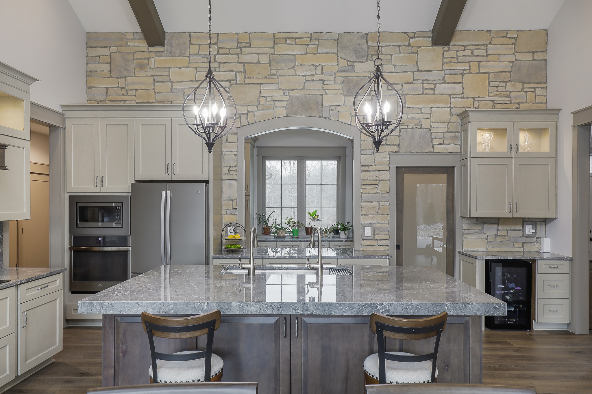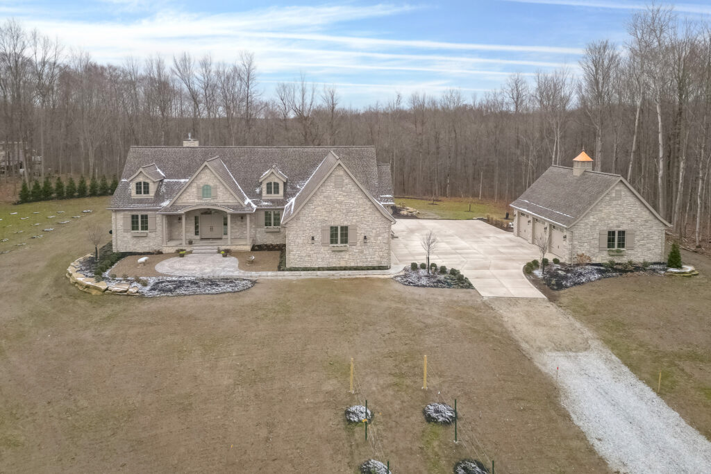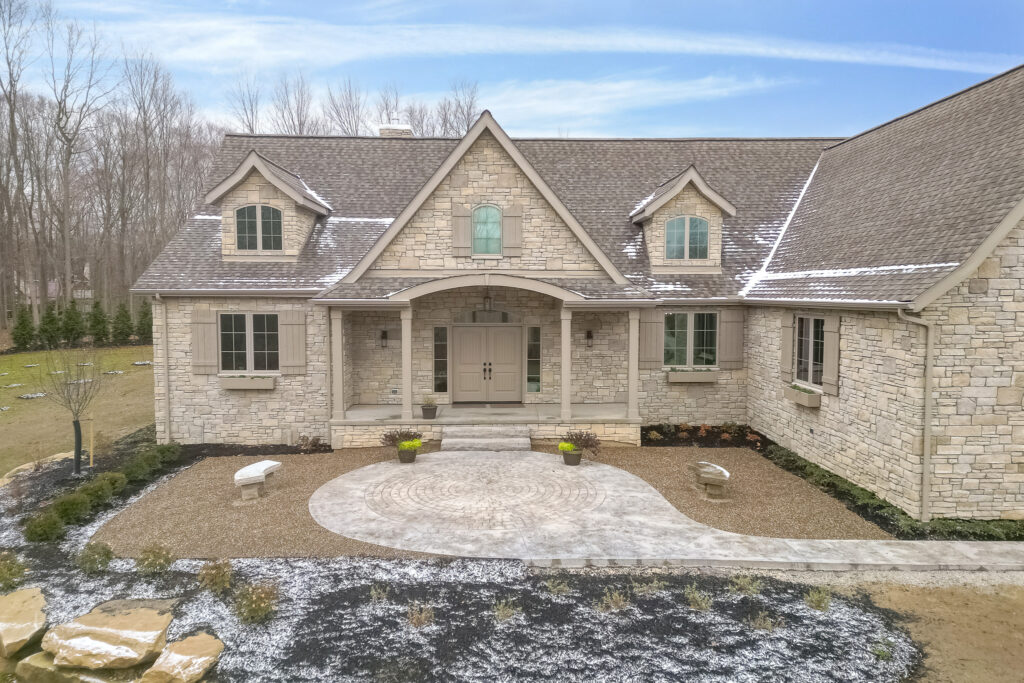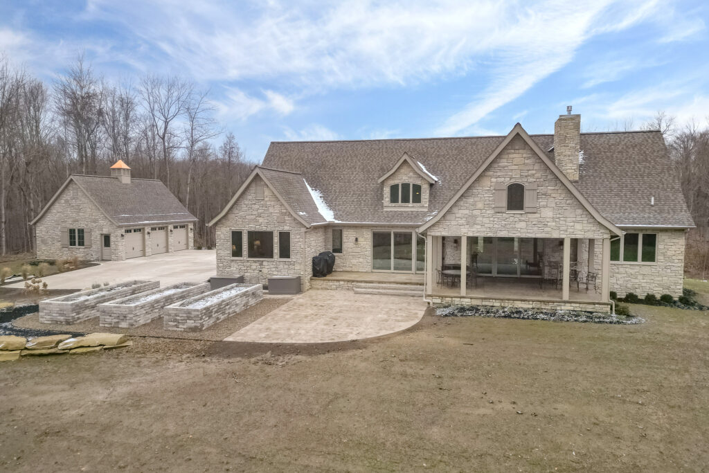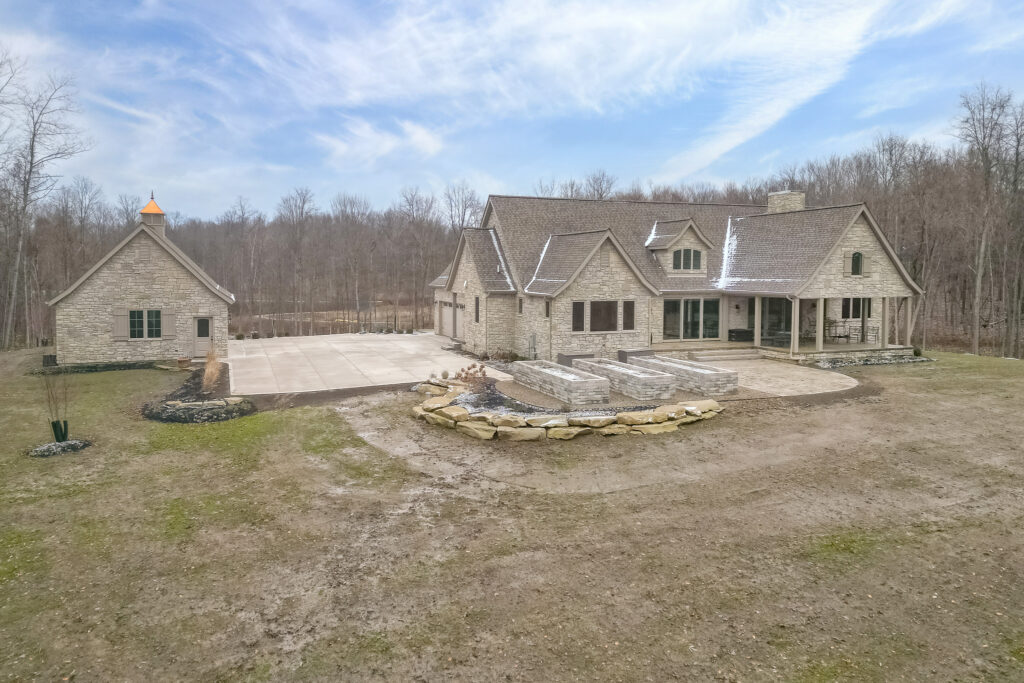 The beautiful stone ranch exudes timeless elegance with its single-story layout and a façade adorned in natural stone, showcasing a harmonious blend of durability and aesthetics. Its low-profile silhouette seamlessly integrates with the surrounding landscape, while expansive windows flood the open interior spaces with abundant natural light. A charming patio completes the picture, inviting residents to enjoy the tranquility and beauty of their picturesque surroundings.