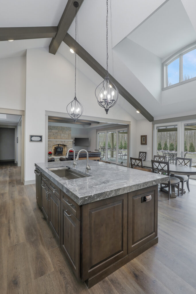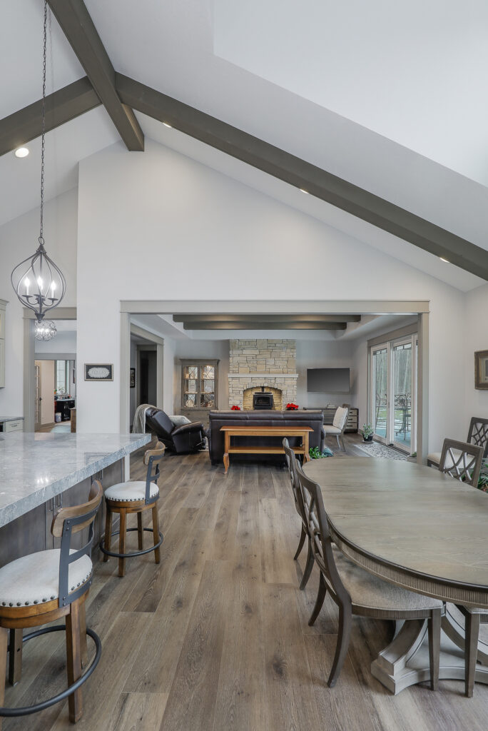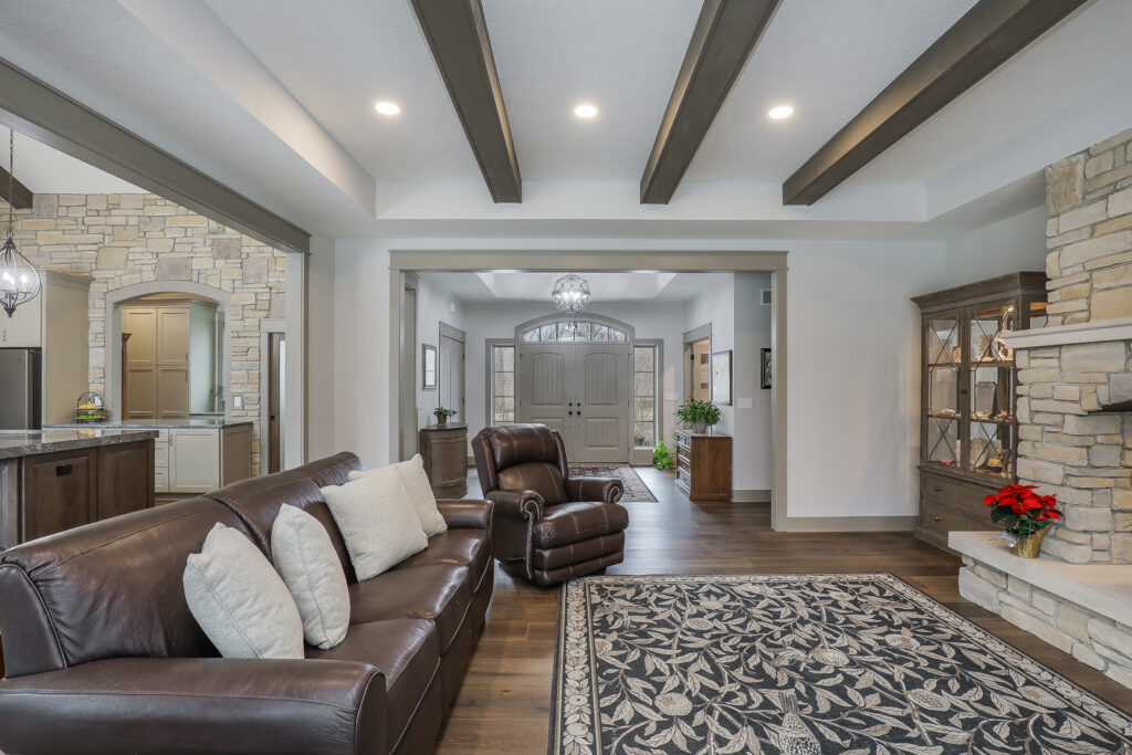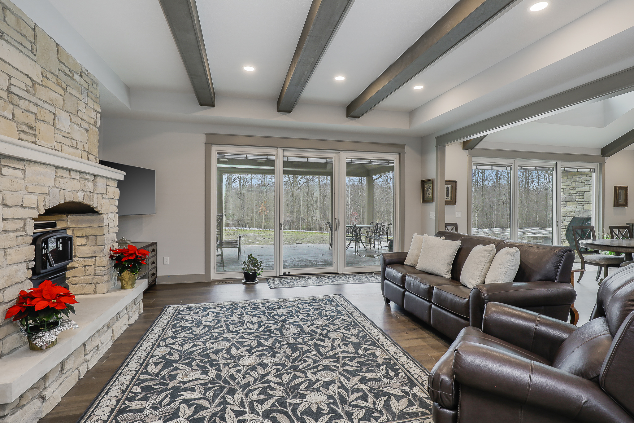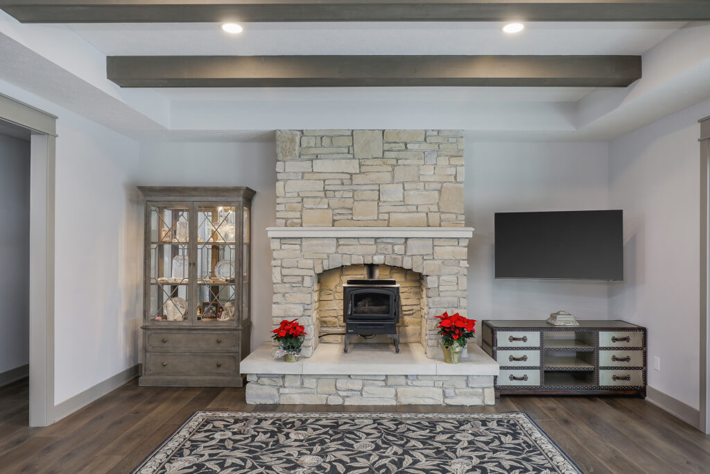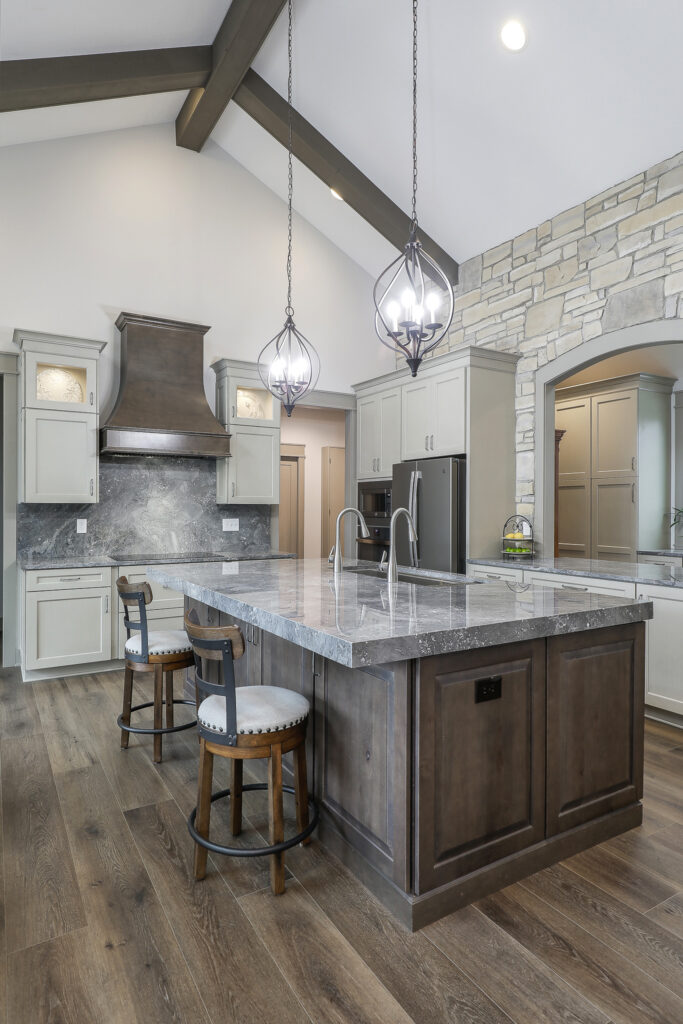 The beautiful stone ranch exudes timeless elegance with its single-story layout and a façade adorned in natural stone, showcasing a harmonious blend of durability and aesthetics. Its low-profile silhouette seamlessly integrates with the surrounding landscape, while expansive windows flood the open interior spaces with abundant natural light. A charming patio completes the picture, inviting residents to enjoy the tranquility and beauty of their picturesque surroundings.