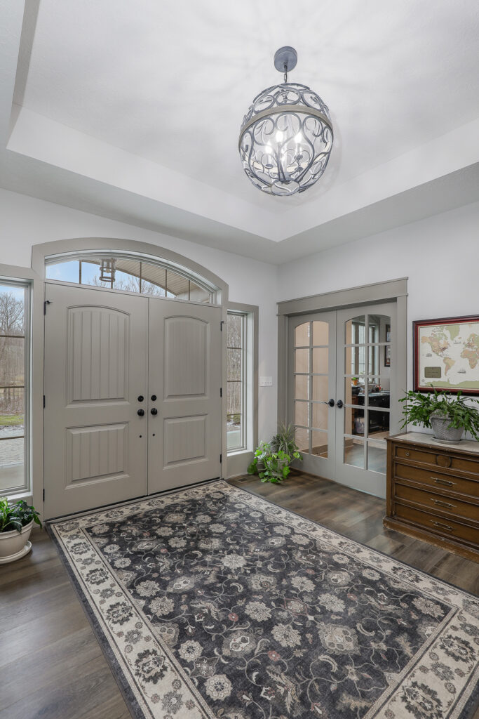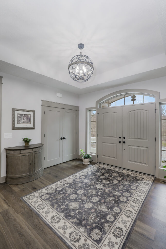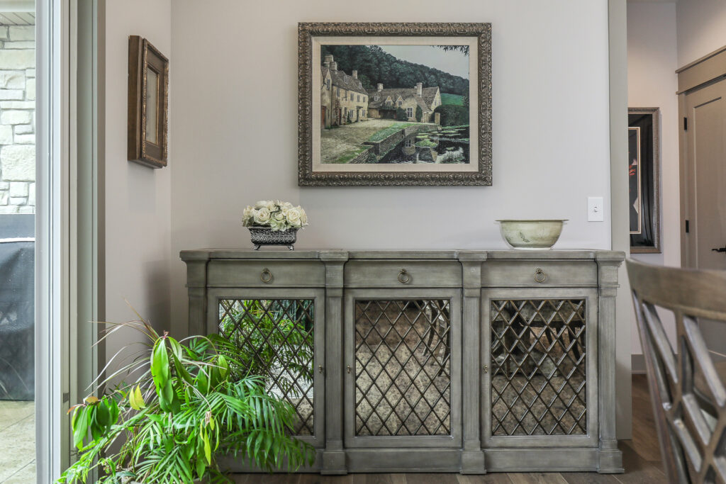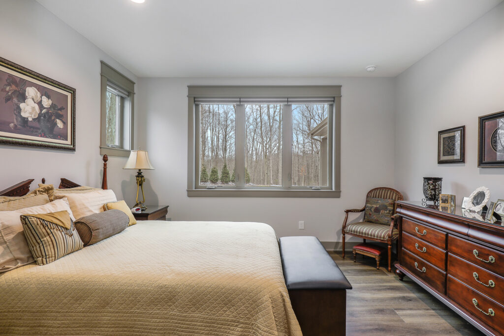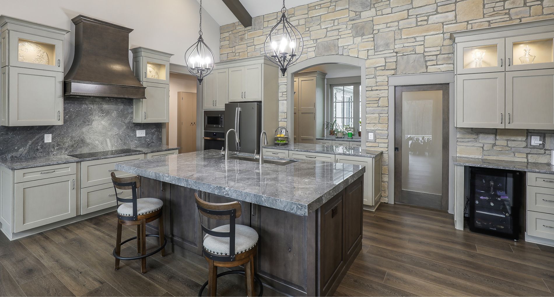 The beautiful stone ranch exudes timeless elegance with its single-story layout and a façade adorned in natural stone, showcasing a harmonious blend of durability and aesthetics. Its low-profile silhouette seamlessly integrates with the surrounding landscape, while expansive windows flood the open interior spaces with abundant natural light. A charming patio completes the picture, inviting residents to enjoy the tranquility and beauty of their picturesque surroundings.