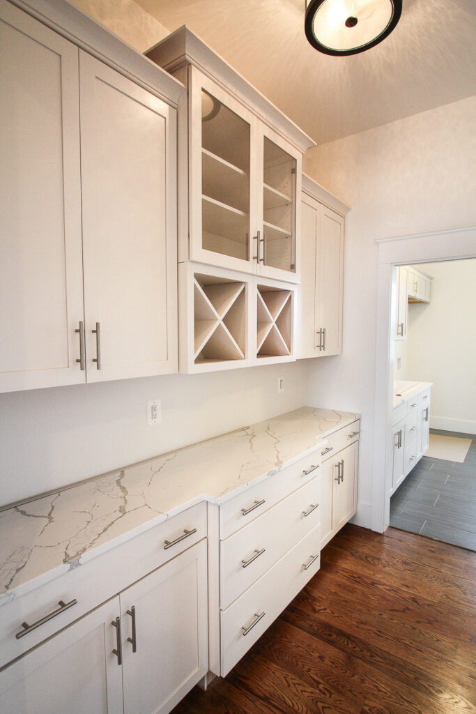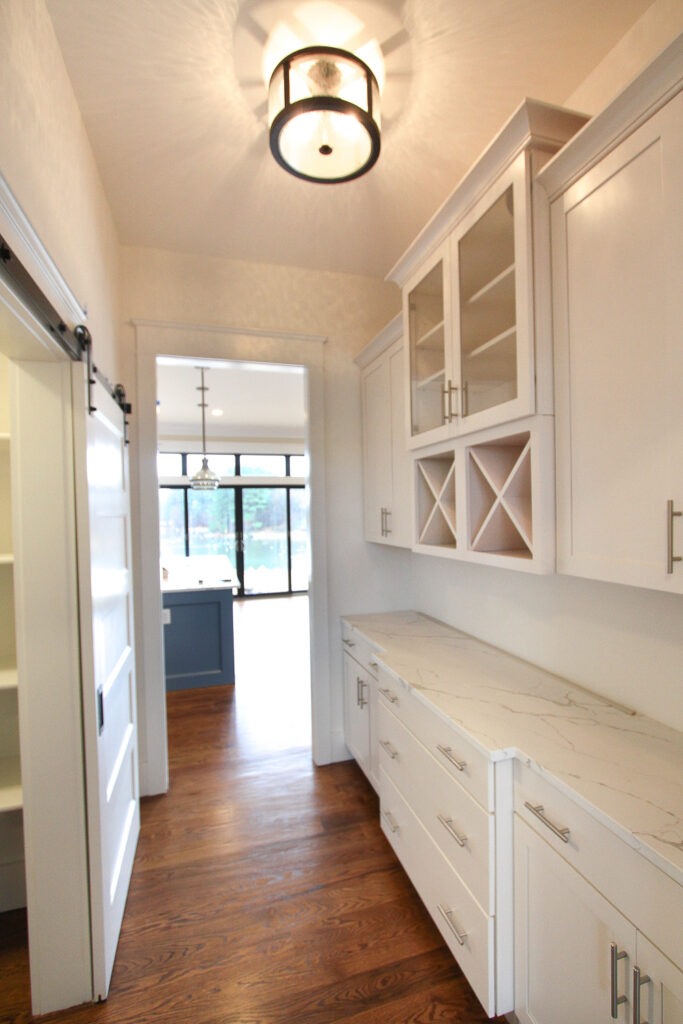 Designed to maximize its stunning lakeside location, the back of the home features expansive windows that frame lake views from the kitchen, family room, and master bedroom. A beautiful back patio extends the living space outdoors, providing the perfect spot for entertaining or simply enjoying the tranquil scenery. This home features a balance of natural materials and modern finishes, providing comfort, style, and enduring craftsmanship.