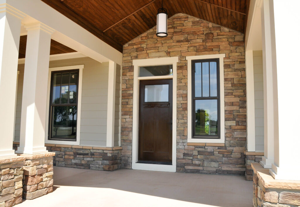 This modern farmhouse in Purcellville, VA, offers the perfect blend of traditional charm and contemporary comfort. The thoughtfully designed exterior showcases a beautiful combination of classic red board-and-batten siding with neutral tones and stone accents, seamlessly marrying rustic appeal with modern sophistication.