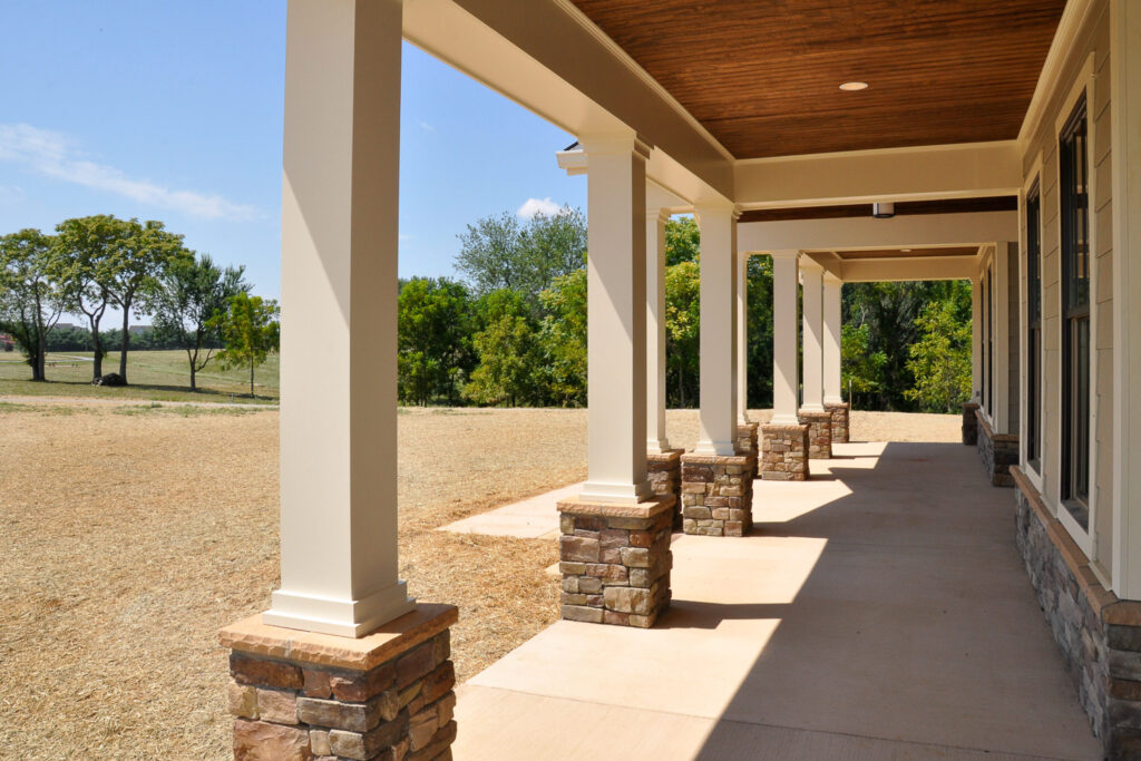 Inside, the open floor plan creates a spacious and inviting atmosphere, ideal for both entertaining and everyday living. Modern amenities throughout the home provide convenience and luxury, including a state-of-the-art kitchen with sleek finishes, abundant natural light, and custom cabinetry. The family room features expansive windows that highlight the serene views of the surrounding countryside, adding to the sense of tranquility. The wrap-around porch and back patio offer additional space for relaxation.