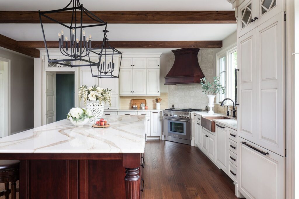 Gathering spaces were enhanced with a dramatic new kitchen and scullery that serve as the heart of the home. Whimsical details, like a hidden bookcase concealing the laundry room, balance sophistication with charm. Bathrooms were reimagined with spa-inspired luxury, while the master suite gained a boutique-style closet and serene bath.