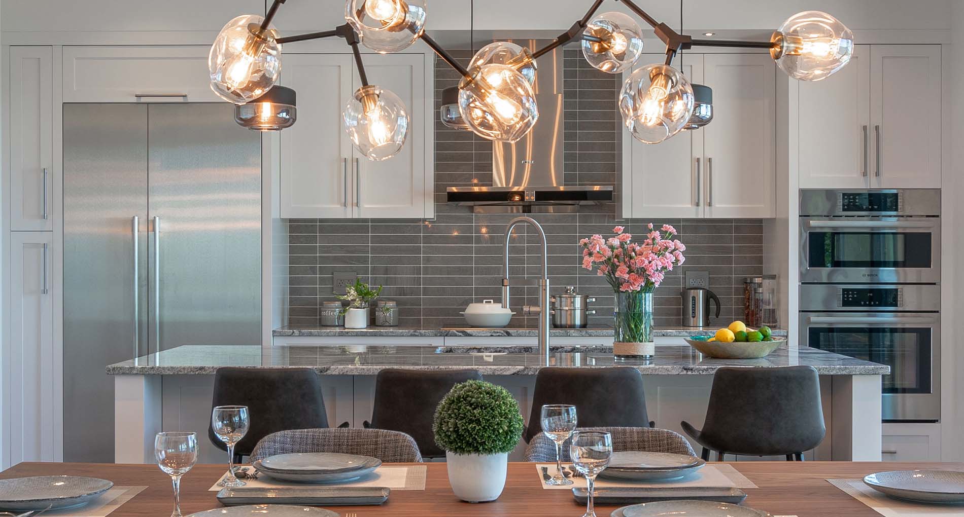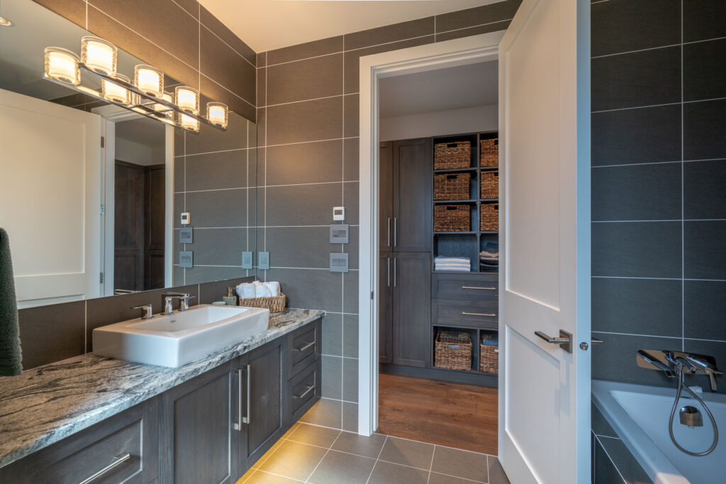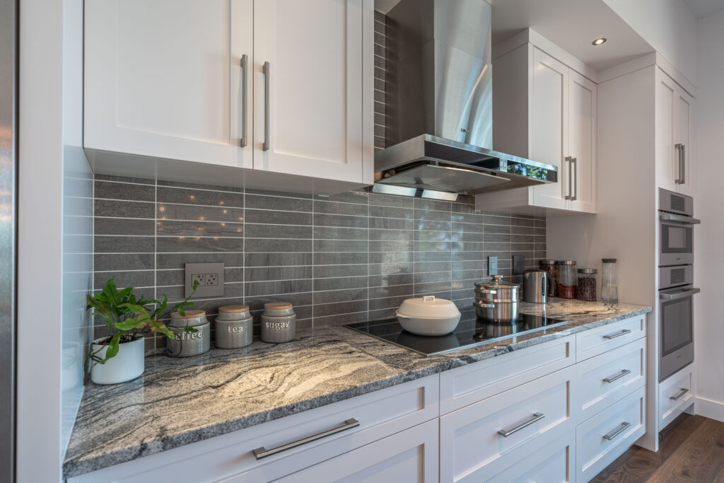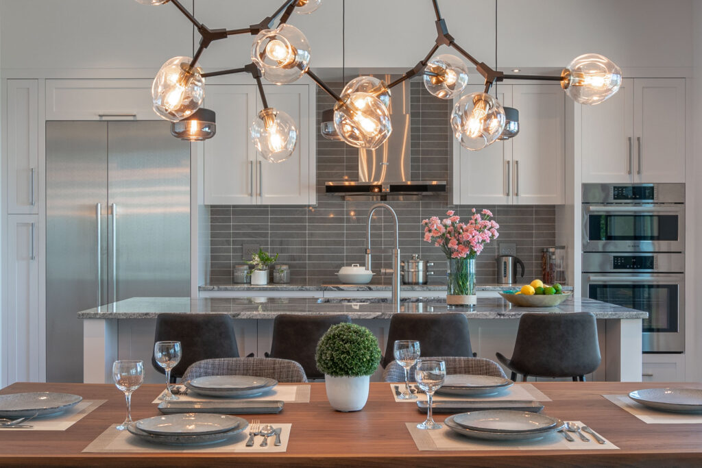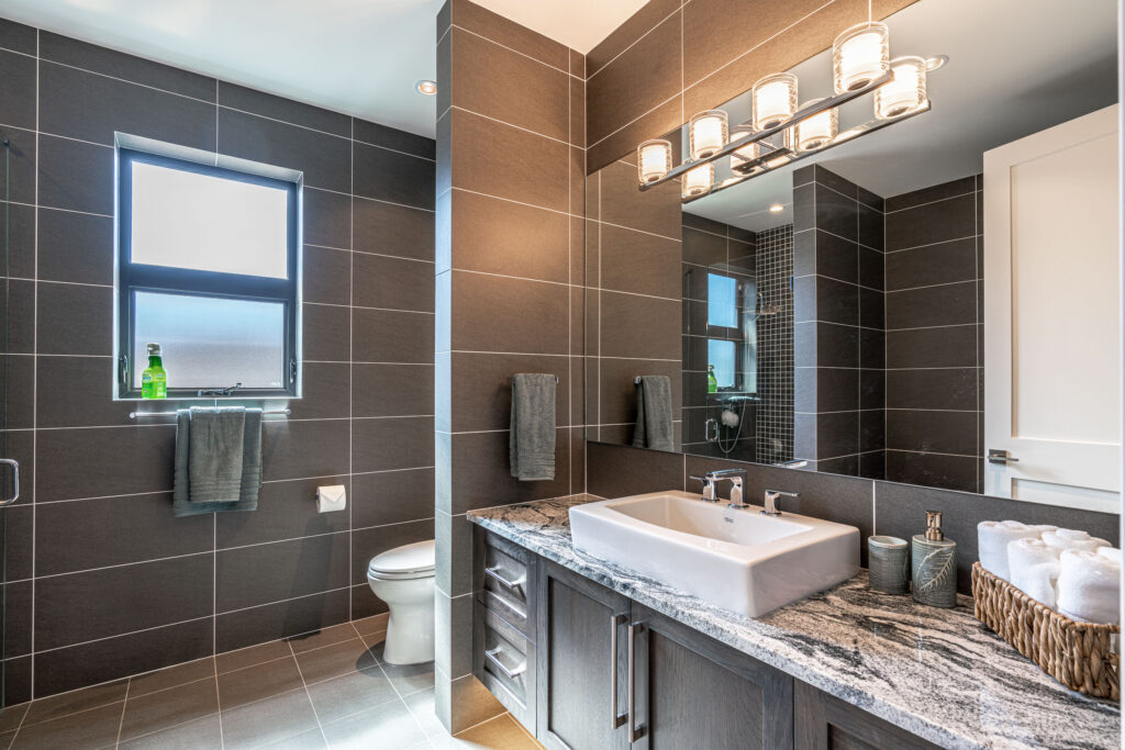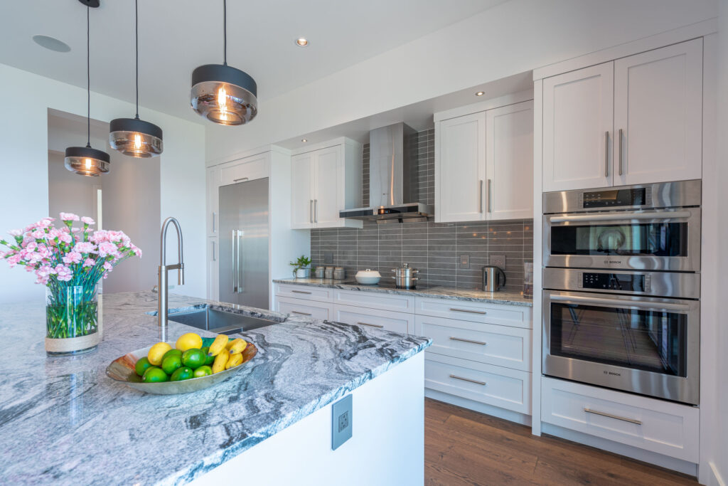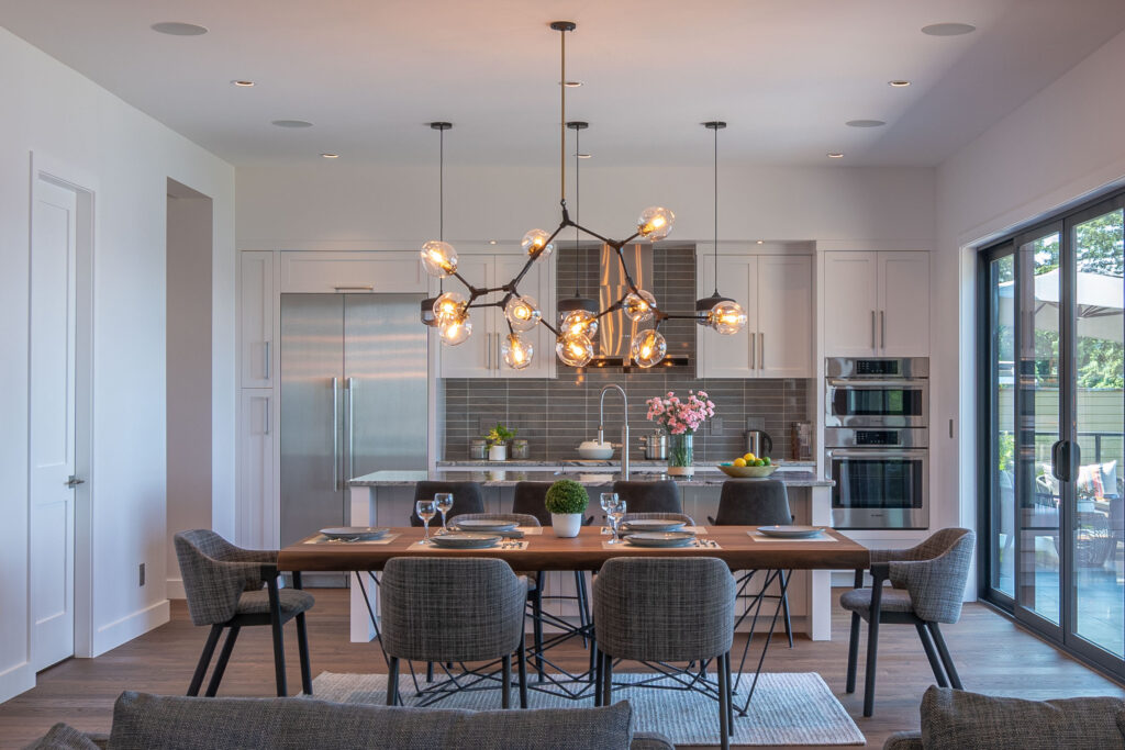 This expansive modern custom home features an open concept main living area, a gourmet kitchen, hardwood floors, and gorgeous ocean views.