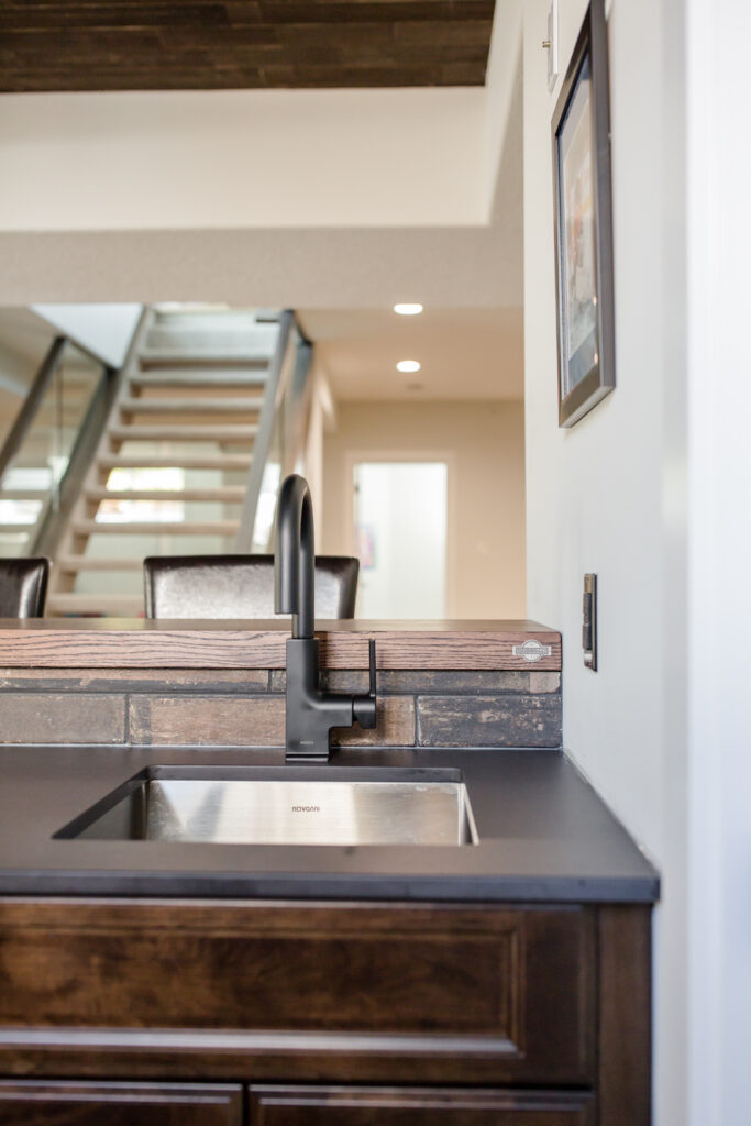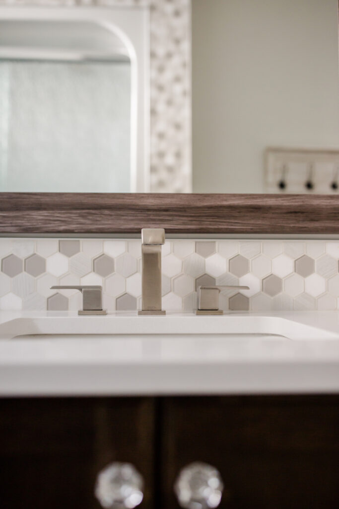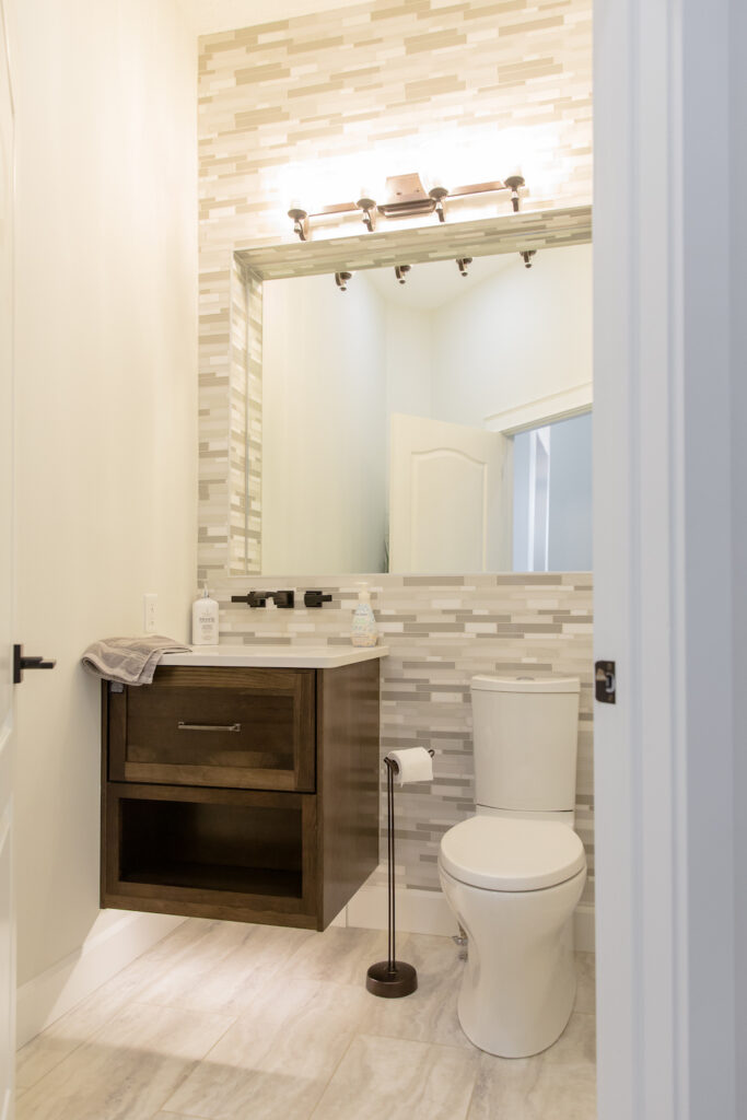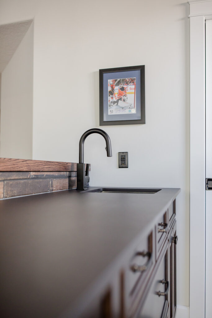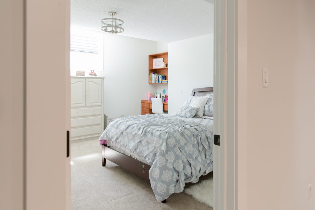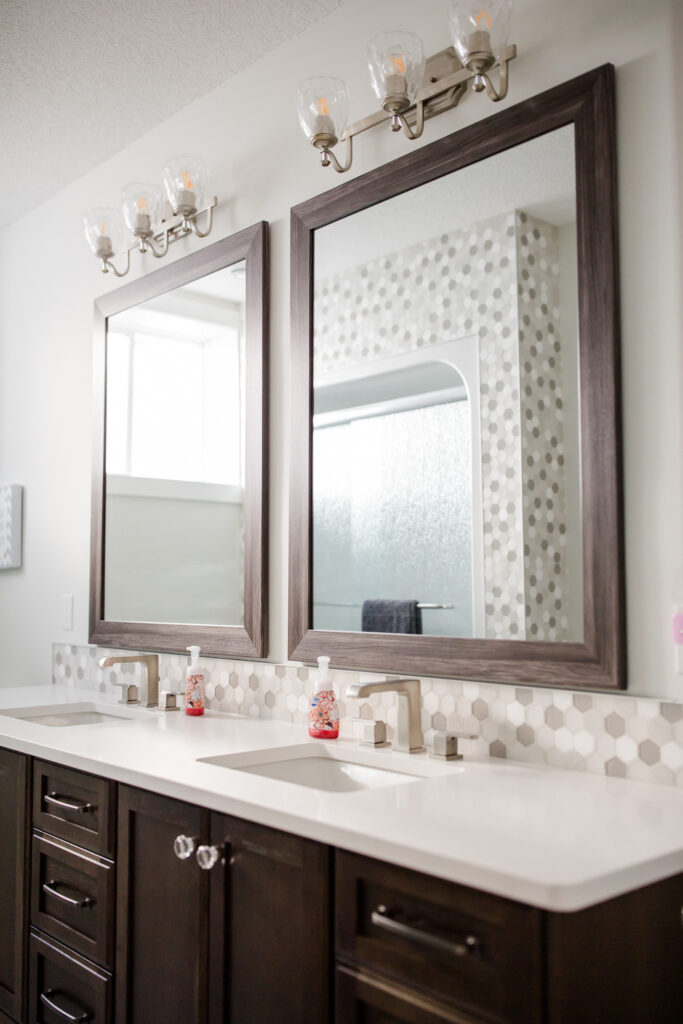 The client’s dad built the house when the client was a teenager. His Dad has lived in it ever since but had become ill with cancer and wanted to downsize. The client, planning on doing an alternate renovation with Alair, decided to purchase the house from the dad and complete a major transformation. We removed glass block and dust rose valances – transforming the interior from dated to modern.