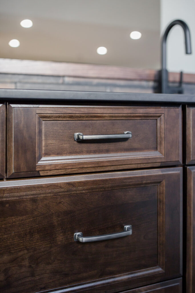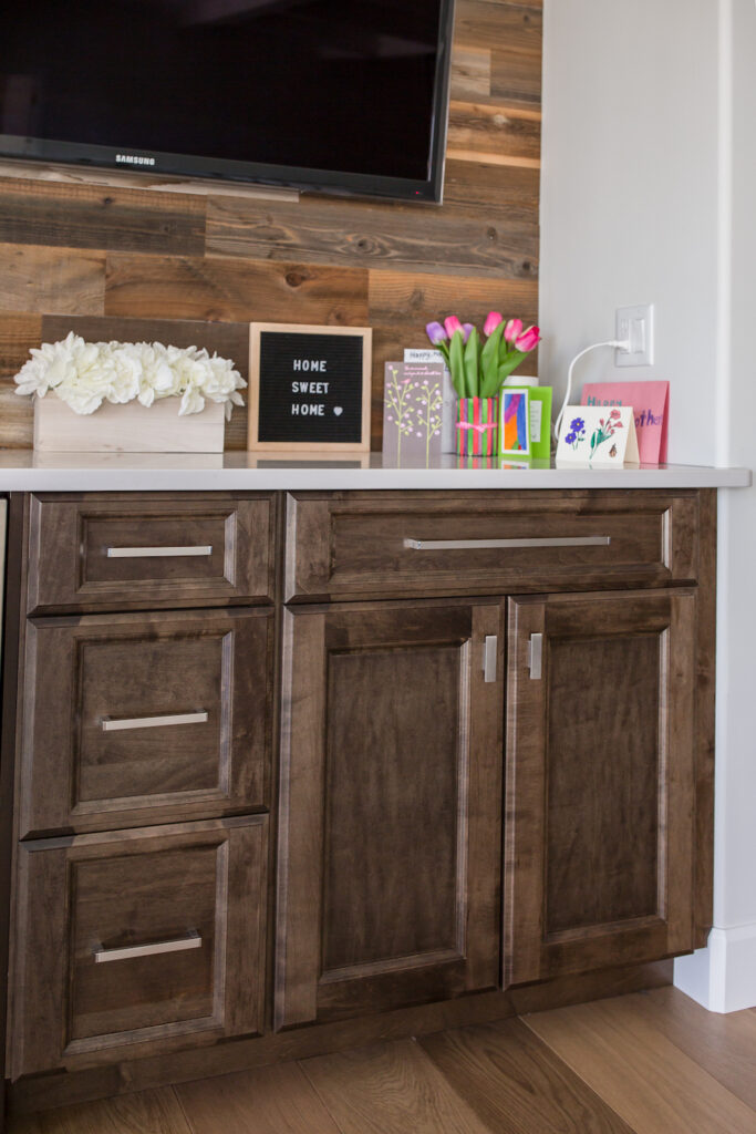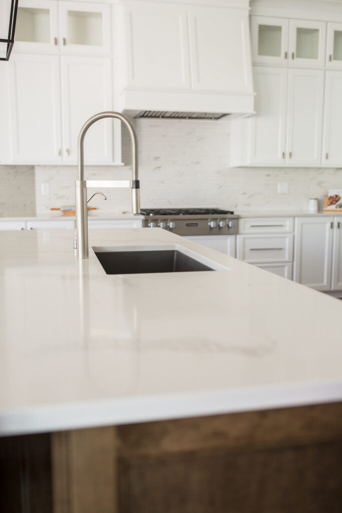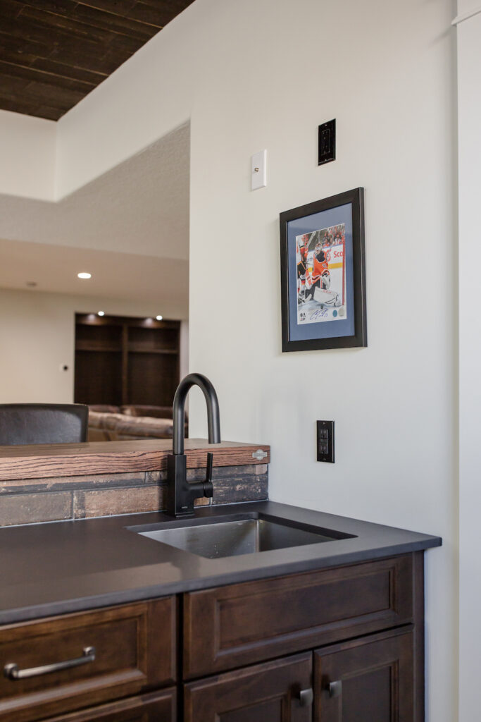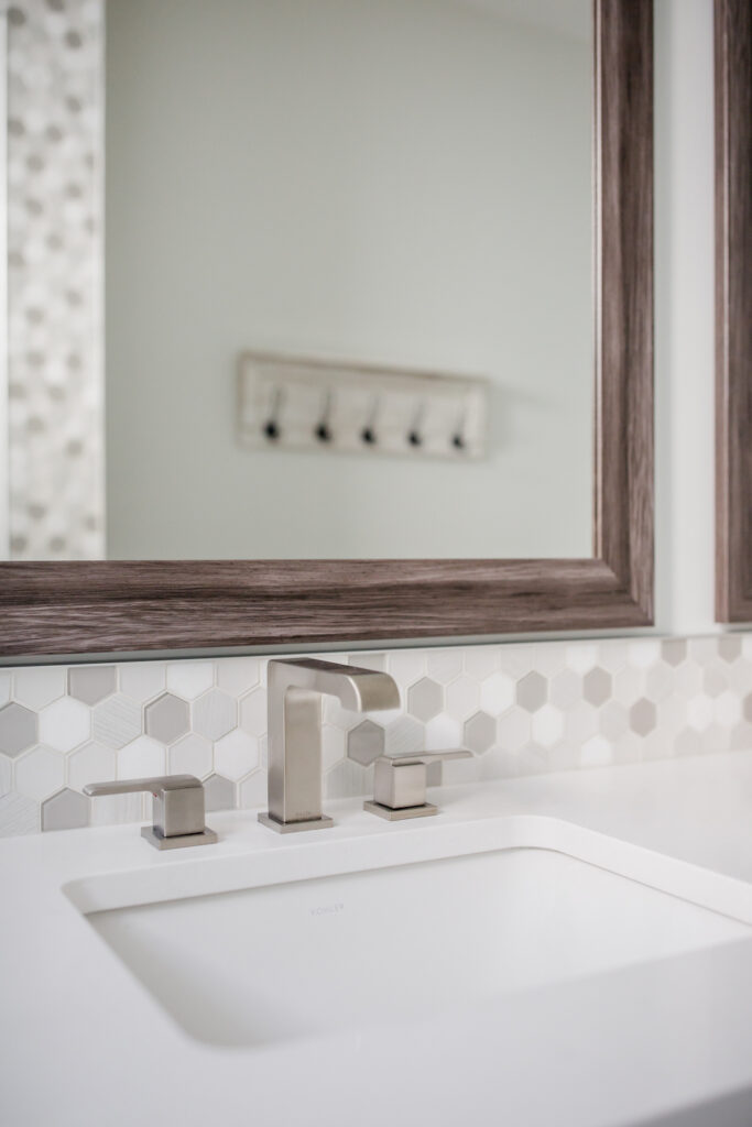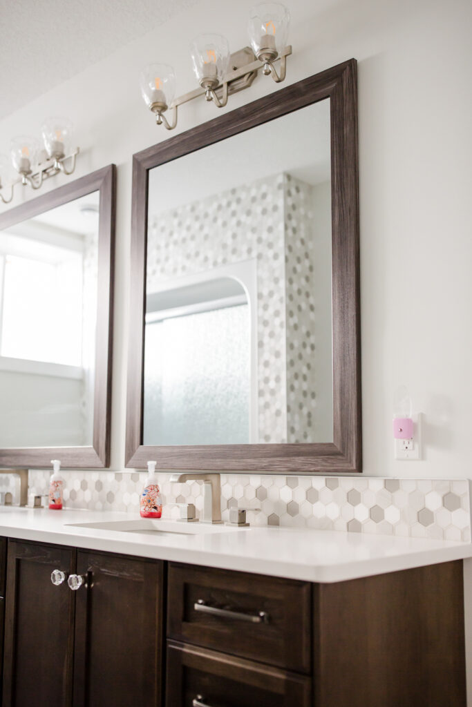 The client’s dad built the house when the client was a teenager. His Dad has lived in it ever since but had become ill with cancer and wanted to downsize. The client, planning on doing an alternate renovation with Alair, decided to purchase the house from the dad and complete a major transformation. We removed glass block and dust rose valances – transforming the interior from dated to modern.