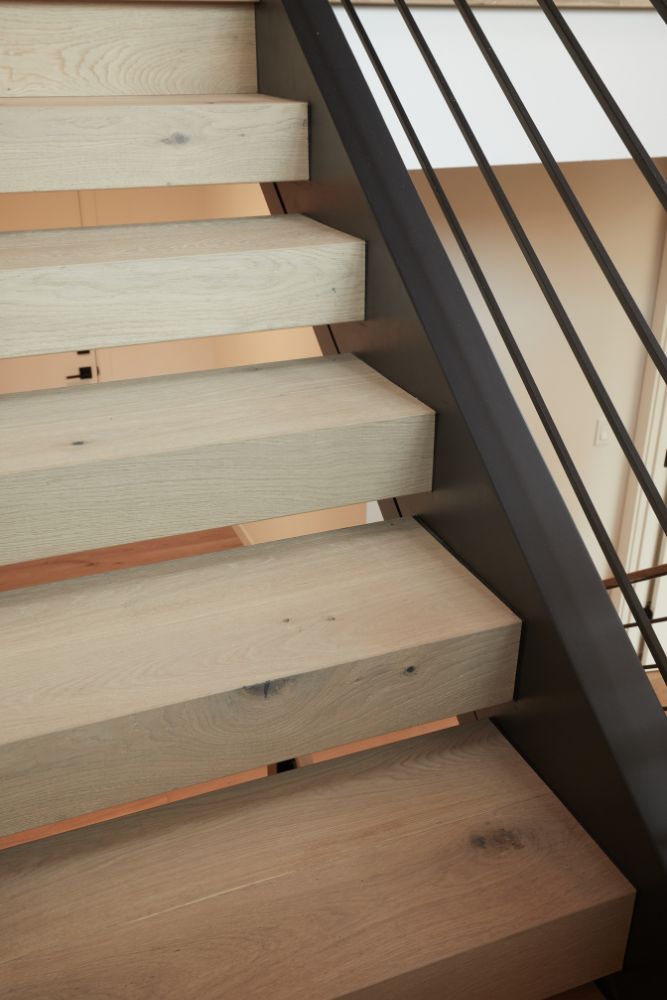 The mono stringer is a single beam that runs down the center of the staircase (see below), supporting each step. Its simplistic yet robust design that adds a contemporary twist to traditional staircases. With a mono stringer, you achieve a floating step effect. This design is ideal for homeowners who want a statement piece staircase.