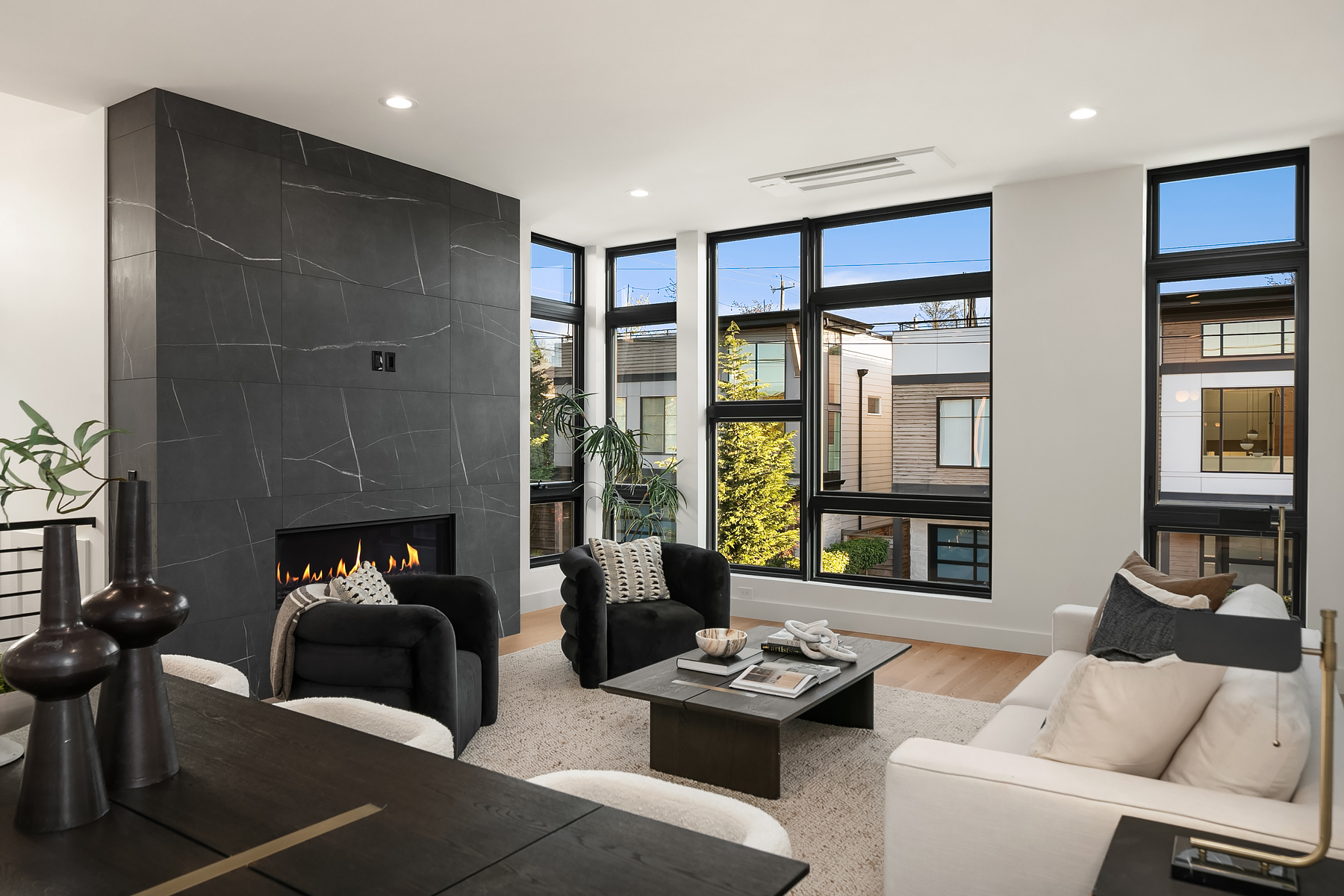 Nothing says modern like a monochromatic theme. The beauty of a neutral single color palette lies in its simplicity and sophistication. If you’ve seen our Ferry View project, you’ll notice how the modern coffee table decor complements the clean, bright, white aesthetic perfectly. Monochromatic decor makes it clear that each element is chosen with intentionality. It’s easy on the eyes and provides a soothing backdrop for guests to relax.