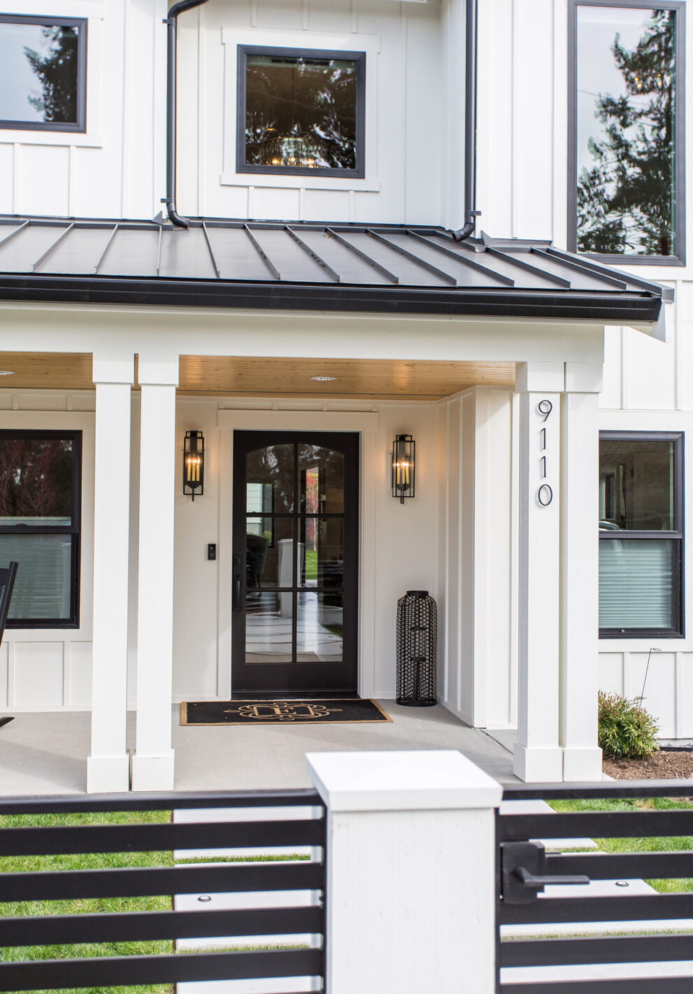 Boasting of features of a European lantern, this iron outdoor wall light looks modern, symmetrical and industrial. It’s clean design and metal frame with three classic candlestick bulbs bring timeless elegance and contemporary edge. We chose it for our Kirkland Farmhouse Project.