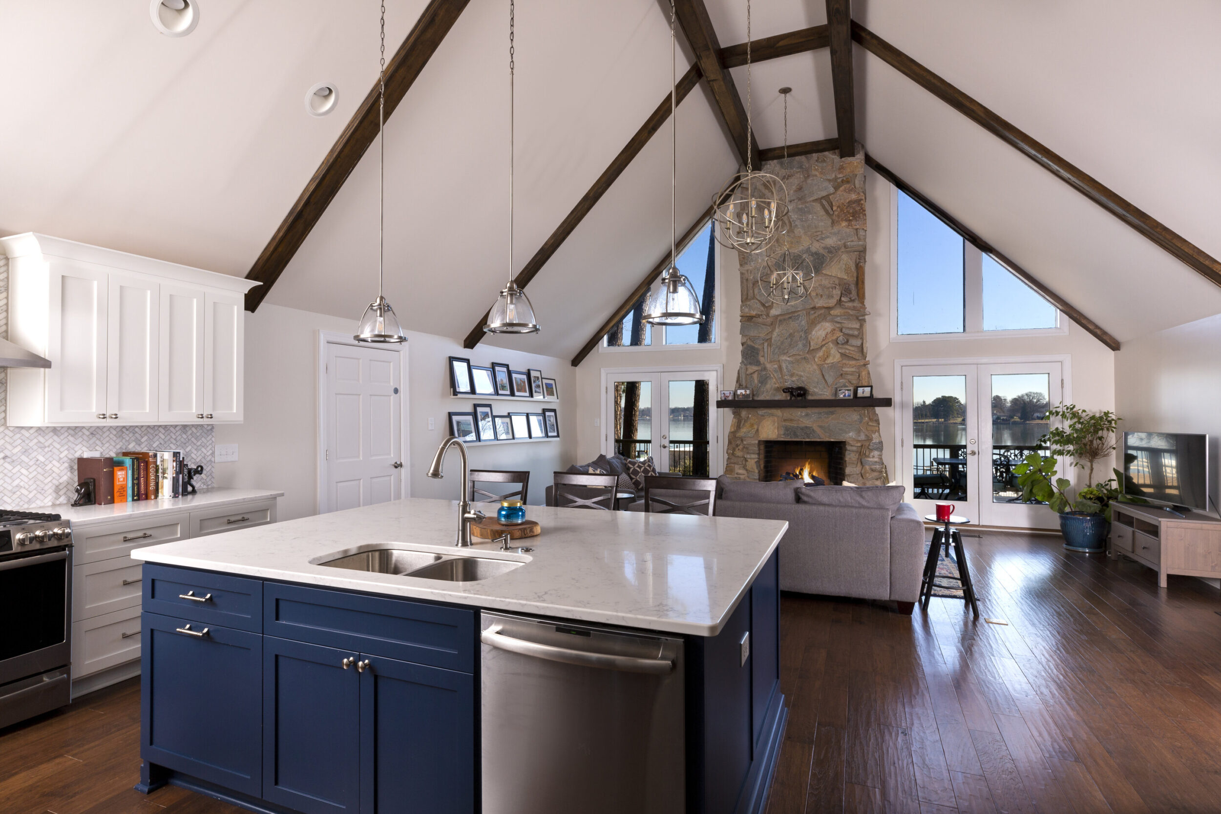 Kitchen island layouts provide a great amount of convenient work space and create a natural traffic flow. There are many creative options when it comes to designing a kitchen island. Do you need a large work surface for rolling out yummy cinnamon rolls or do you just need the traditional appliance, storage, sink, trashcan set up? Perhaps island seating is your must have for gathering family and friends. Ergonomics also play an important role as you live and work in your kitchen. Identifying the must-haves in your kitchen will aid in the design and help you make the most out of your space.