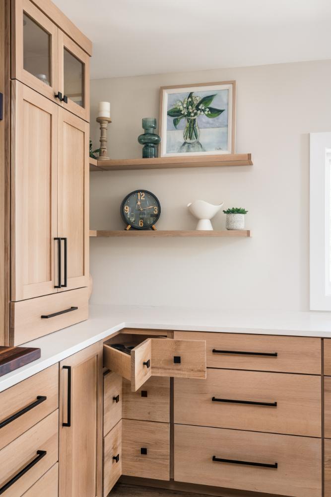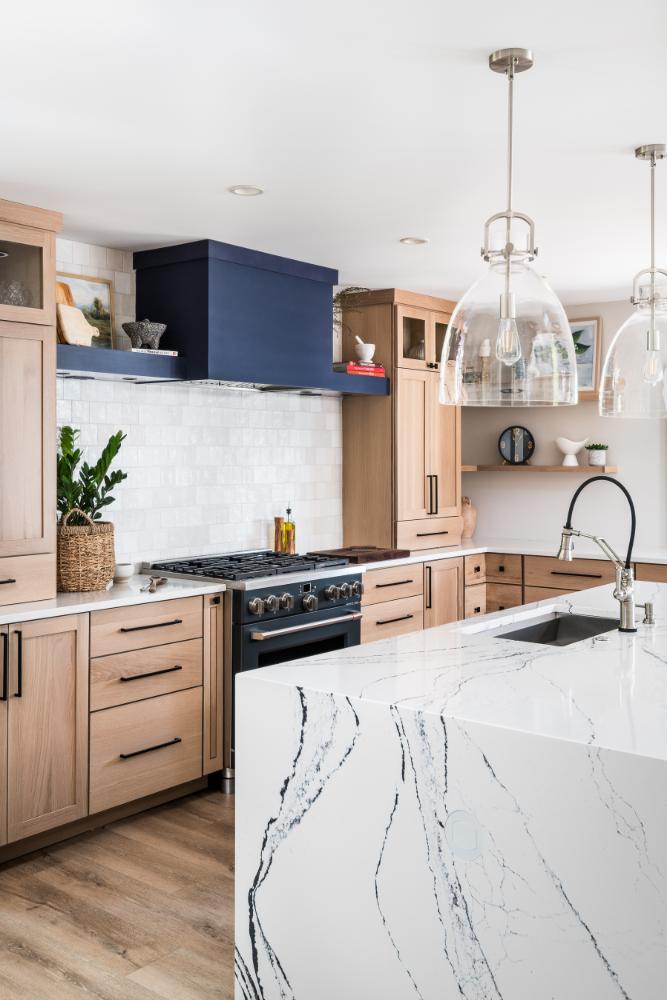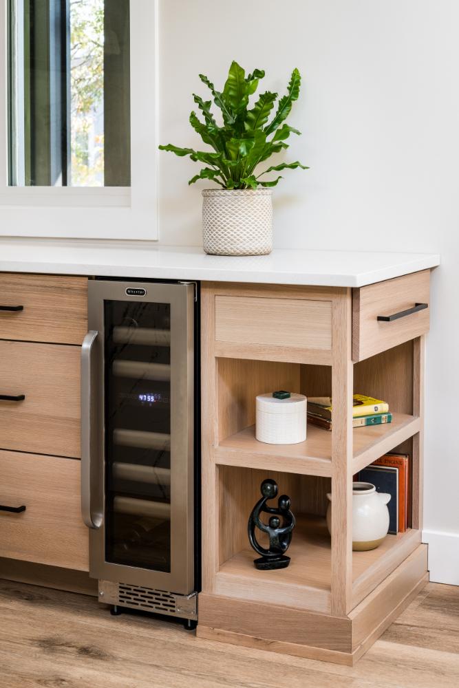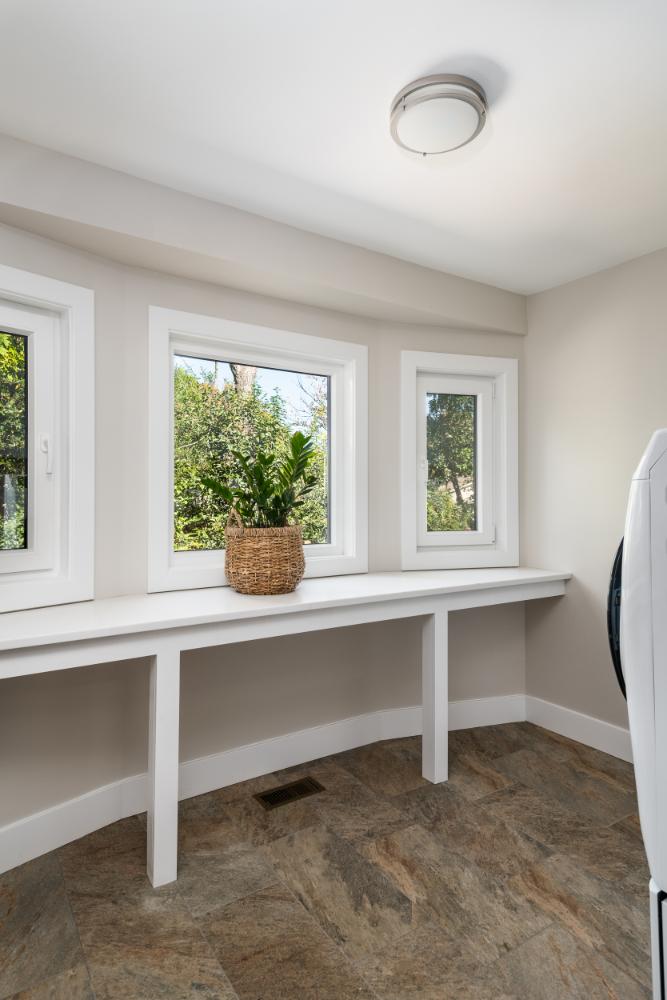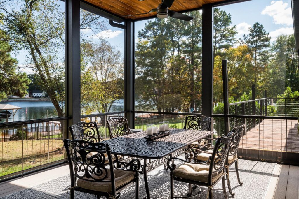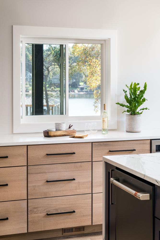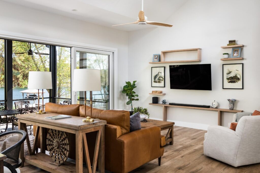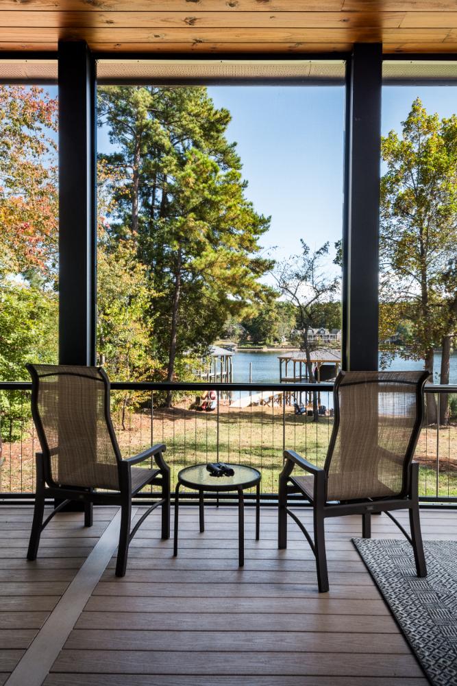 This 80’s home on the perfect lakefront lot was in dire need of updating. The layout was choppy, the kitchen had no lake view, and a huge fireplace blocked the living room view. The biggest challenge was adding a huge steel beam to create one open, airy living space. The design includes oversized windows and doors to flood the home with light and open up the lake views. Add a serene yet modern kitchen and a huge screened in porch and you get modern lakefront living at its best, with a new exterior facade that reflects the clients’ modern style.
