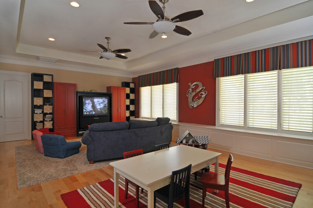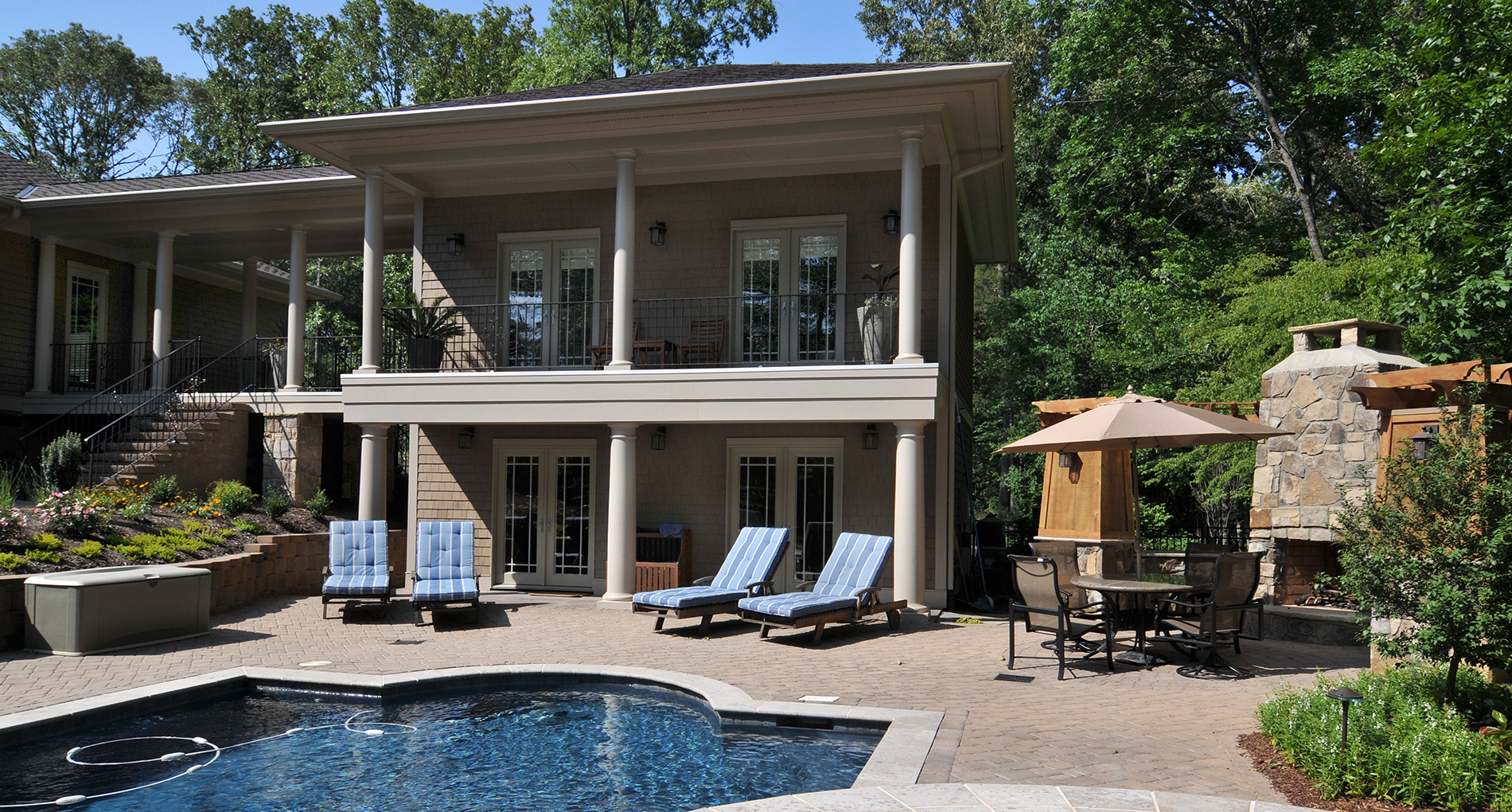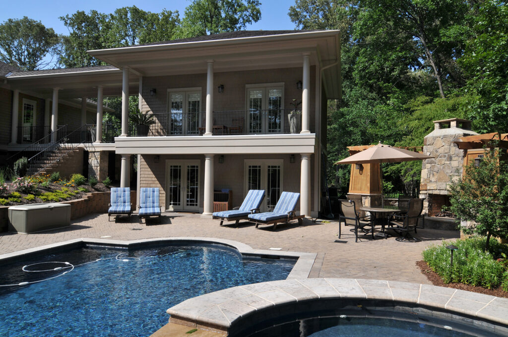 In addition to the traditional functions of a pool house, the client needed a private guest suite as well as a separate kids play area. This project gave them all three in this two-story pool house.