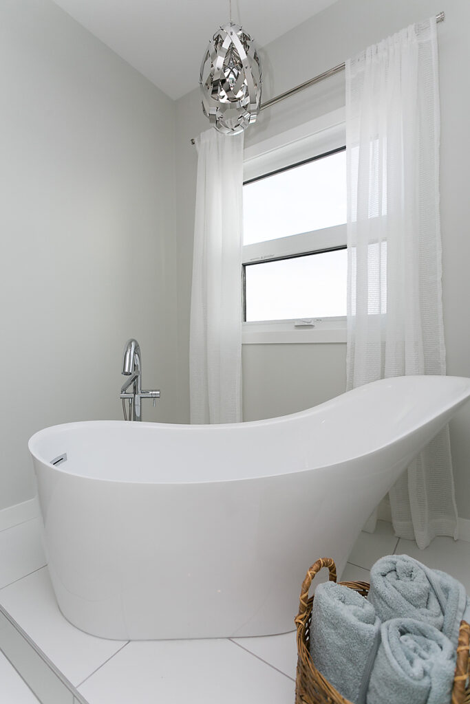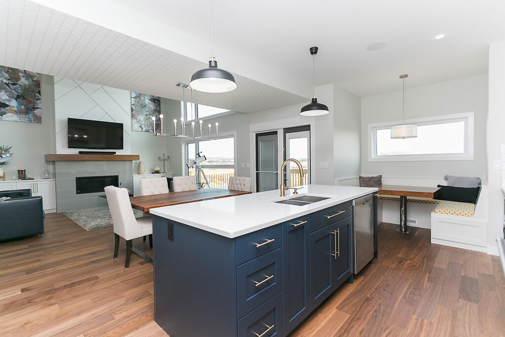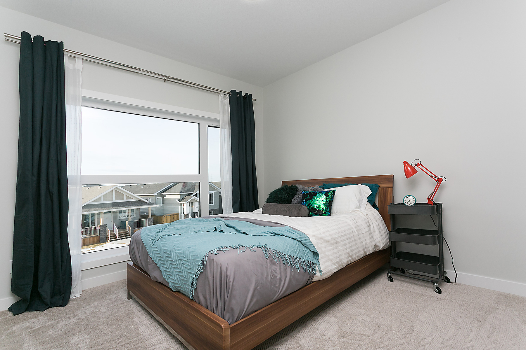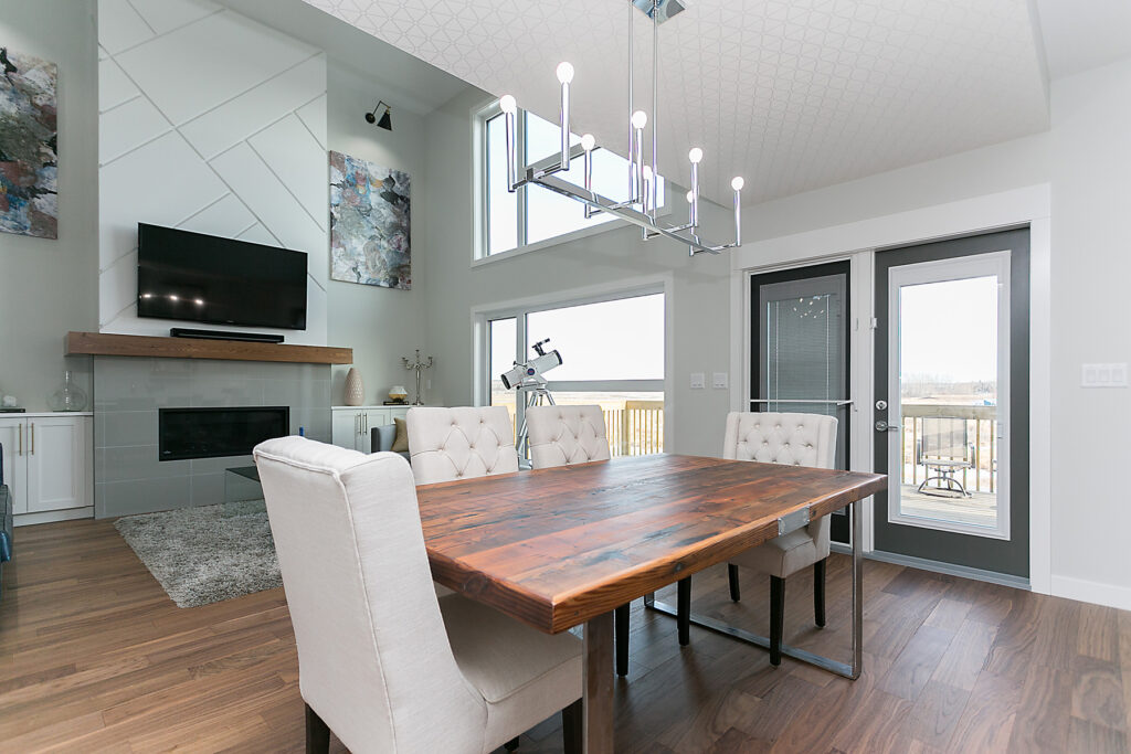 This modern custom home features a spacious open concept main floor with hardwood floors, large windows, and high ceilings. The master suite features a recessed ceiling, walk-in closet, sliding doors, and spa-like master bathroom.