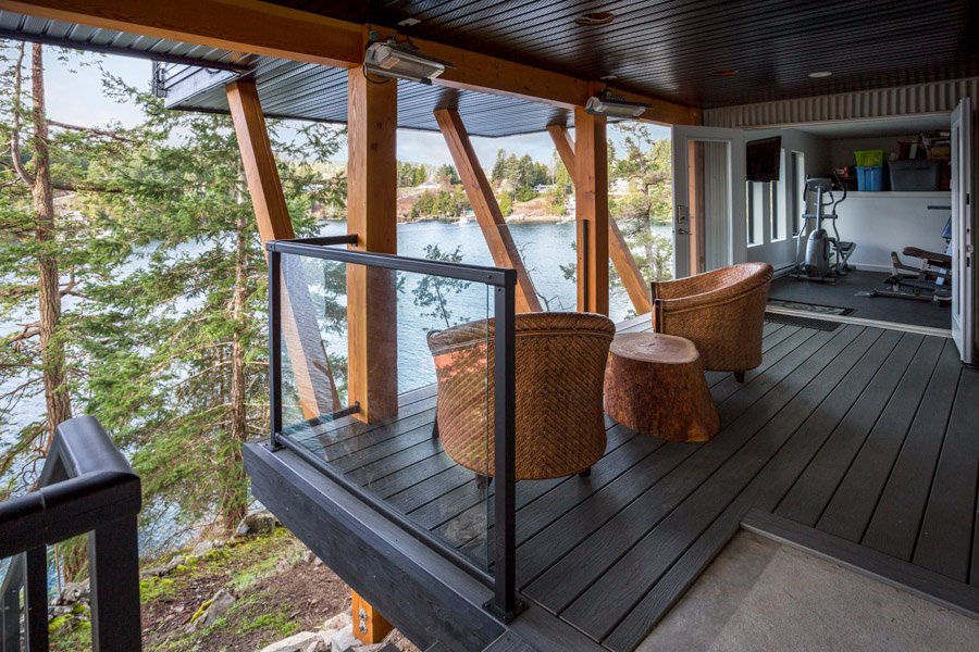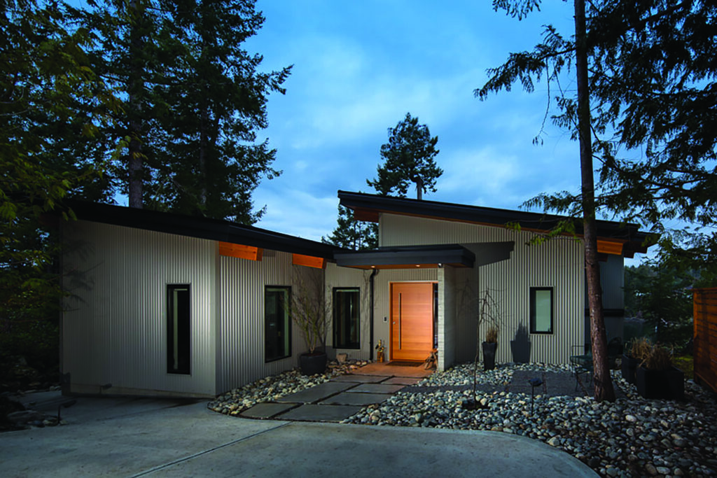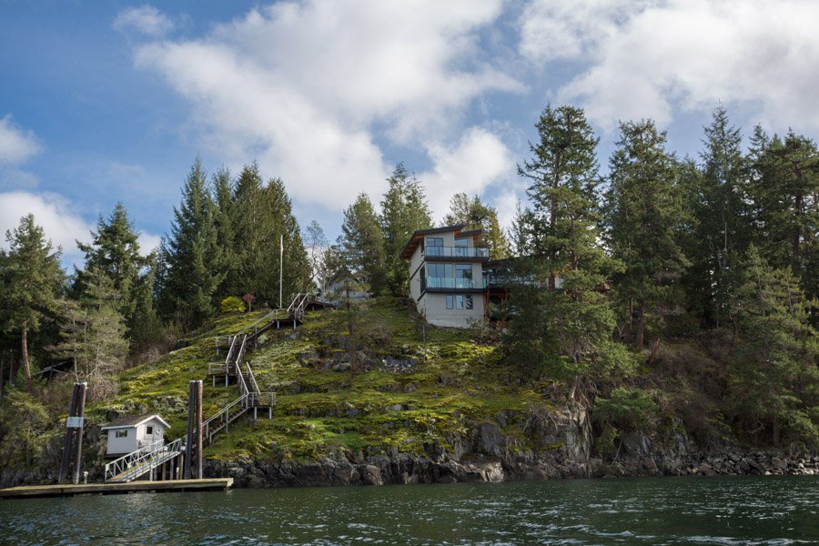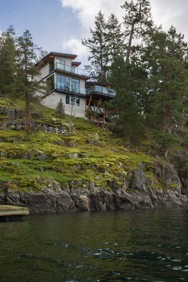 This Cliffside home is an open-concept contemporary design with many eco-friendly features. The entire home is completely automated and is equipped with geothermal radiant heat throughout. Nestled on a bedrock cliff in a quiet ocean bay this is a low maintenance home that is finished with metal siding and roofing.