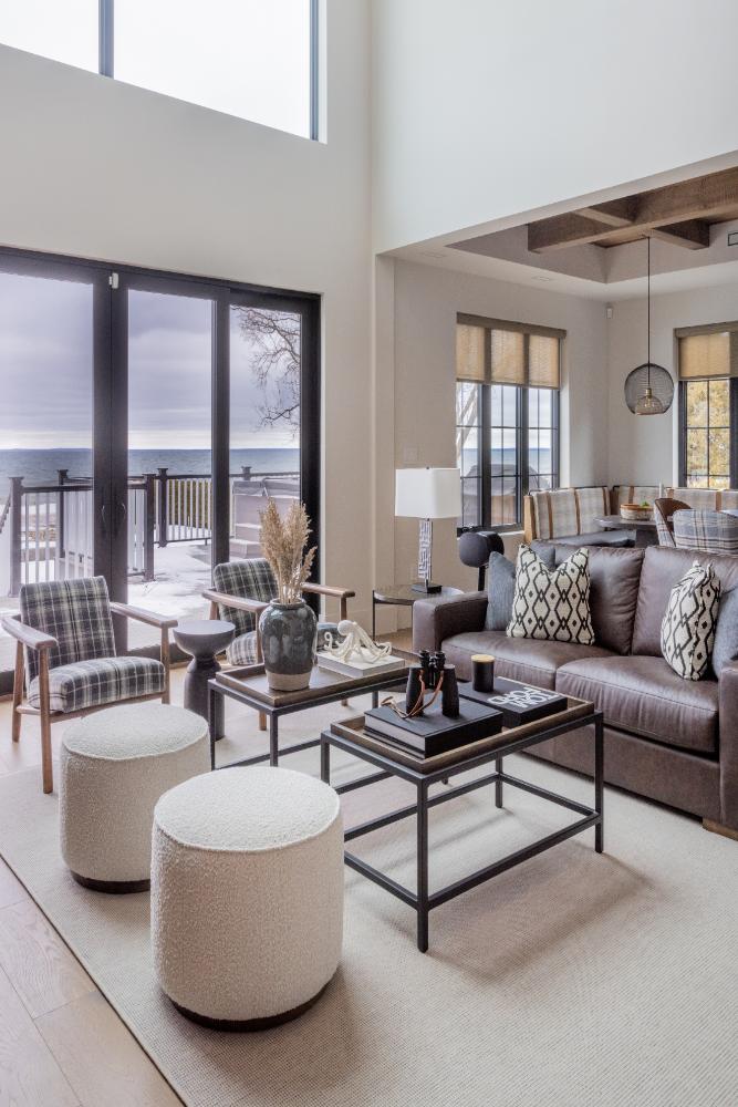 Grand windows line the exterior of the home, allowing natural light to flood to