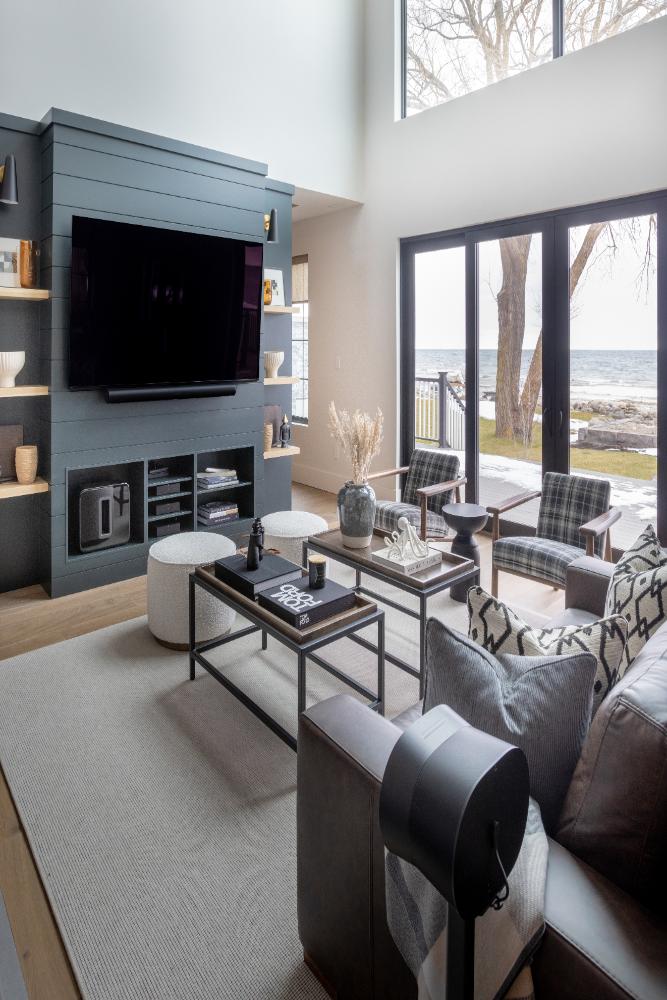 Natural light floods every corner, accentuating the sleek design and highlighting the breathtaking waterfront views. Whether you’re enjoying your morning coffee or hosting a soirée, the abundance of space ensures there’s always room for laughter and conversation. For those who appreciate a touch of drama, dark-coloured features add a bold contrast, elevating the aesthetic and adding depth to each room. From the grand living area to the intimate corners perfect for relaxation, this home is a masterpiece of style and comfort.
