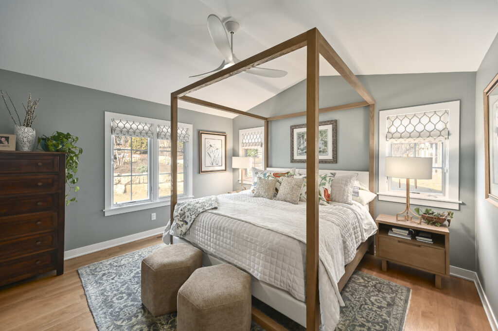 The expanded bedroom wing now includes two ensuites and a refined powder room, while the primary suite offers dual vanities, a barrier‑free shower, and heated floors. New high‑performance windows brighten every room and improve comfort year‑round.