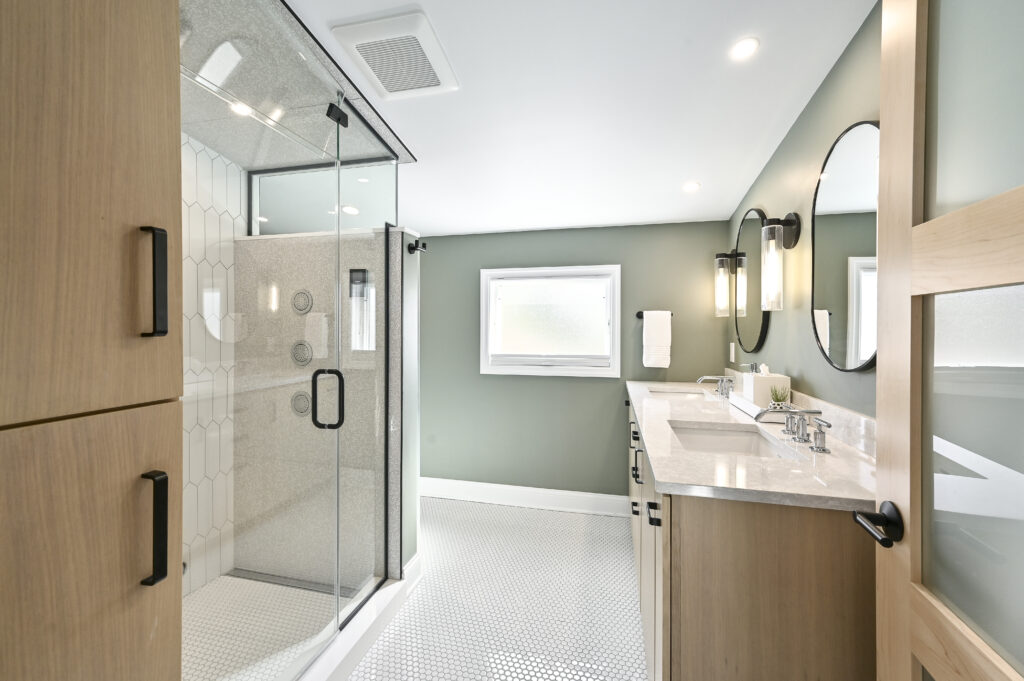 This stunning remodel is a prime example of updating a home while honoring its original character. Spanning two stories, the project reimagined every space, featuring a large kitchen addition flooded with natural light that opens to a new deck and a beautifully landscaped backyard oasis.