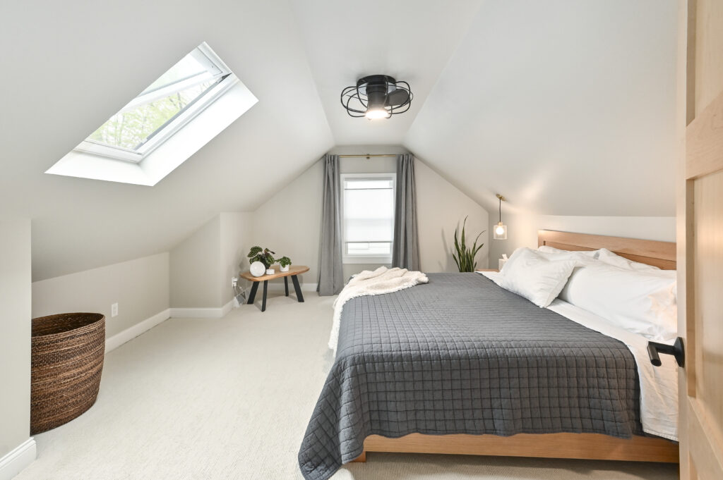 The second-level dormer addition transformed the home into a luxurious primary suite, complete with a spacious bedroom, a loft sitting area, a walk-in closet, and a lavish bath. This project showcases exceptional craftsmanship, beautiful finishes, and meticulous attention to detail, proving that an old home can be beautifully revitalized while maintaining its historic charm.