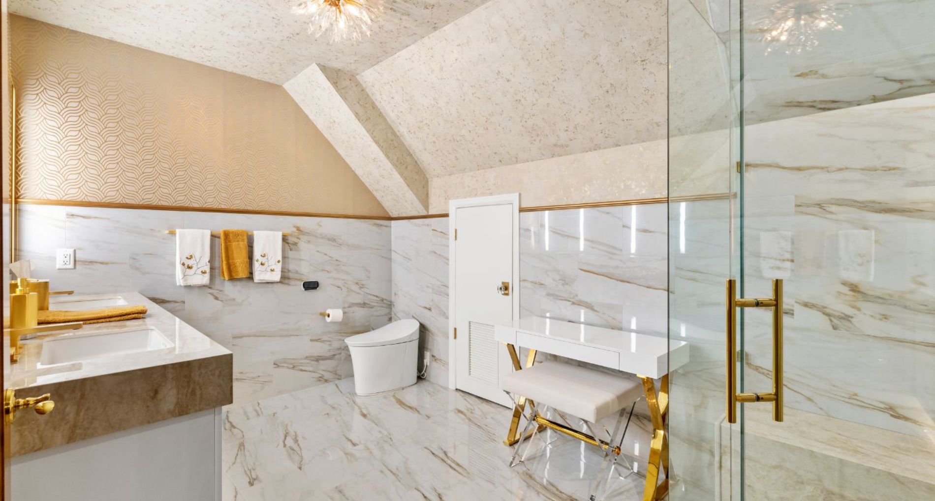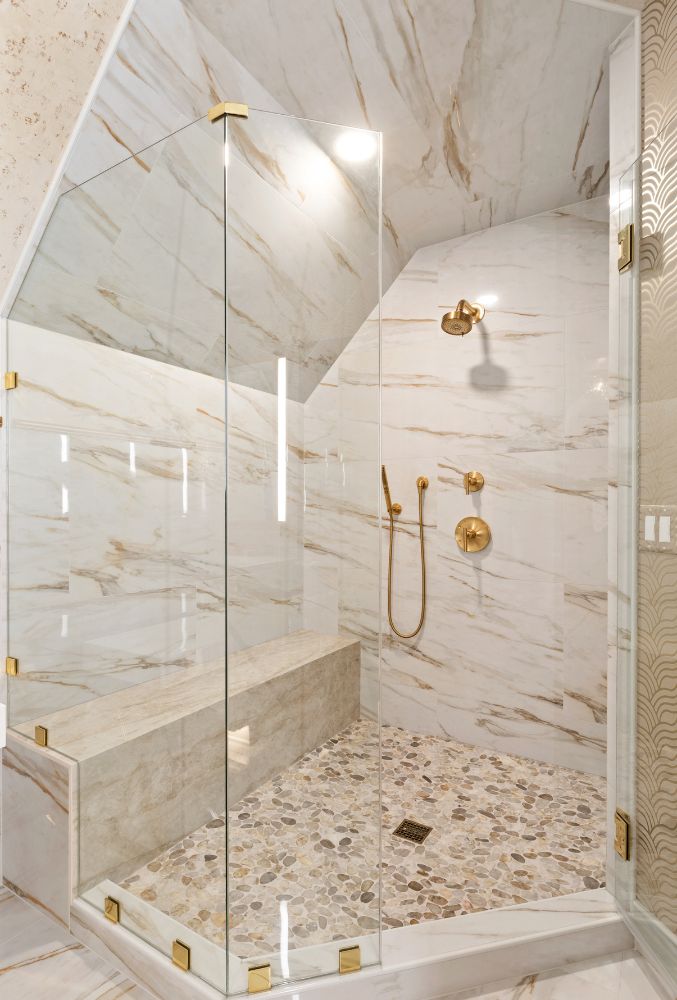 As this couple’s children got older and started to move out of the house, the Master Bath become a new priority. The existing Master Bath was dark and felt cluttered with an awkward sloped ceiling that interrupted the bath and forced the vanity to be on an angle.