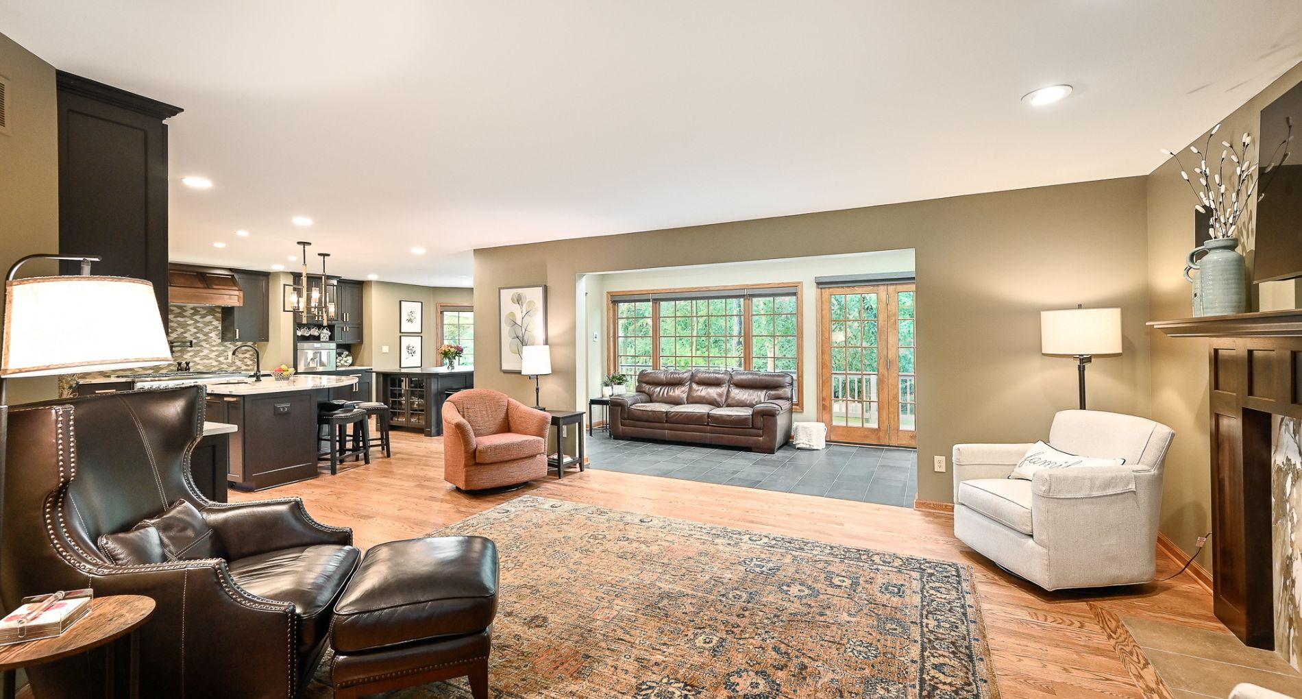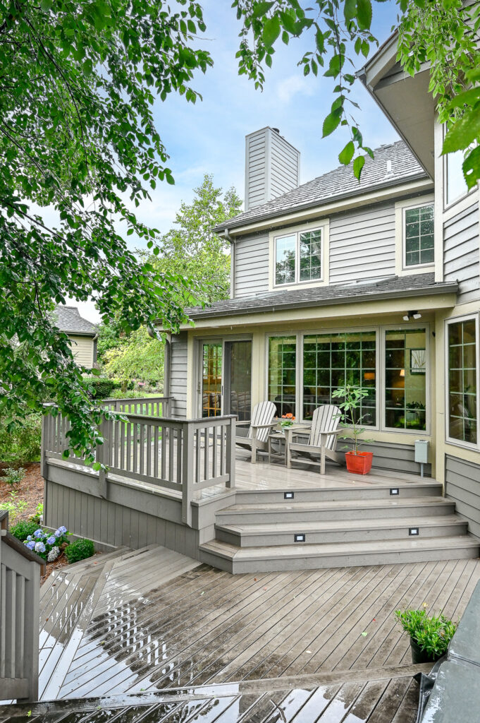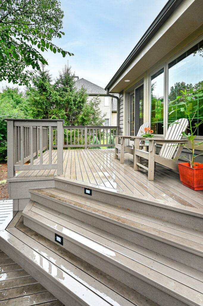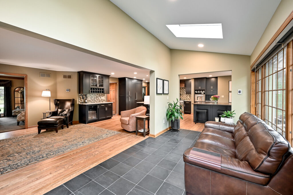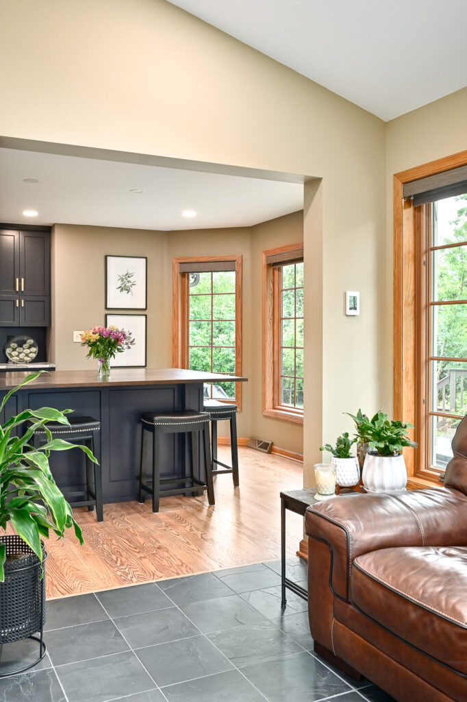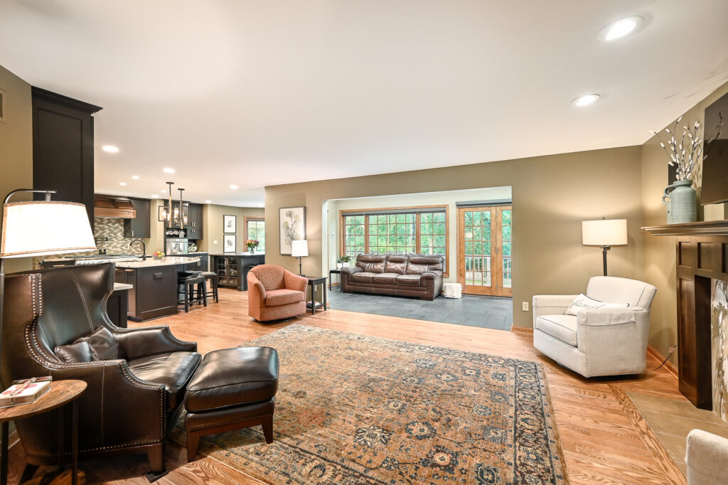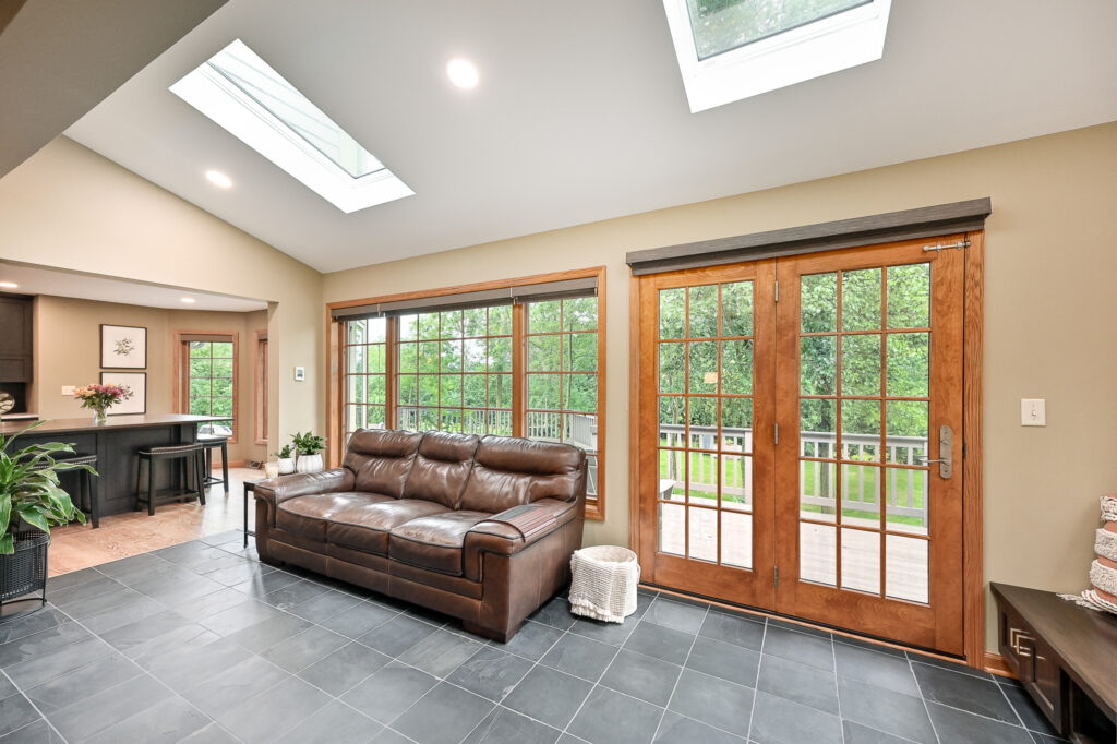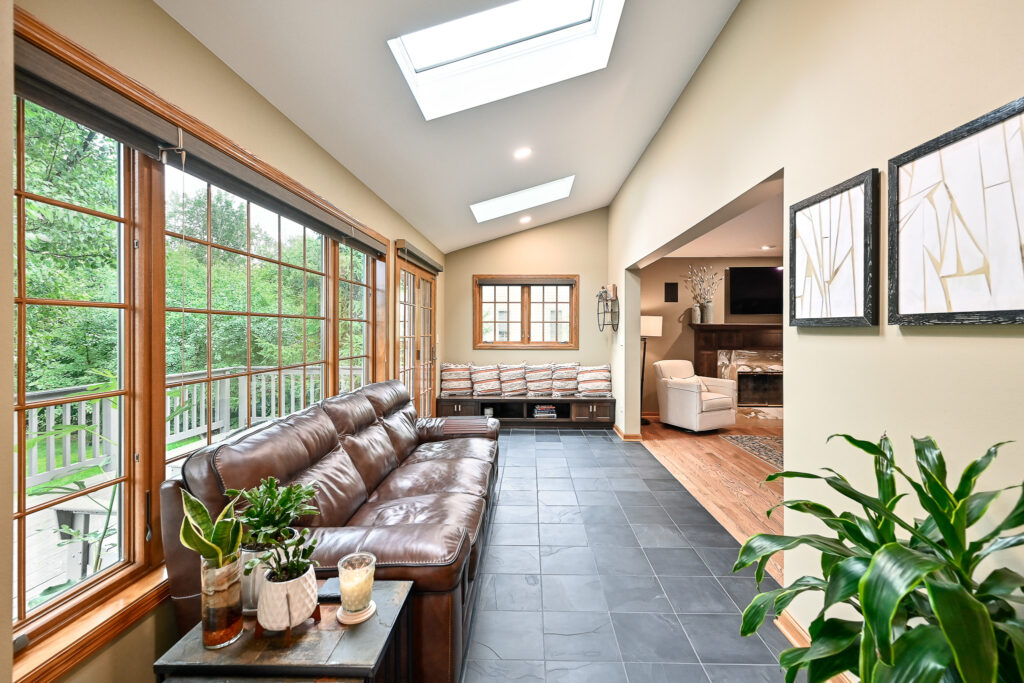 After living in the remodeled space for about 2 years, this family realized with how much cooking and hosting they were doing now, they needed more room! We completed a sunroom addition off the back of their home and built a partial deck to connect to the existing. This allowed a seamless flow for their guests to mingle in and out of the home and out to the deck. Most importantly, it feels like the sunroom has always been there.