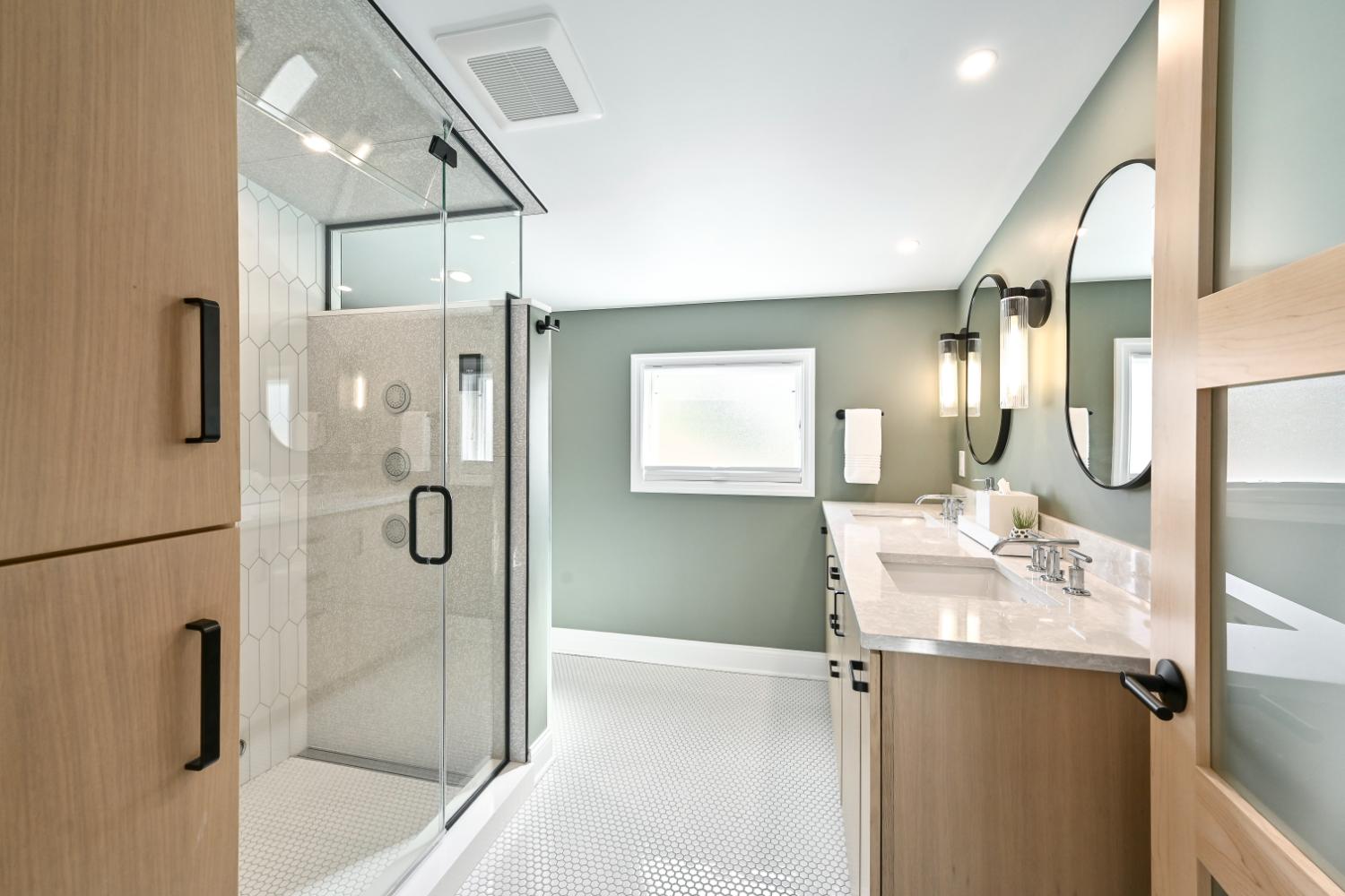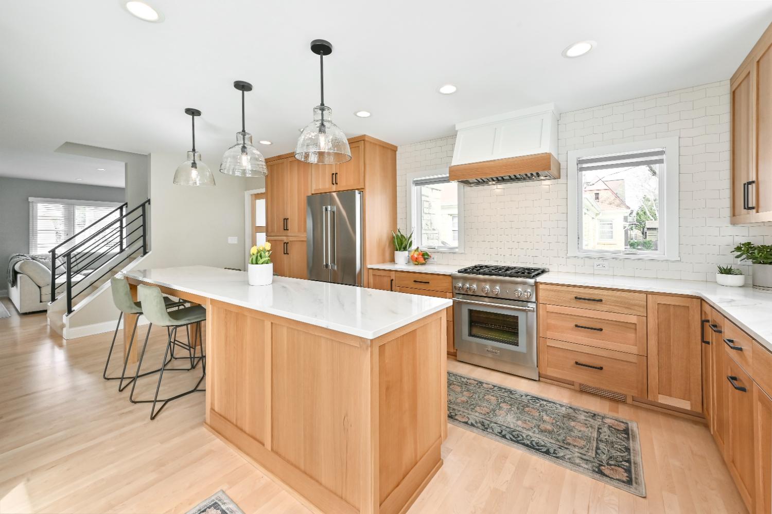 This stunning remodel is a prime example of updating a home while honoring its original character. Spanning two stories, the project reimagined every space, featuring a large kitchen addition flooded with natural light that opens to a new deck and a beautifully landscaped backyard oasis. A custom mudroom with sensible storage enhances functionality, while walls were removed to create a connected living space on the first floor.
