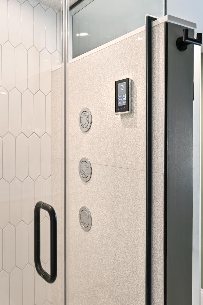 Kohler DTV system with 6 showerheads and steam shower and SoundTile speaker system