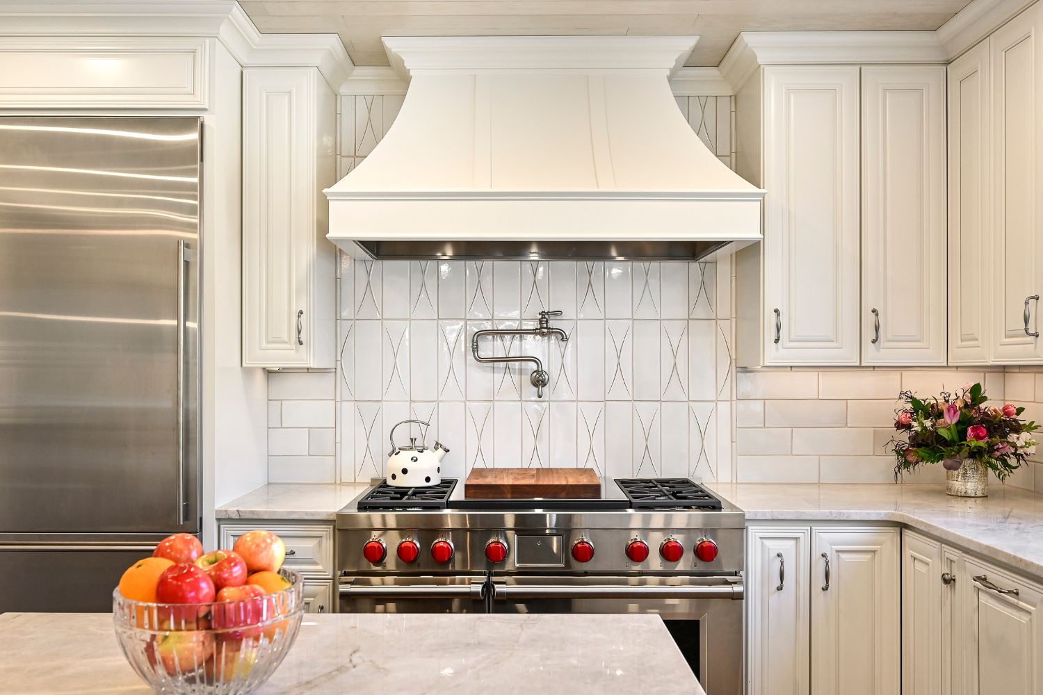 We completed a large addition for this family in 2017, extending the back side of the house to create a larger garage and an exquisite master suite above. With a home filled with charming arched doorways, leaded glass windows, crown mouldings, and hardwood floors, they needed a kitchen that matched the tranquility of the transitional addition.