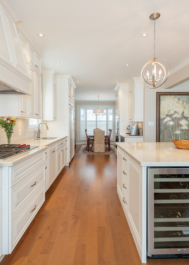 The main floor living space was totally transformed into a bright, open space that is fresh and inviting. The extensive kitchen is the heart of this home, and features loads of cabinet space, custom millwork, high-grade appliances, and details everywhere. The craftsmanship in this renovation is very fine.