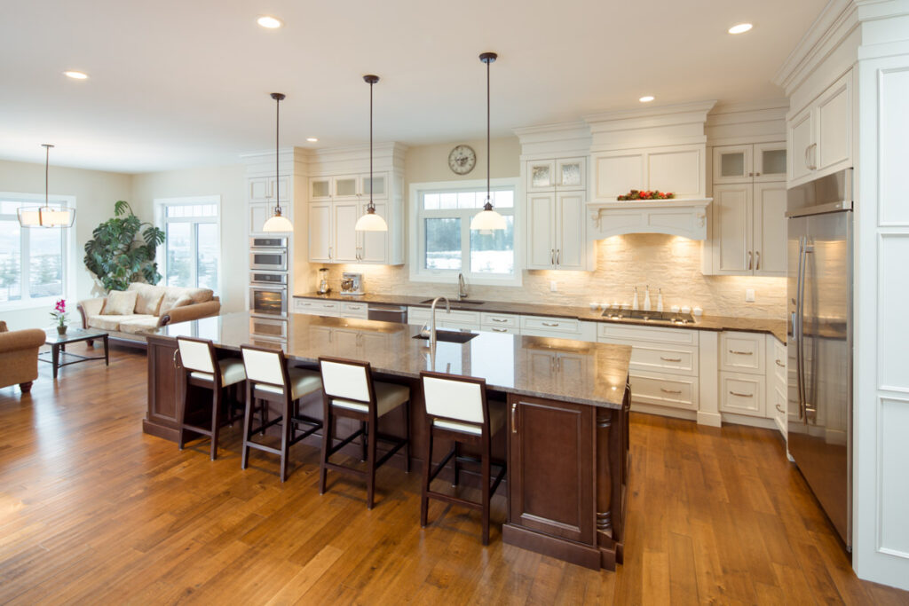 This beautiful custom home is spacious and simplistic. High ceilings, bright walls and hardwood floors give this space an expansive feel and make the most of the natural lighting.