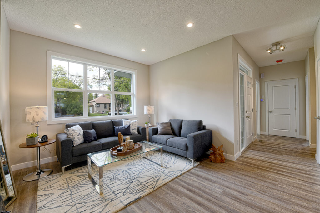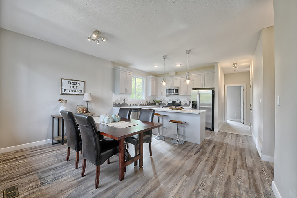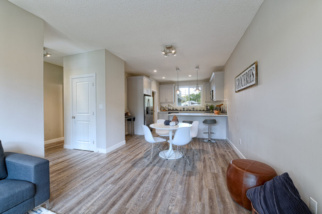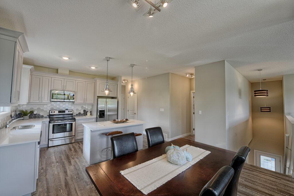 This family home features an open-concept layout, modern custom kitchen, and light wood floors throughout.