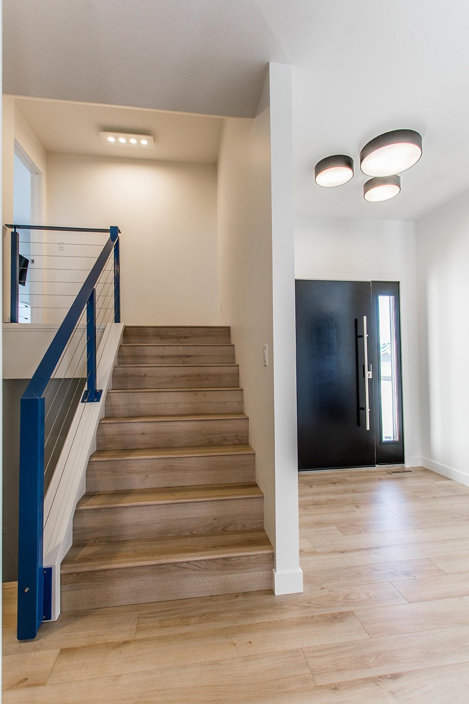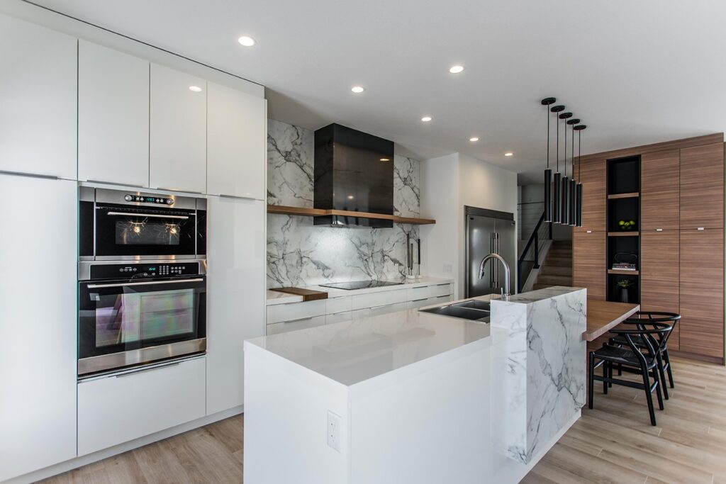 This home has a very cozy contemporary feel to it with a minimalist style. The space features high ceilings, light wood floors, and a beautiful custom kitchen.