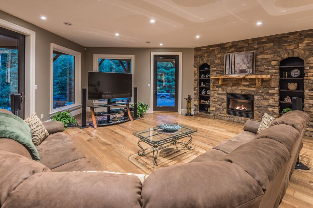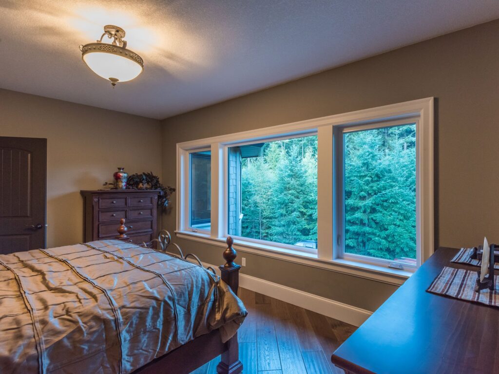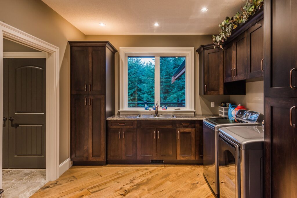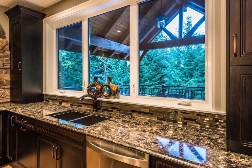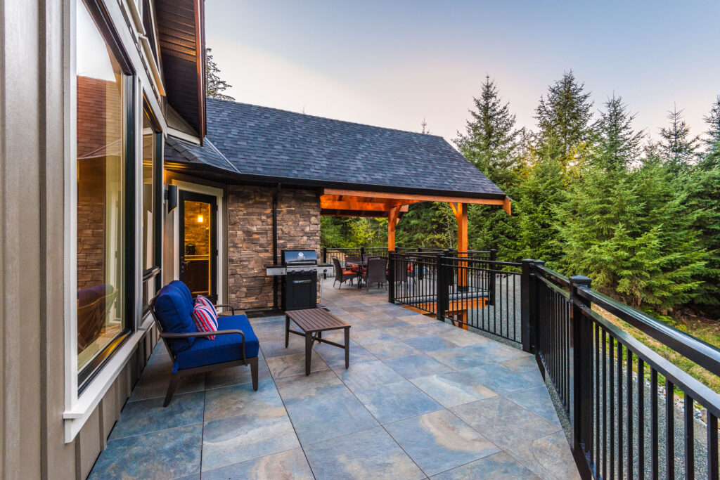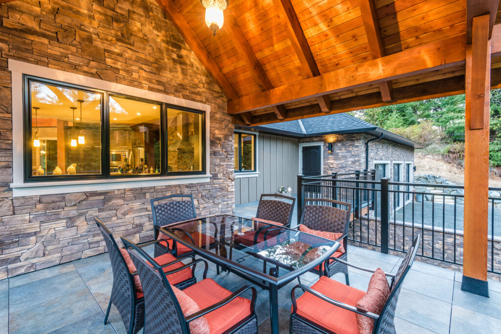 This 3 bedroom, 3 ½ bath custom home has a great rustic in-the-woods feel, with spectacular timber frame beams, an a-frame open concept great room, and a focus on natural elements and materials throughout the home. The homeowners didn’t want to cut down any of the surrounding trees on the property and chose to orient the home so that the forest was the primary view. The end result is a true “cabin in the woods” experience.