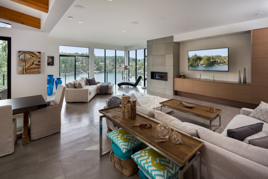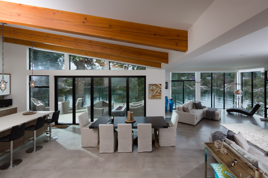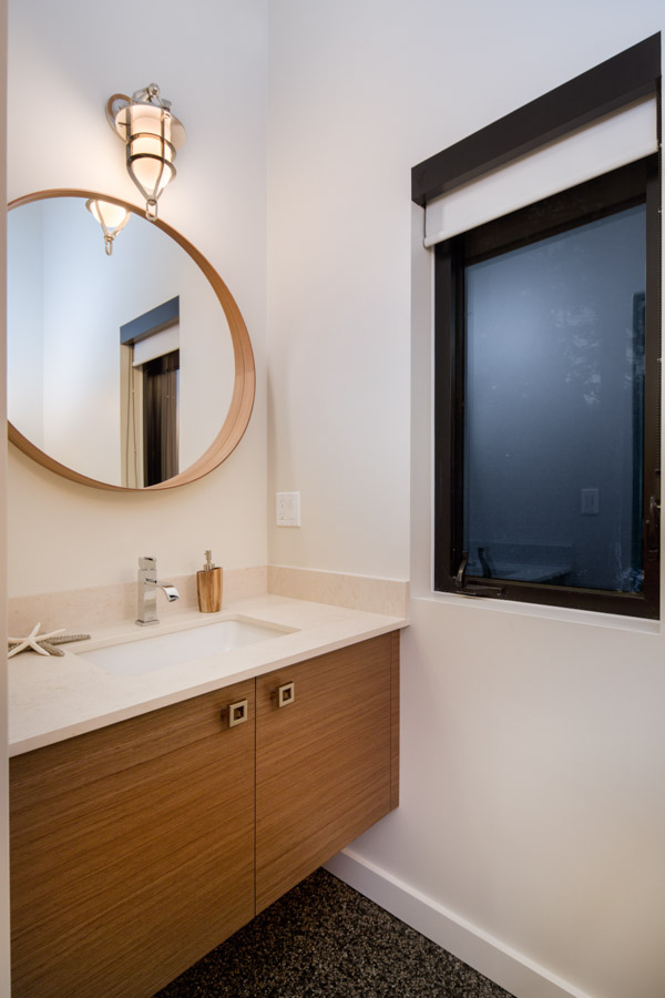This Cliffside home is an open-concept contemporary design with many eco-friendly features. The entire home is completely automated and is equipped with geothermal radiant heat throughout. Nestled on a bedrock cliff in a quiet ocean bay this is a low maintenance home that is finished with metal siding and roofing.
